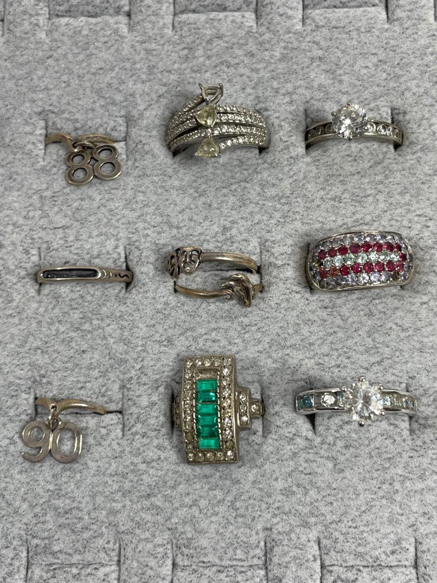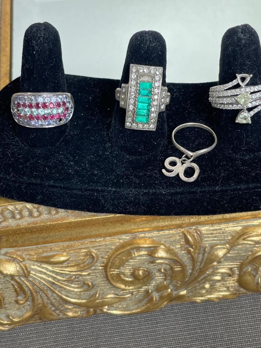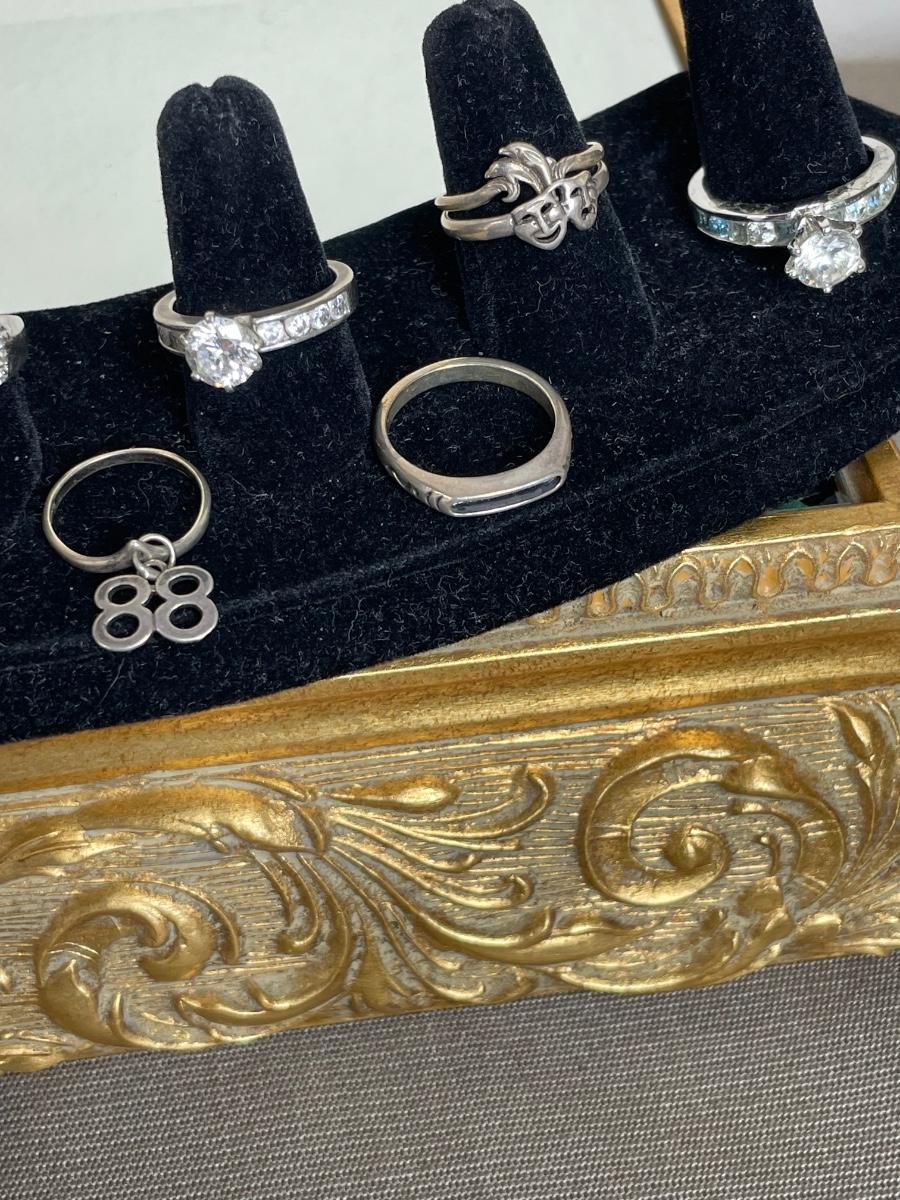 Set of 10 rings, some missing stones, some vintage. Class rings for 1988, 1990 are new old stock.