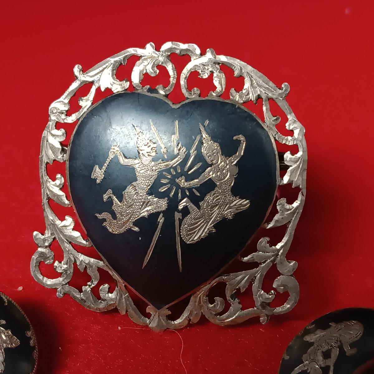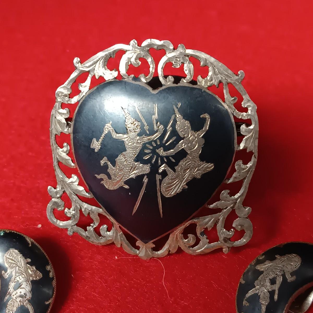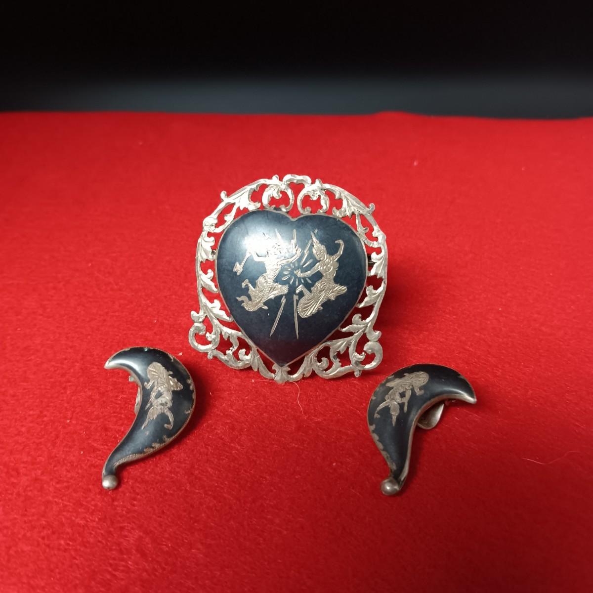 STERLING SILVER SIAM BROOCH AND CLIP ON EARRINGS 17.53g