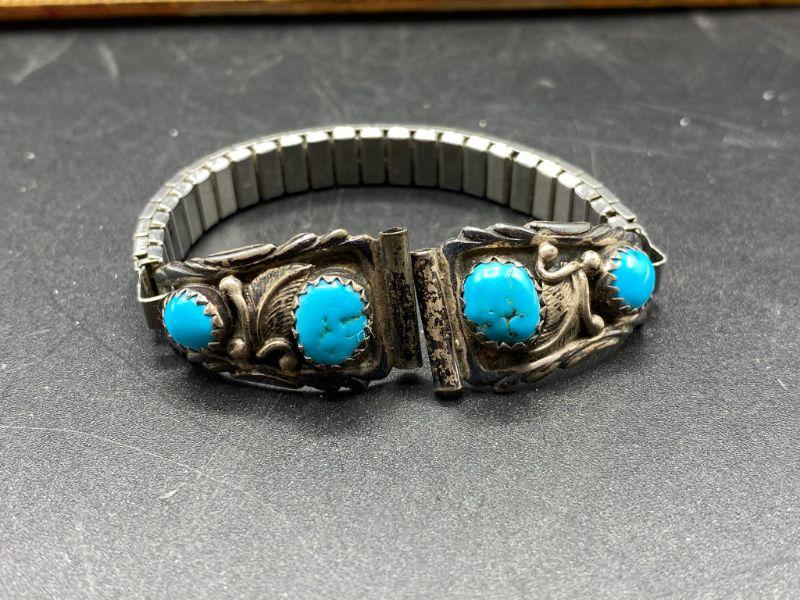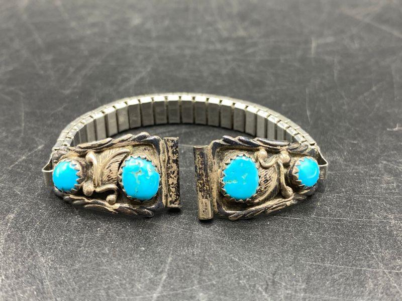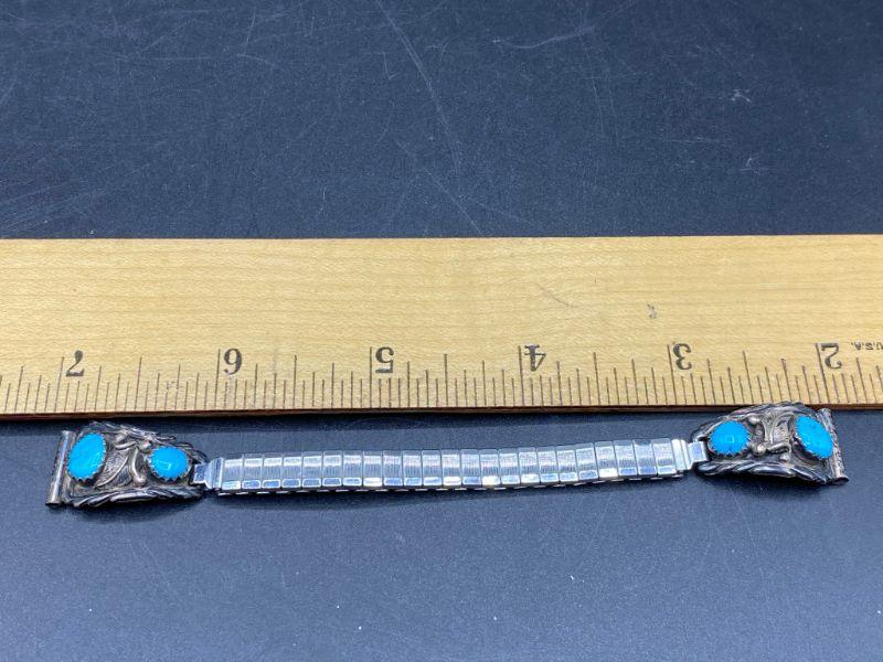 Sterling Silver & Turquoise Southwestern Watch Band Signed RB YD#013-1120-00002