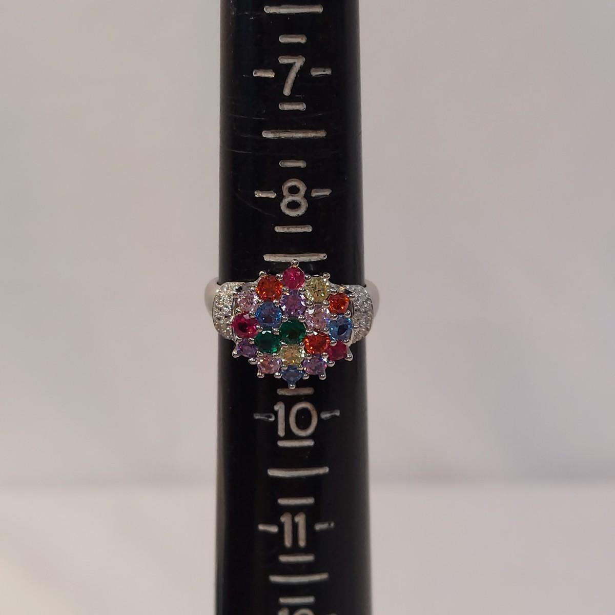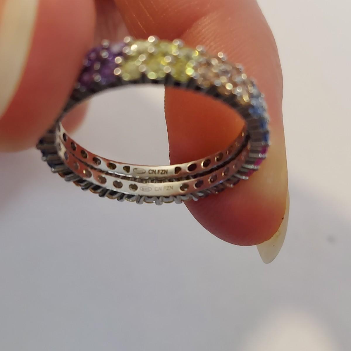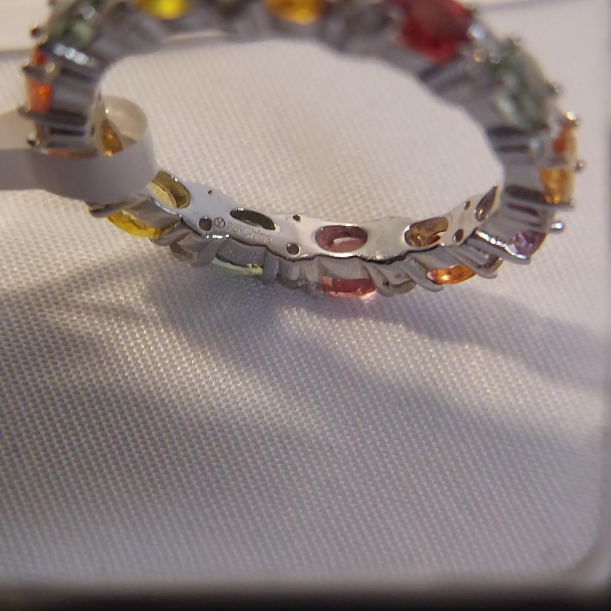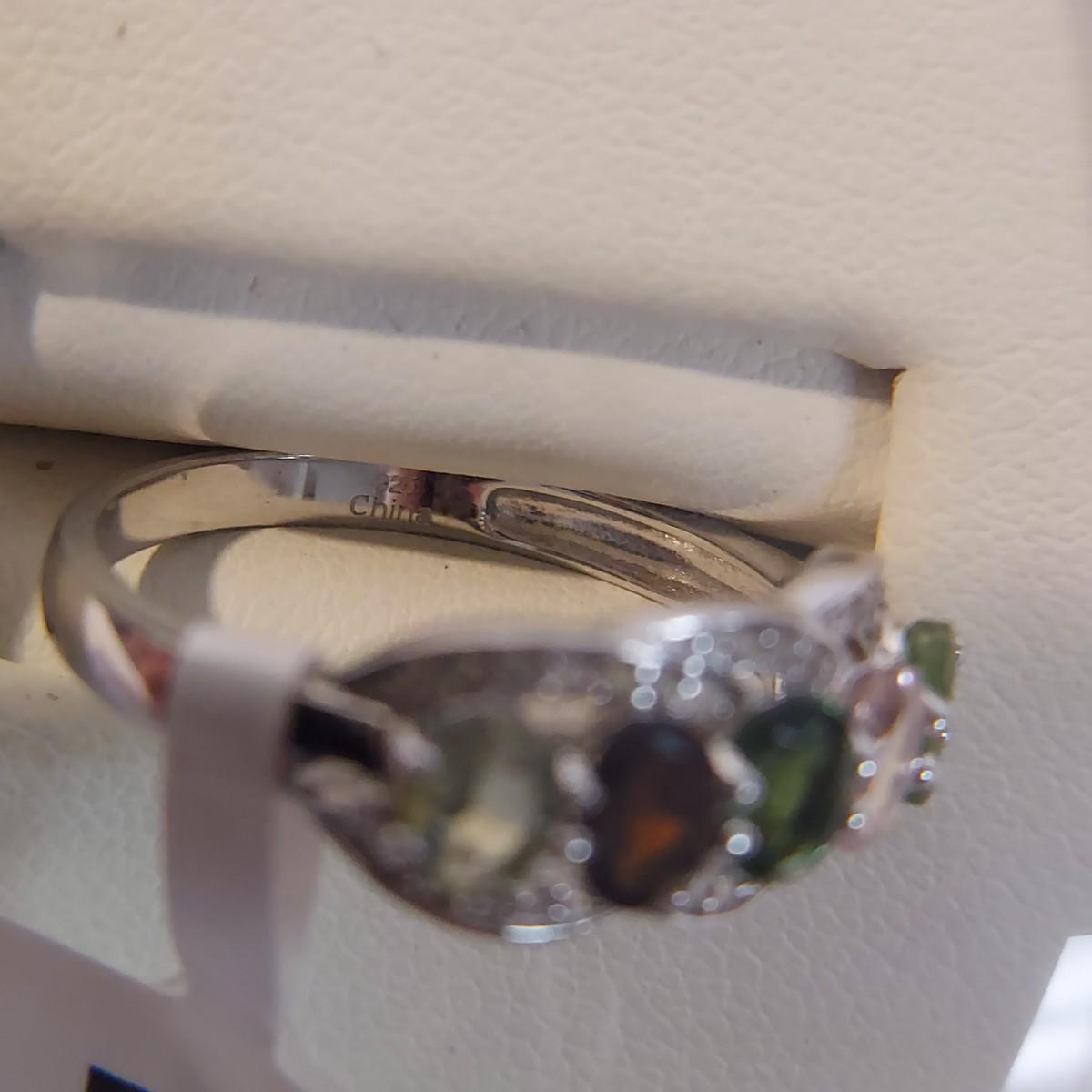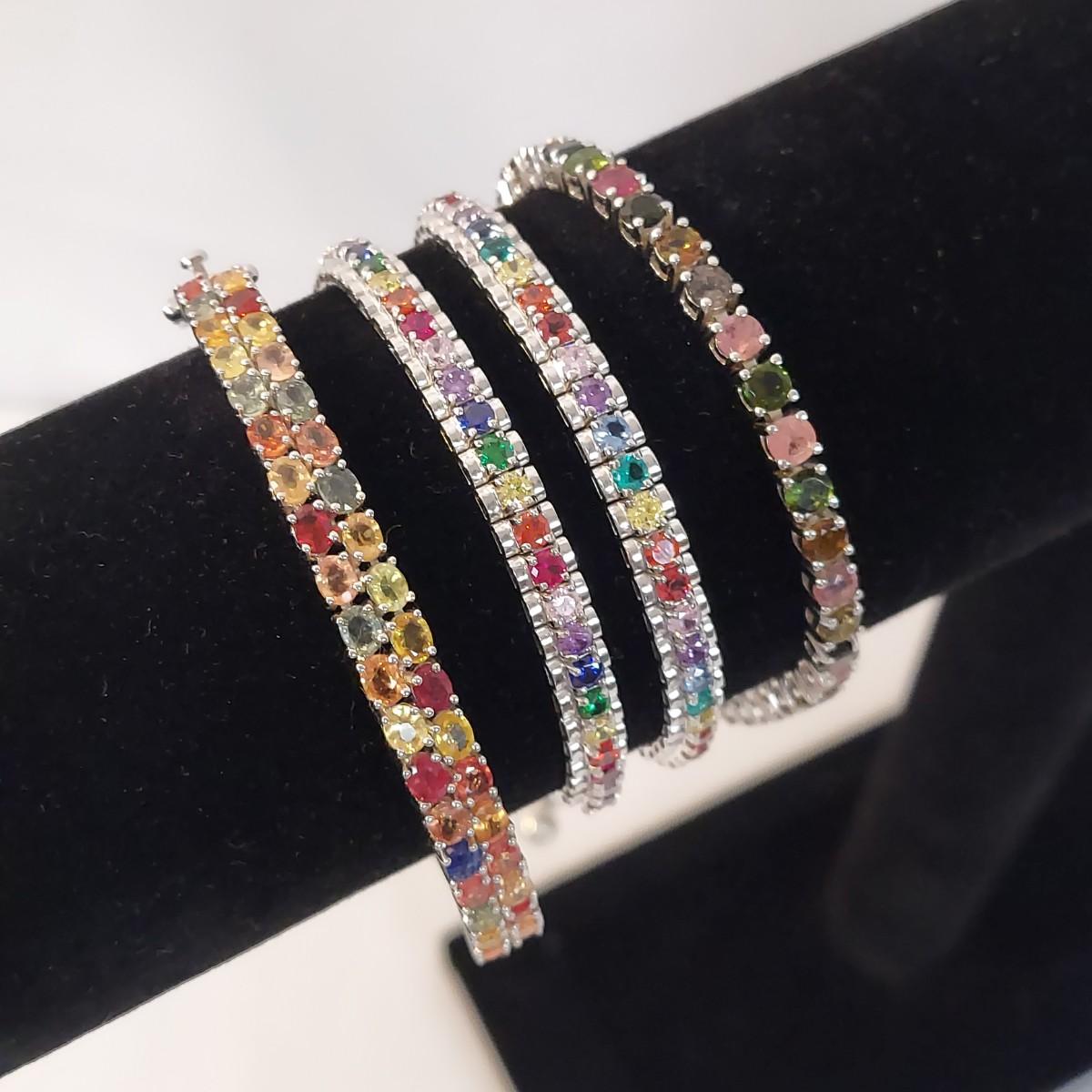 Lot includes four bracelets and 19 rings. Three of the bracelets have an adjustable slide clasp and do not fully open. The fourth is a hinged bangle. All of the rings are stamped .925. Some are still tagged with what appears to be the original tags describing their materials. These are not a guarantee. It does appear that most of the rings have semi precious stones but some could be glass simulants. One ring has a loose stone that is bagged up with the ring. Please see photos for all markings found. We cannot guarantee the authenticity of the gemstones. All sales are final. No returns or refunds. Please bid accordingly.