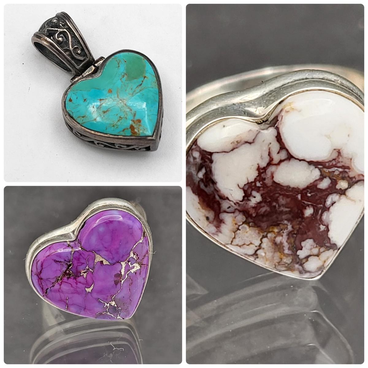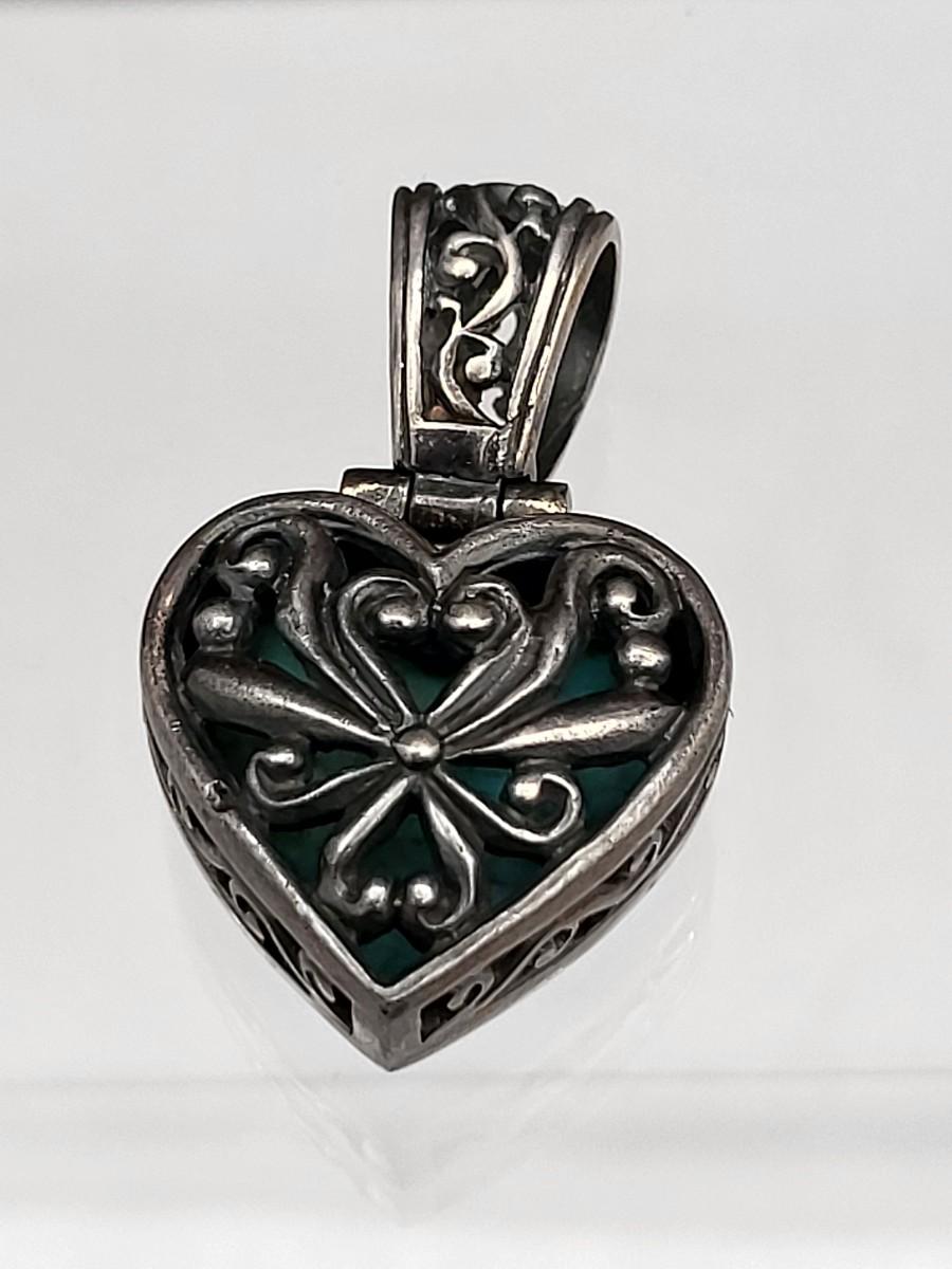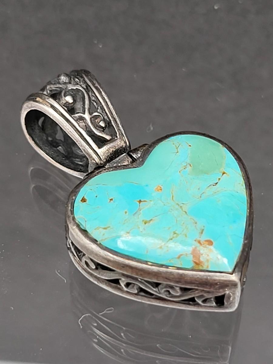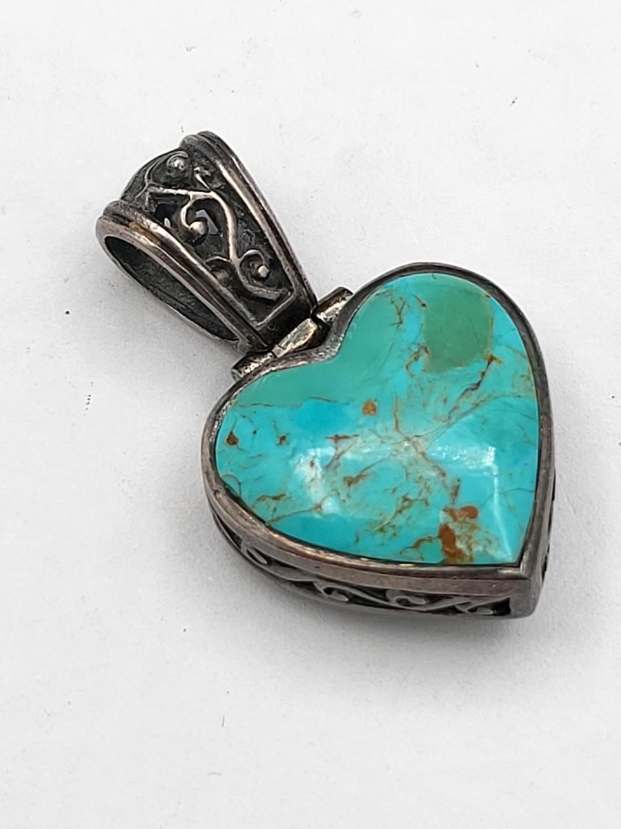 2. Nice patina and detailed green-blue turquoise heart pendant.
