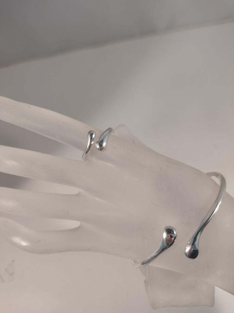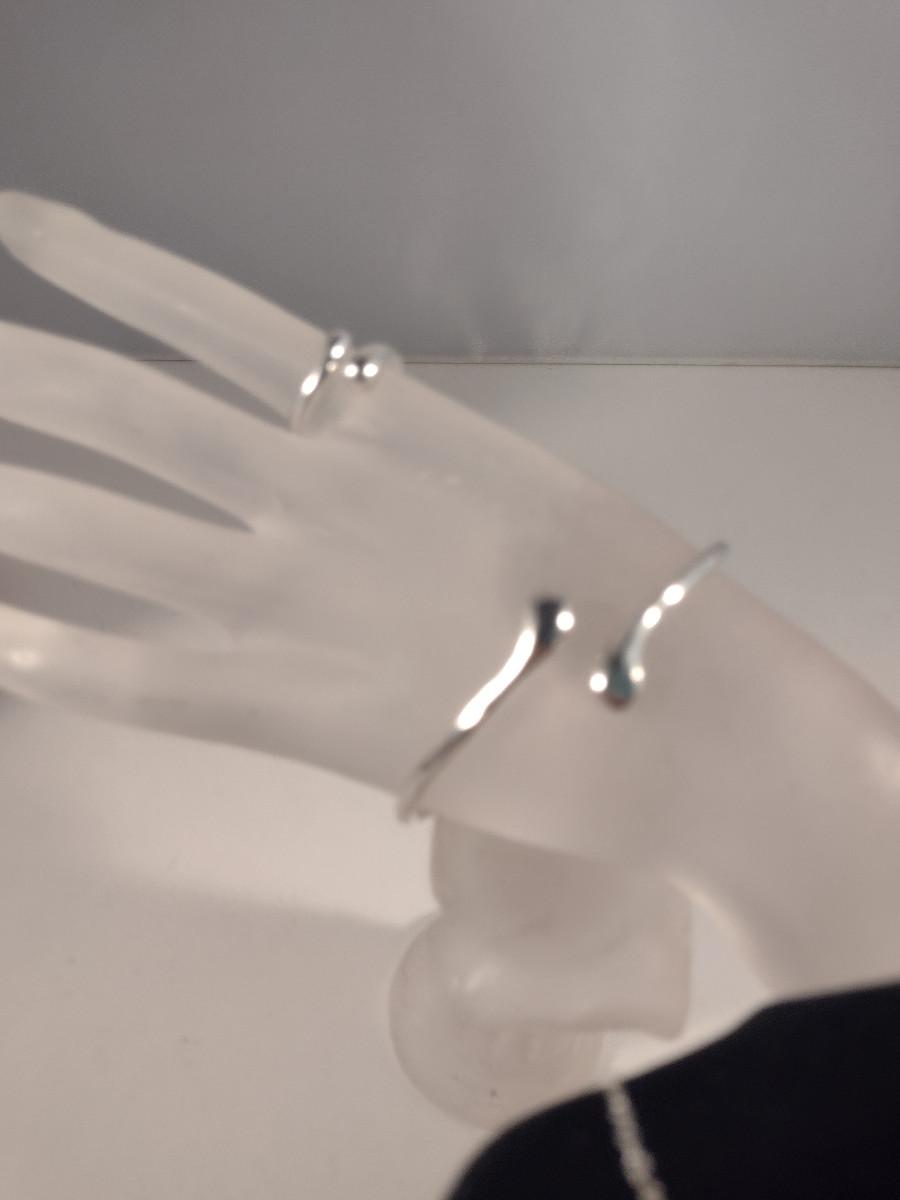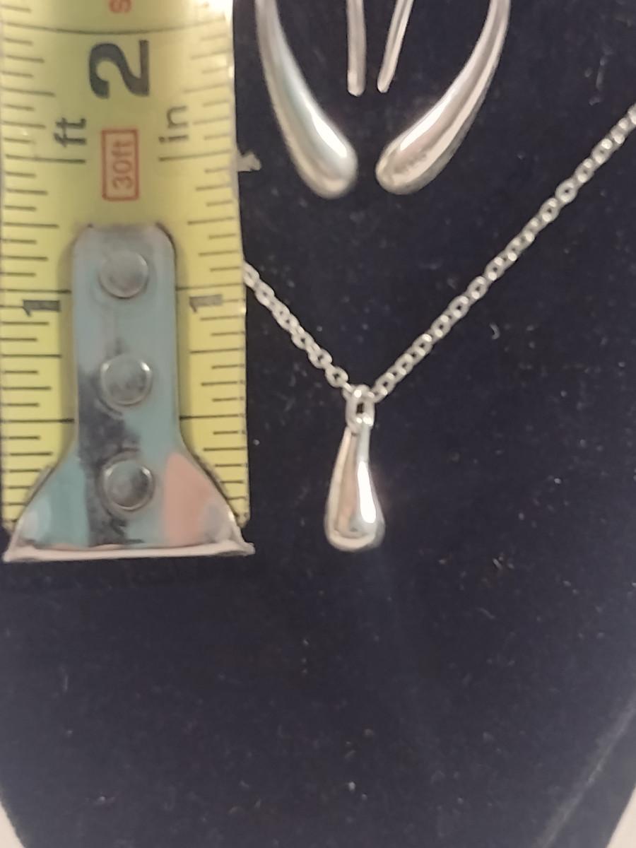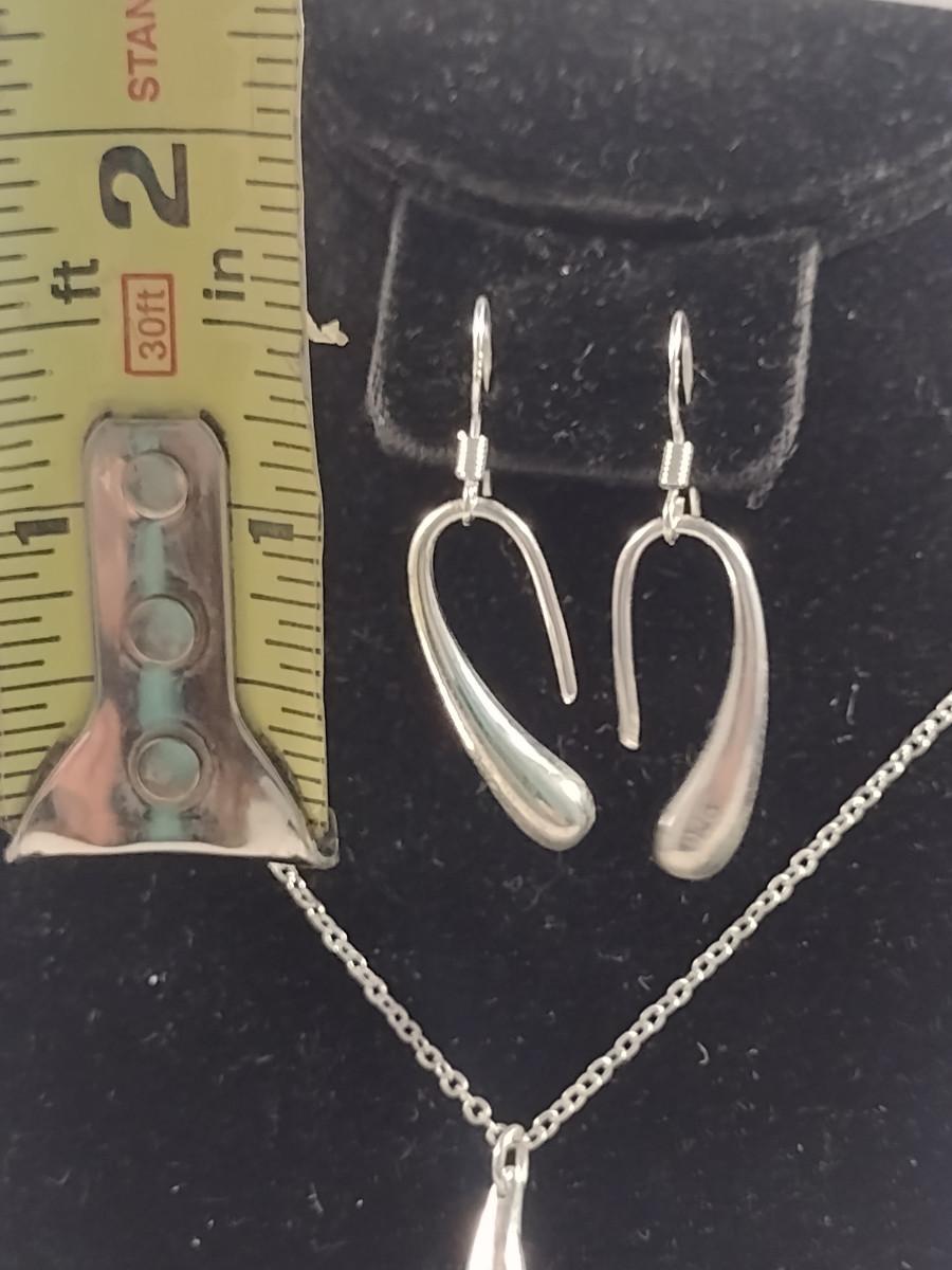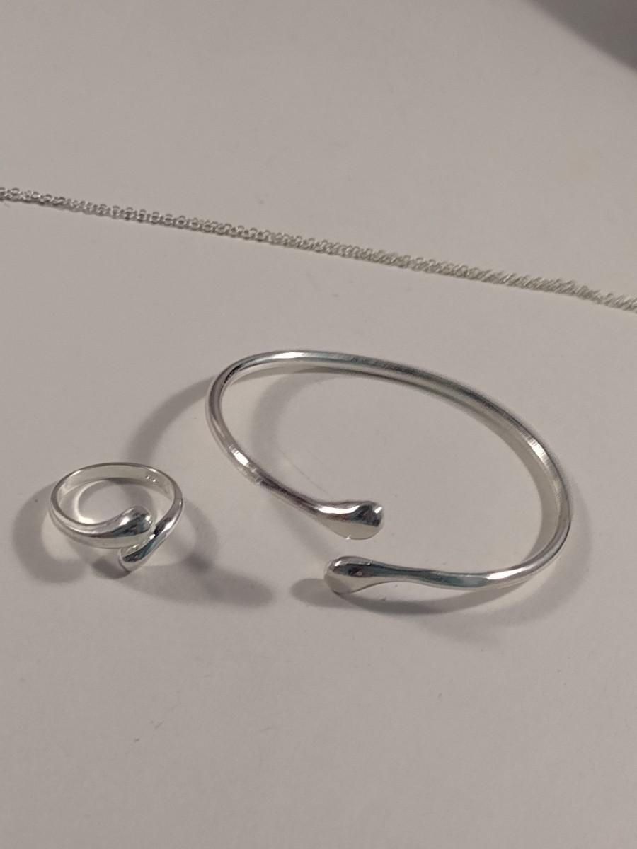Sterling Silver Teardrop Design Jewelry Set- Necklace, Bangle, Ring, Earrings- (#38). Approx total weight 26.4 grams.