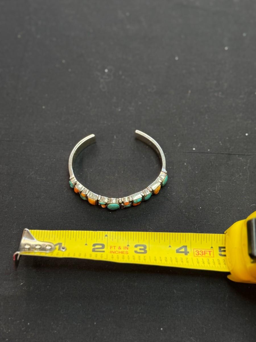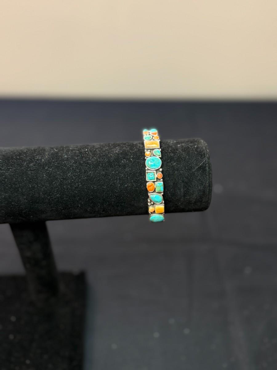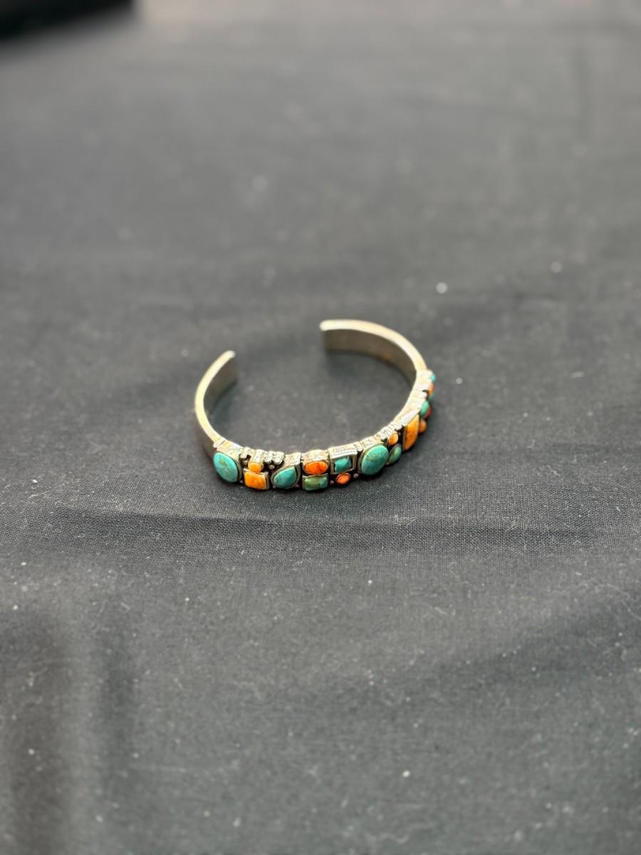 Sterling Silver Tibeten Old Silver Turquoise And Coral Stone Bracelet