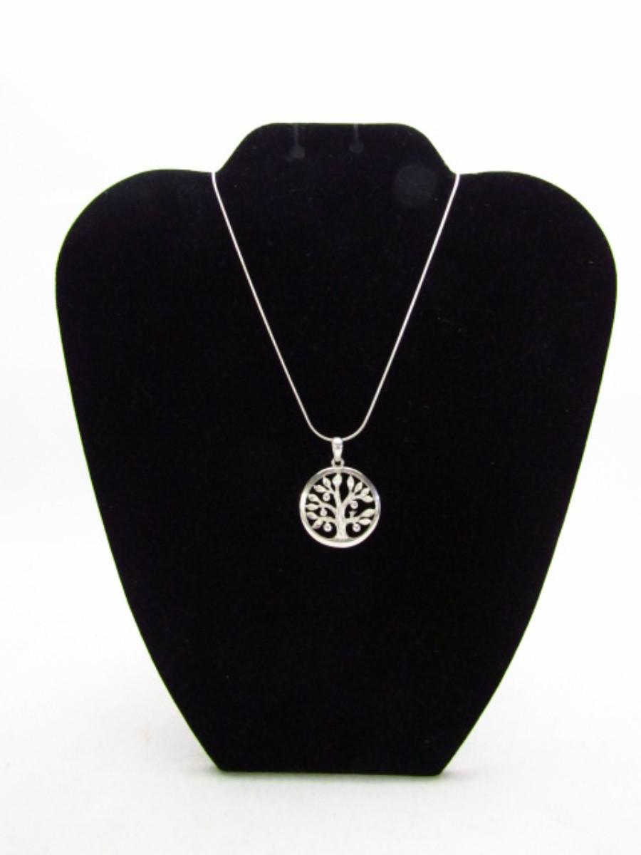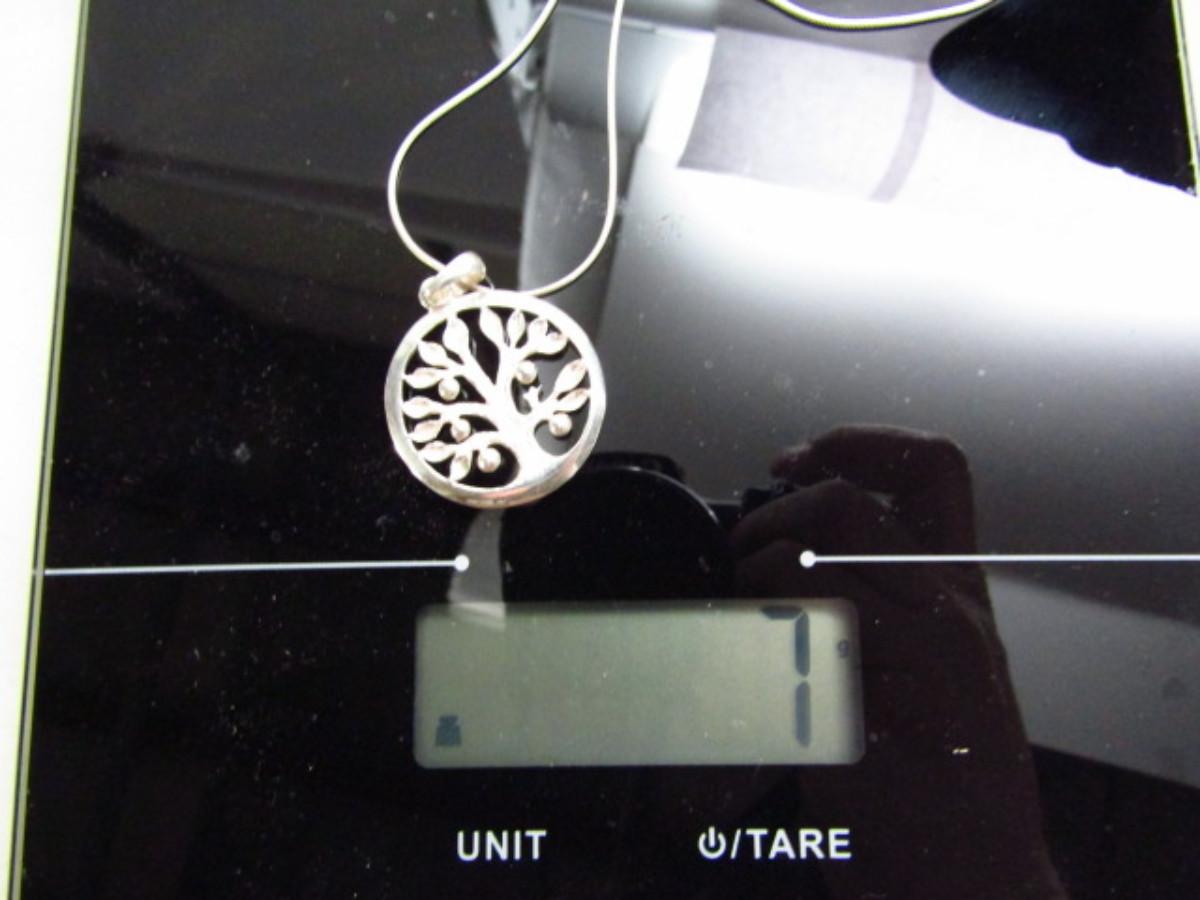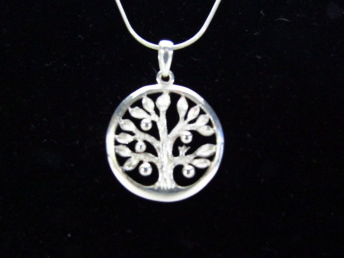 Sterling Silver Tree of Life Pendant on Chain (#2). Chain is approx 15 1/2" long. Item weighs approx 7 grams.