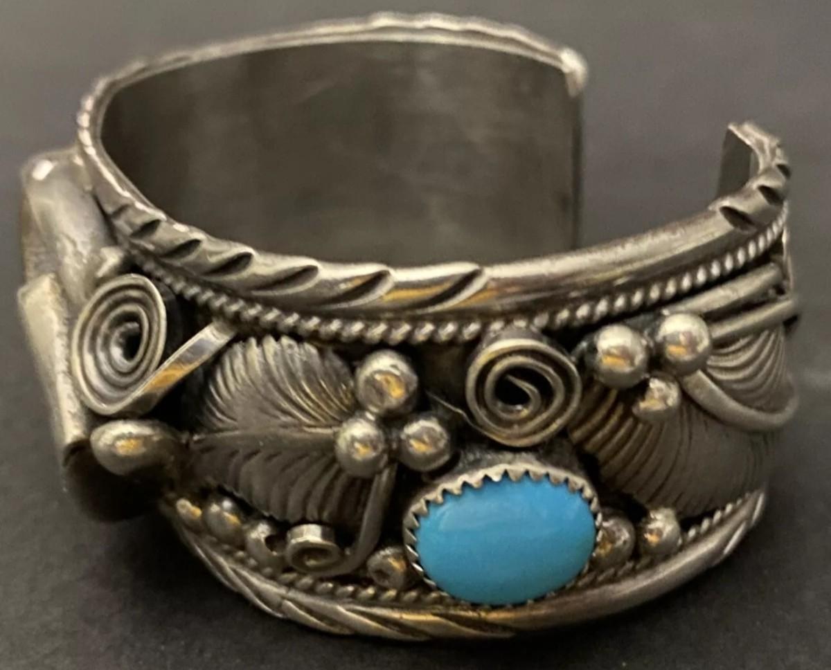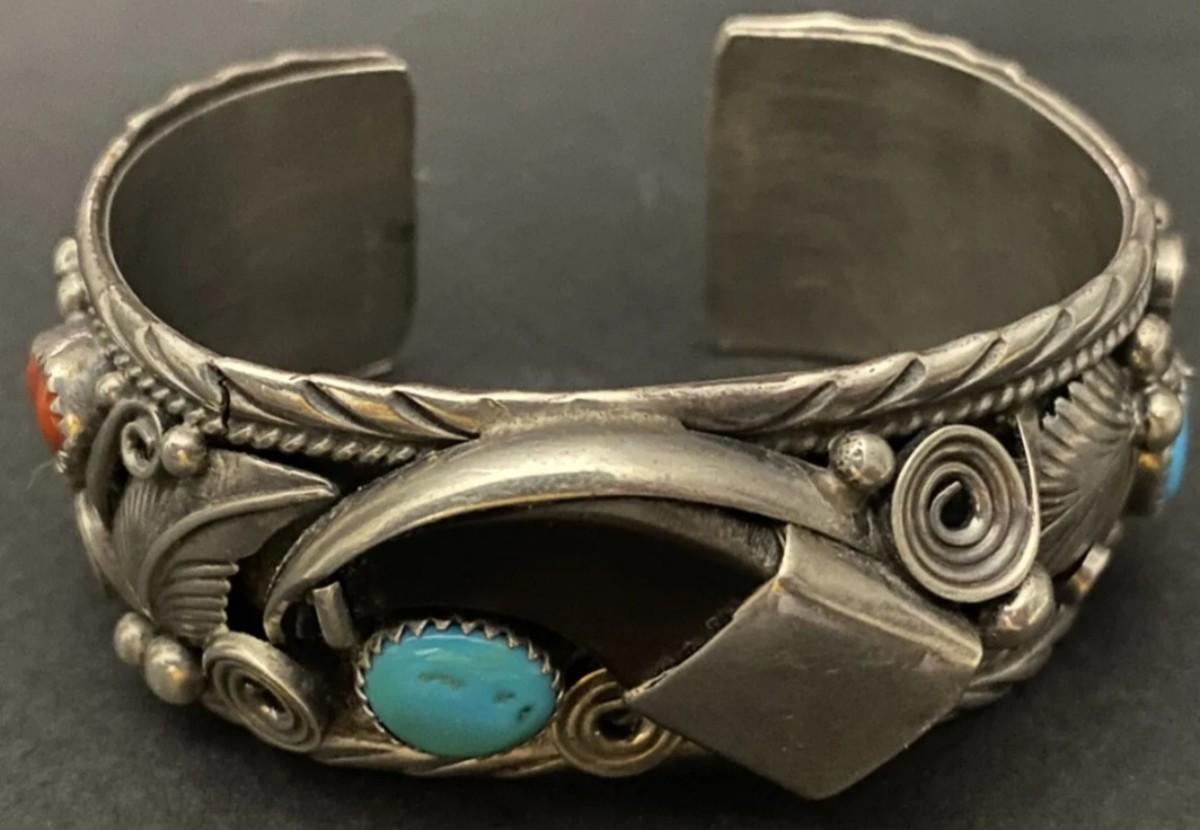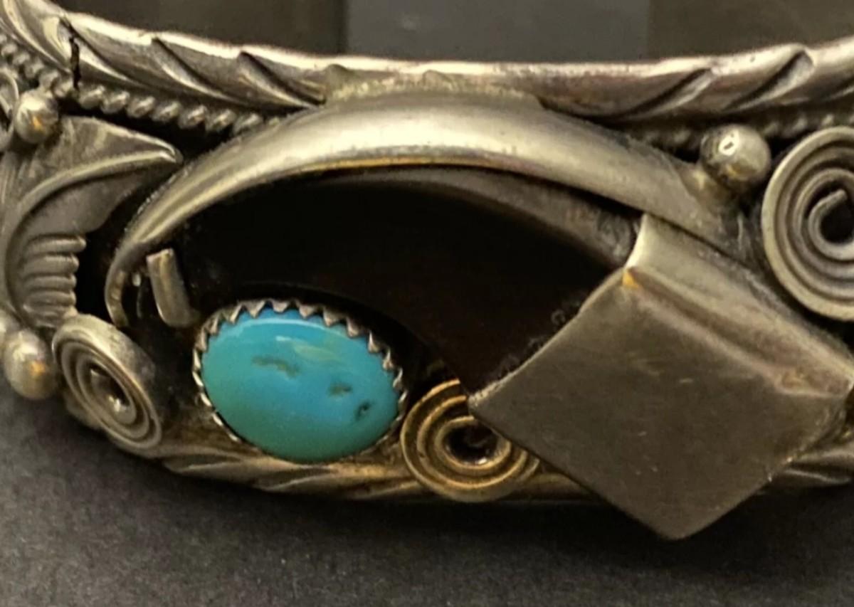 Sterling silver turquiose bear claw bracelet sighned