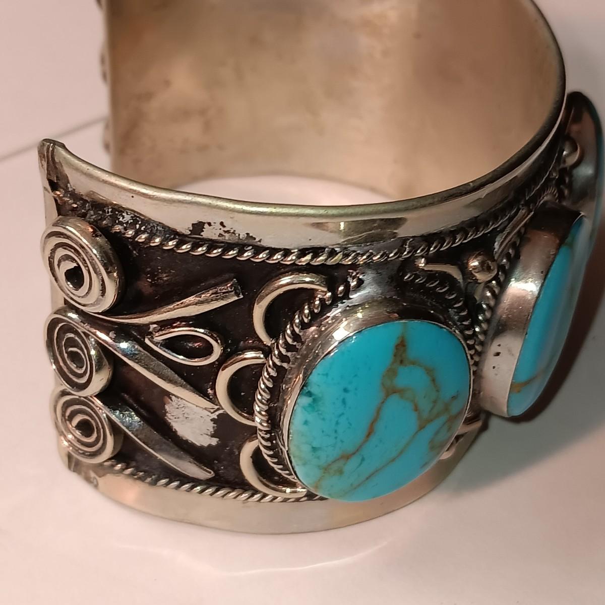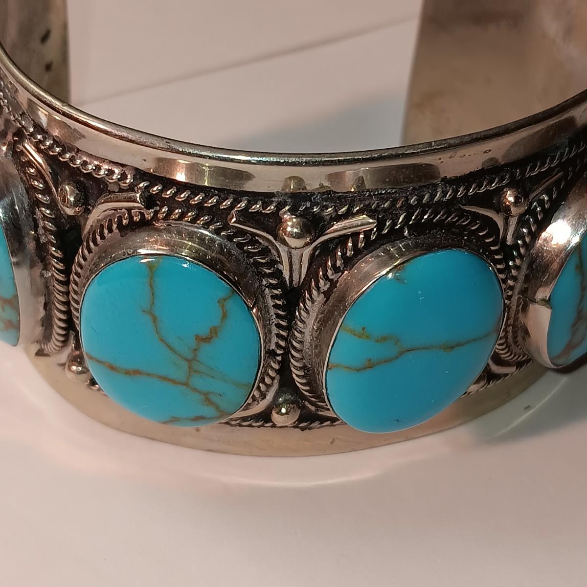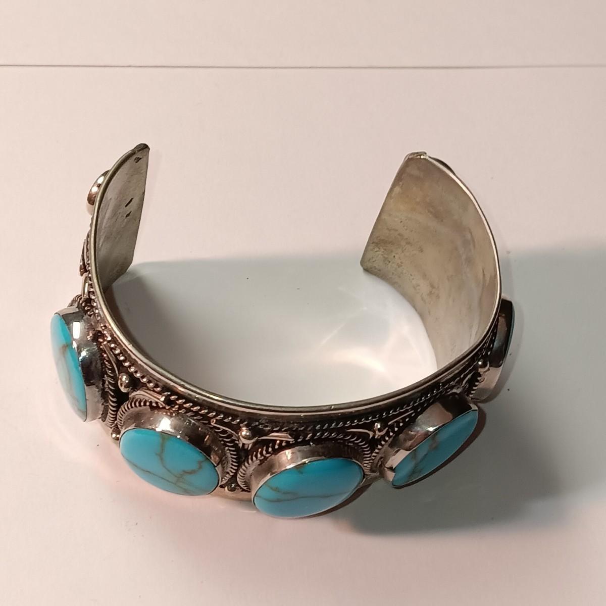 TURQUOISE LIKE STONES SET IN SILVER-TONE CUFF BRACELET