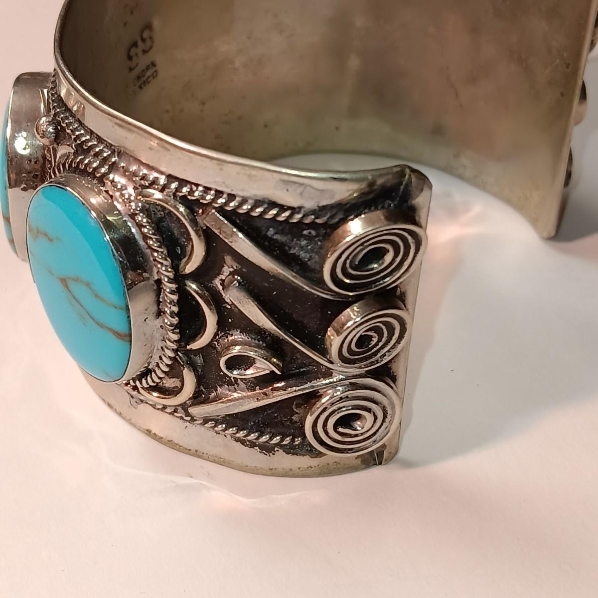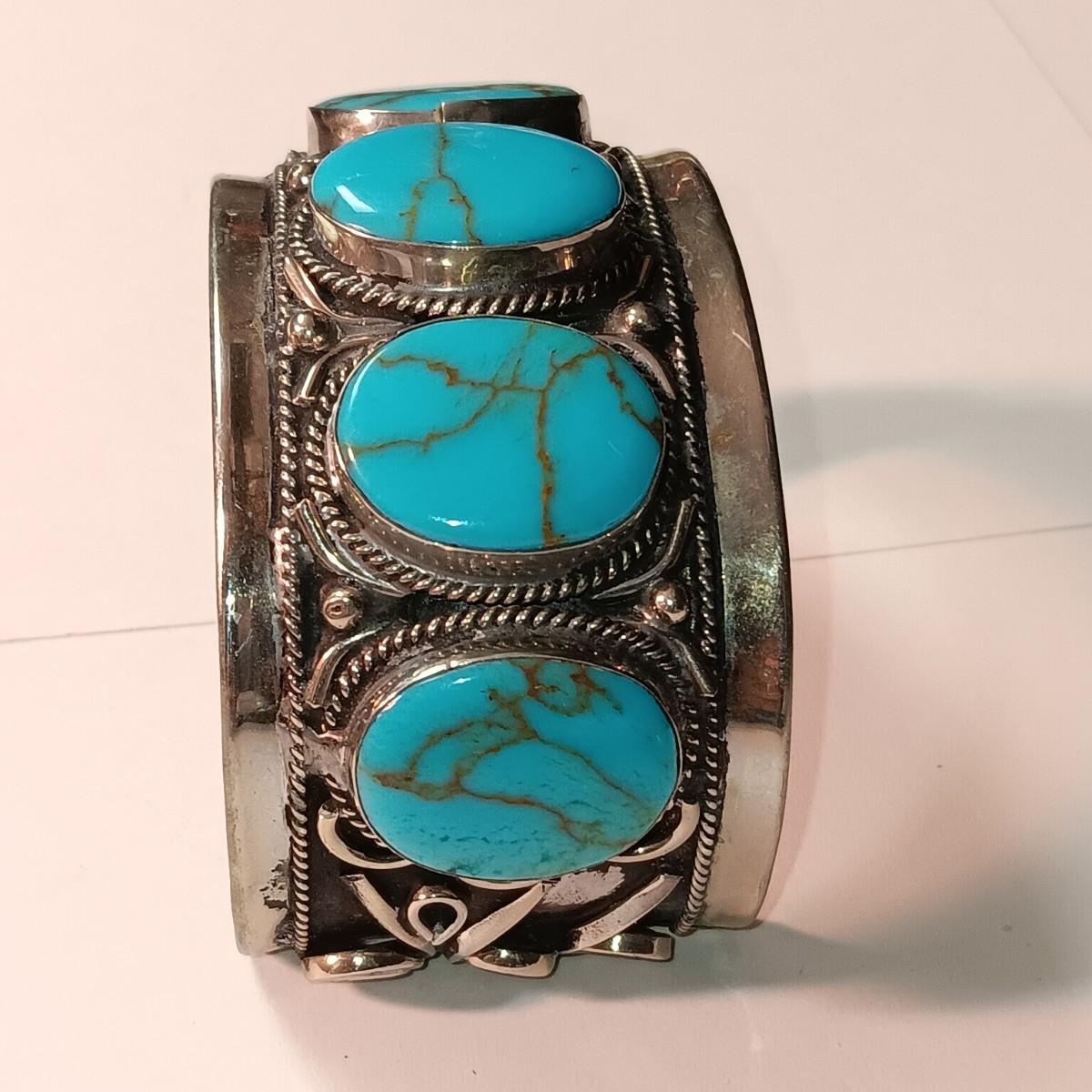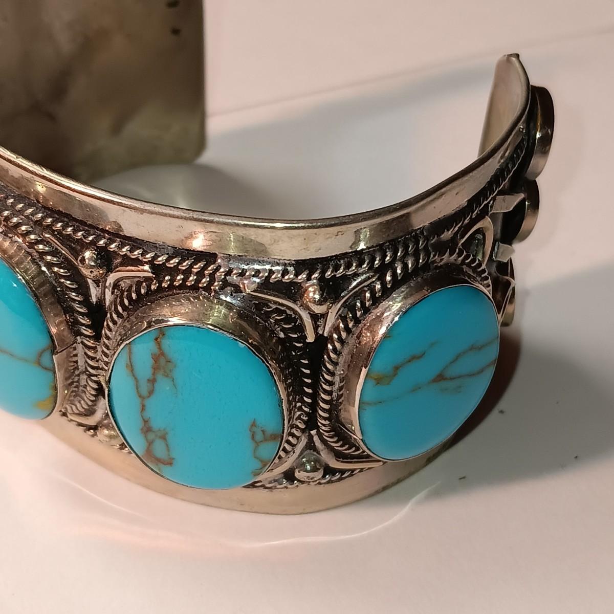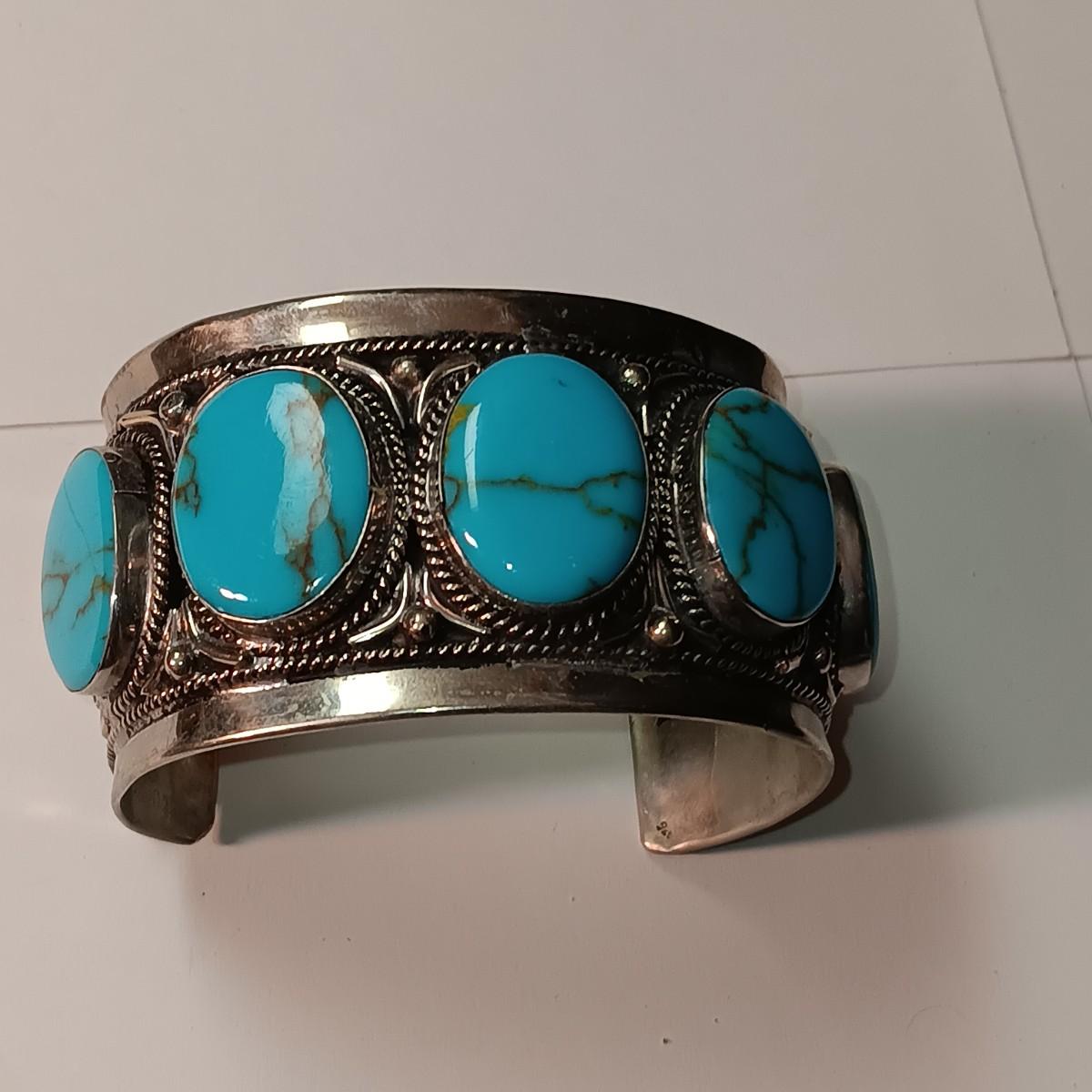 TURQUOISE LIKE STONES SET IN SILVER-TONE CUFF BRACELET