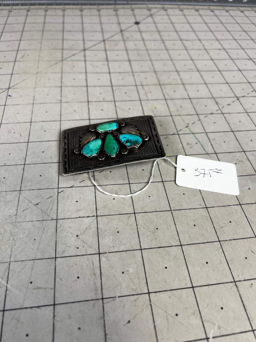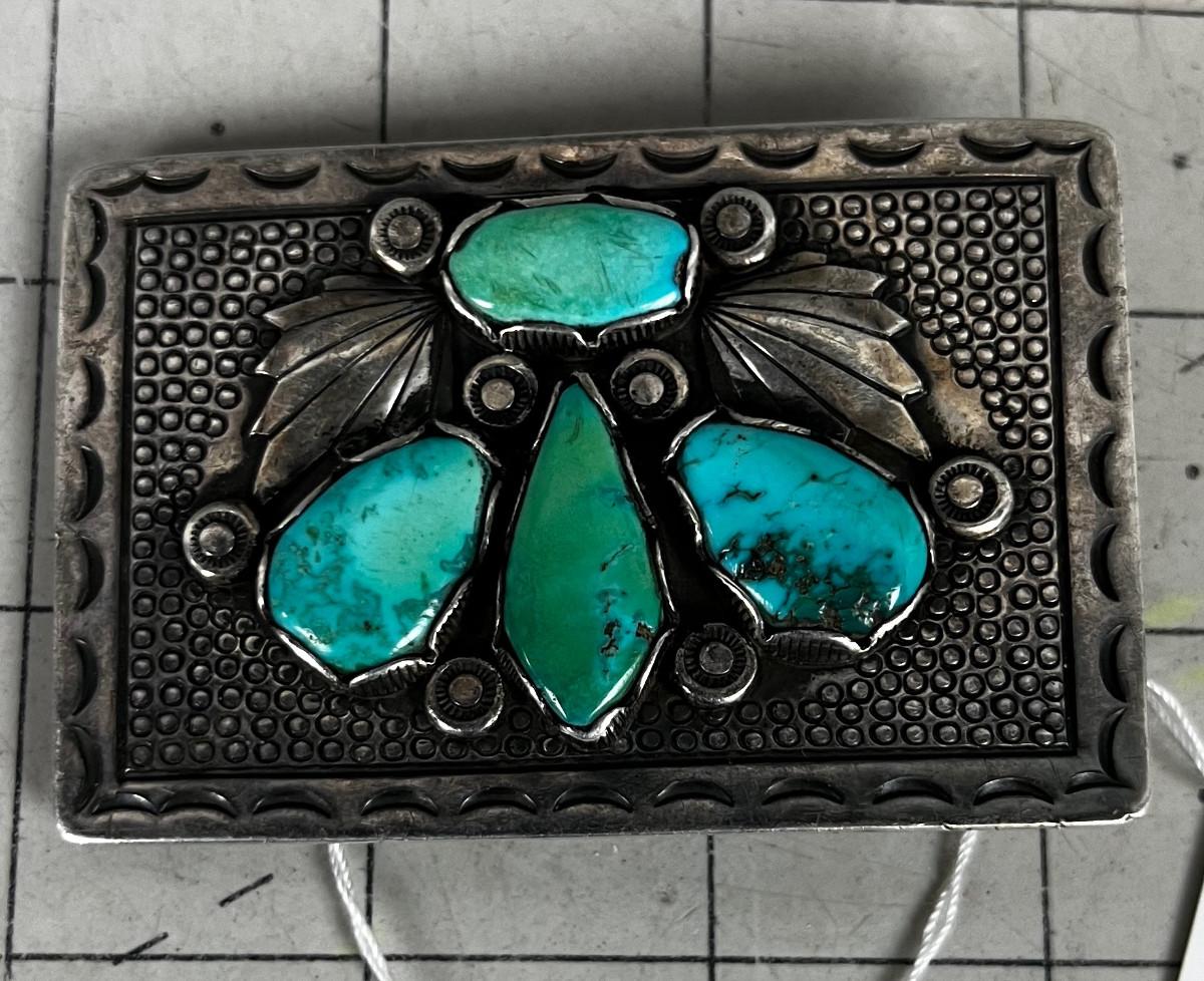 Sterling Silver & Turquoise OLD PAWN Belt Buckle