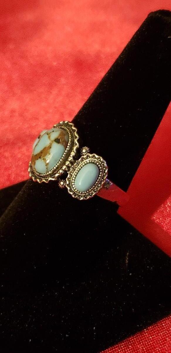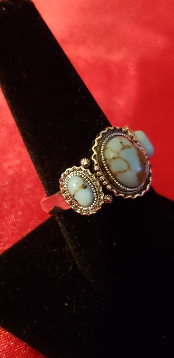 Vintage Sterling silver Native natural oval turquoise ring 12 3 g
