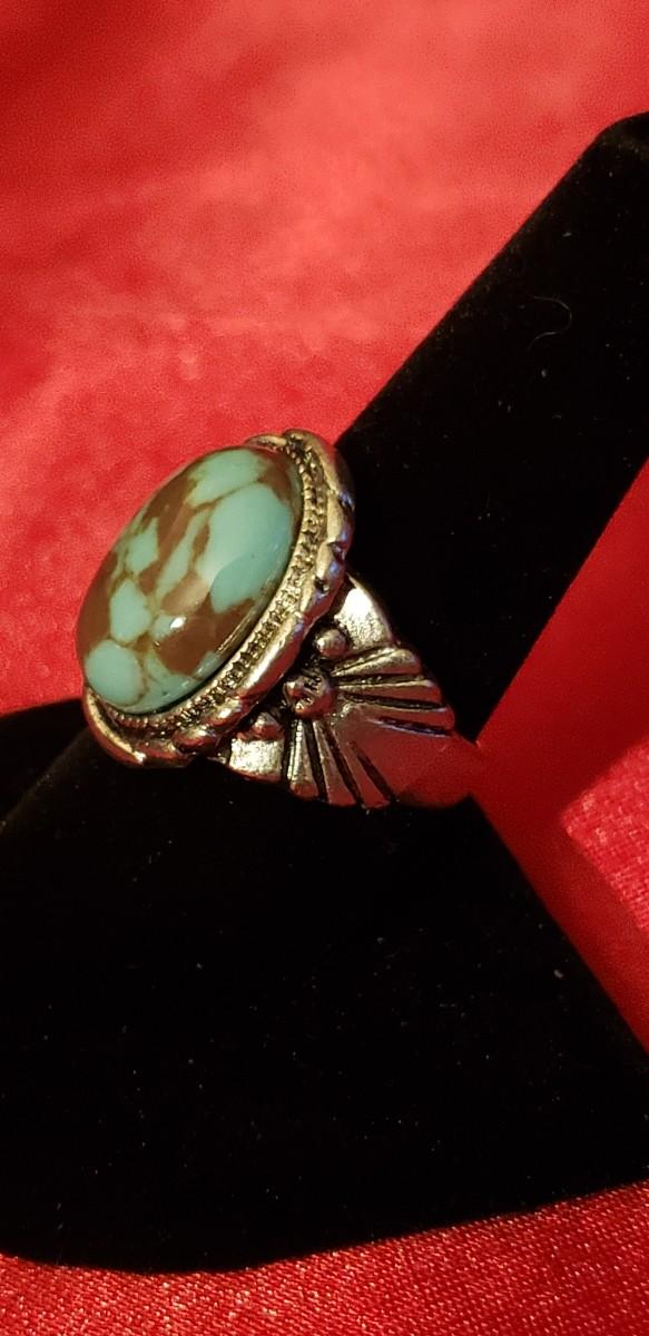 Sterling silver native style turquoise ring size 8 . 18..1 g