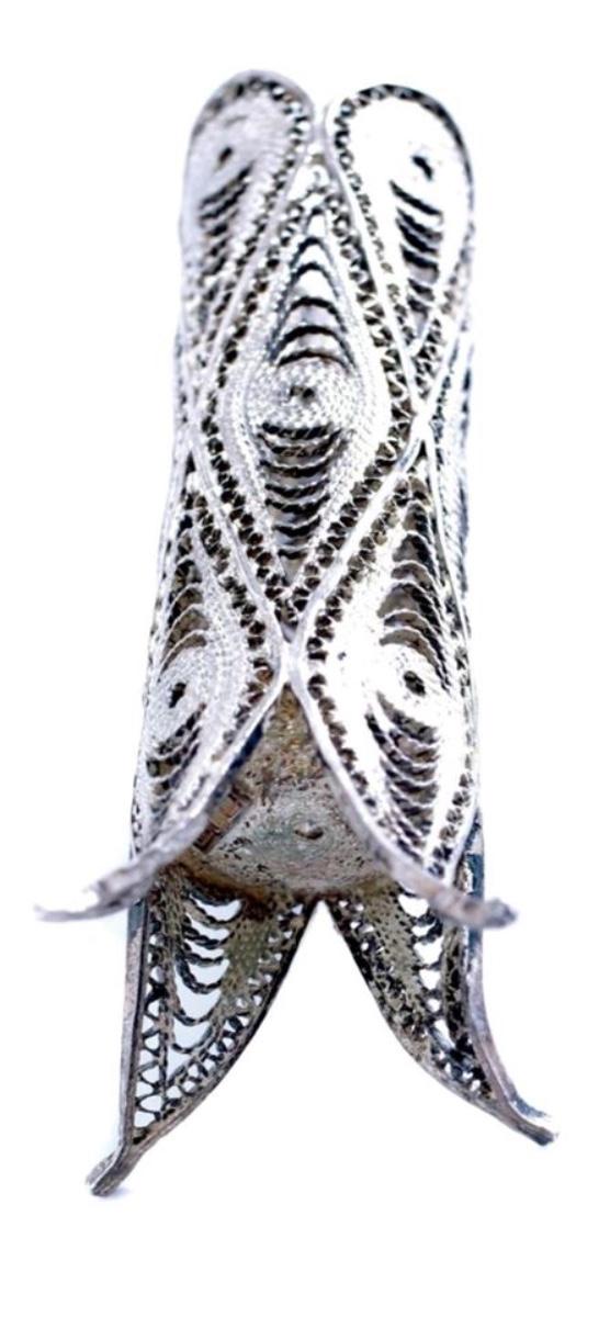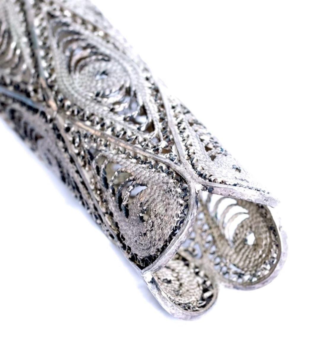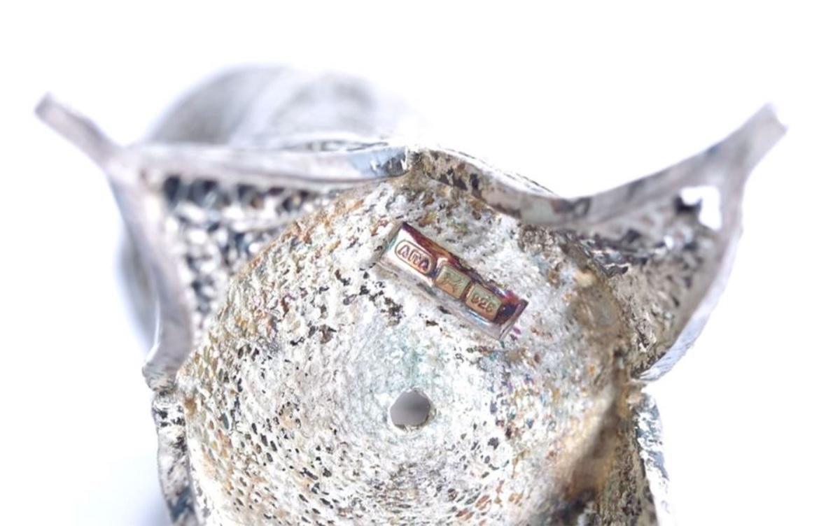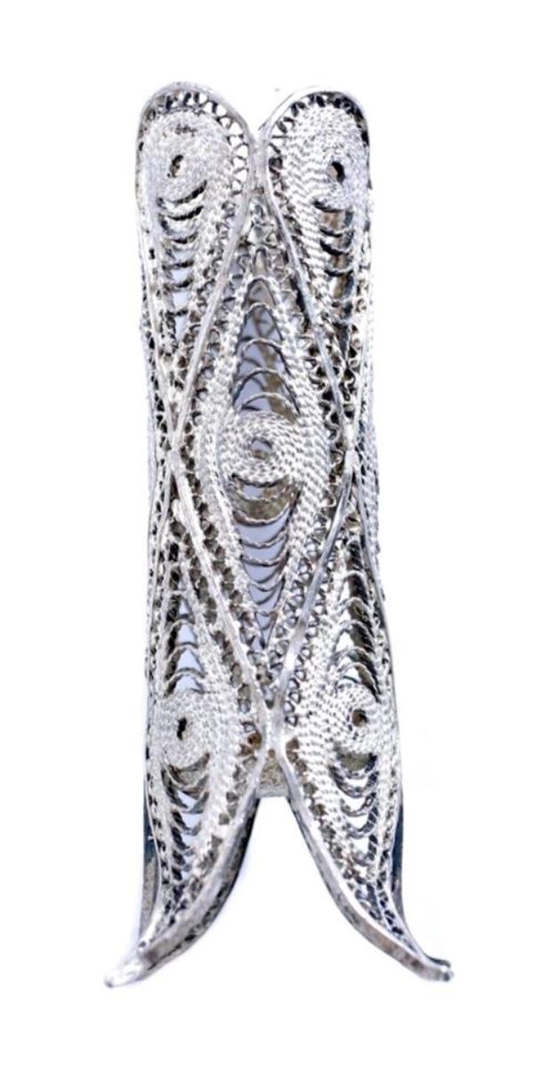 Sterling silver filigree Tussie Mussie or posey holder. Stamped underside ANA 925. Approx. height 2.5", weigth 18.5 grams.