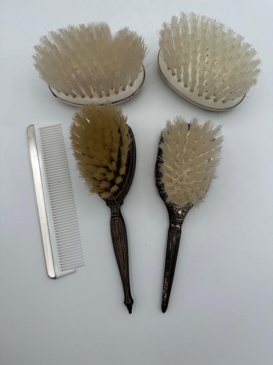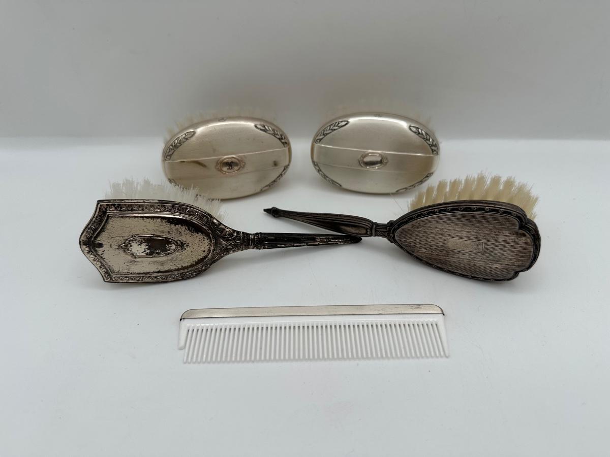 Sterling Silver Vanity Brush and Comb Set – 5 Pieces