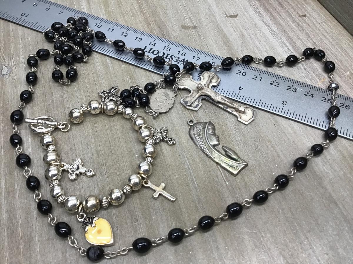 Sterling Silver Vintage Rosary with Miscellaneous Items