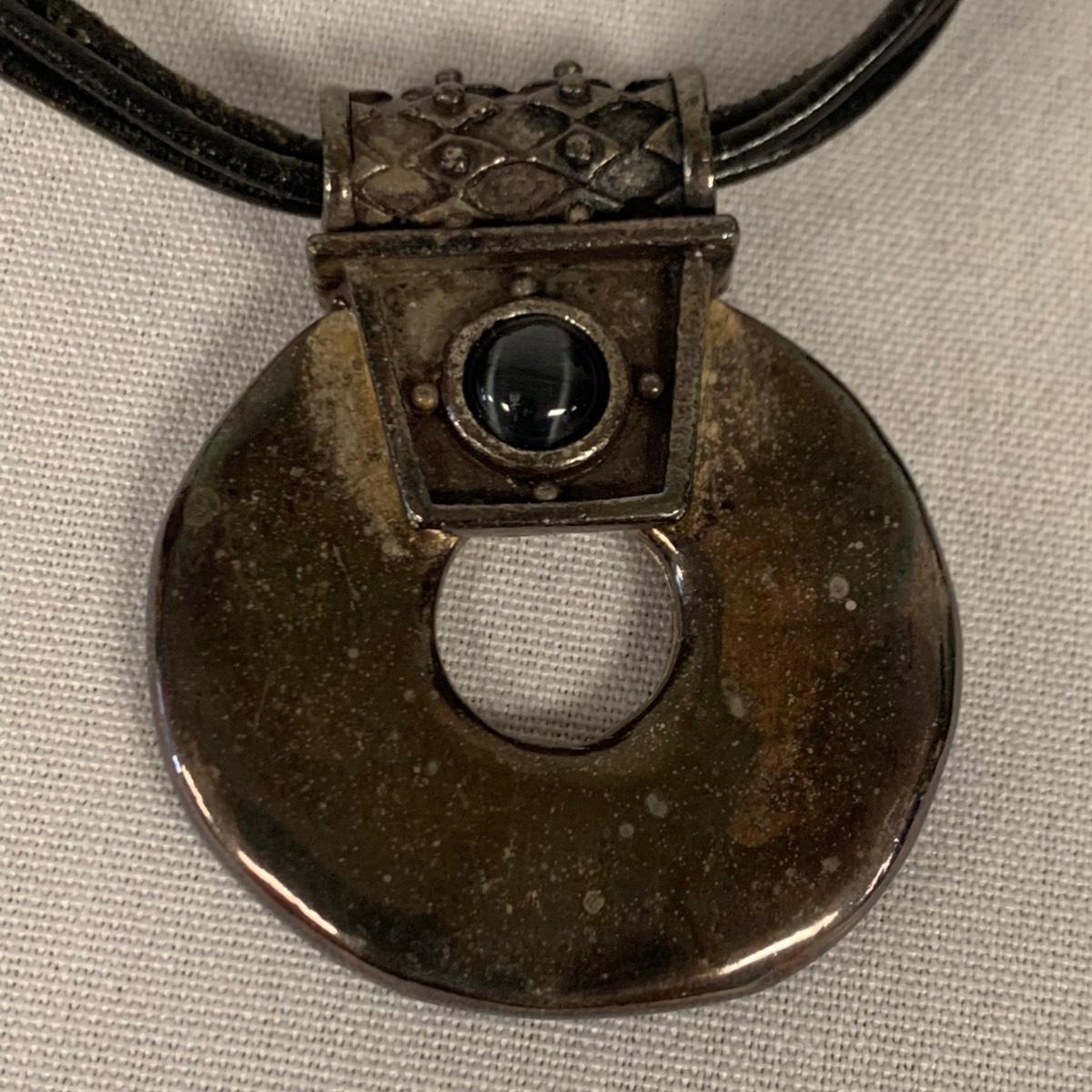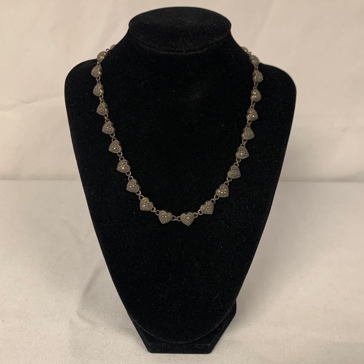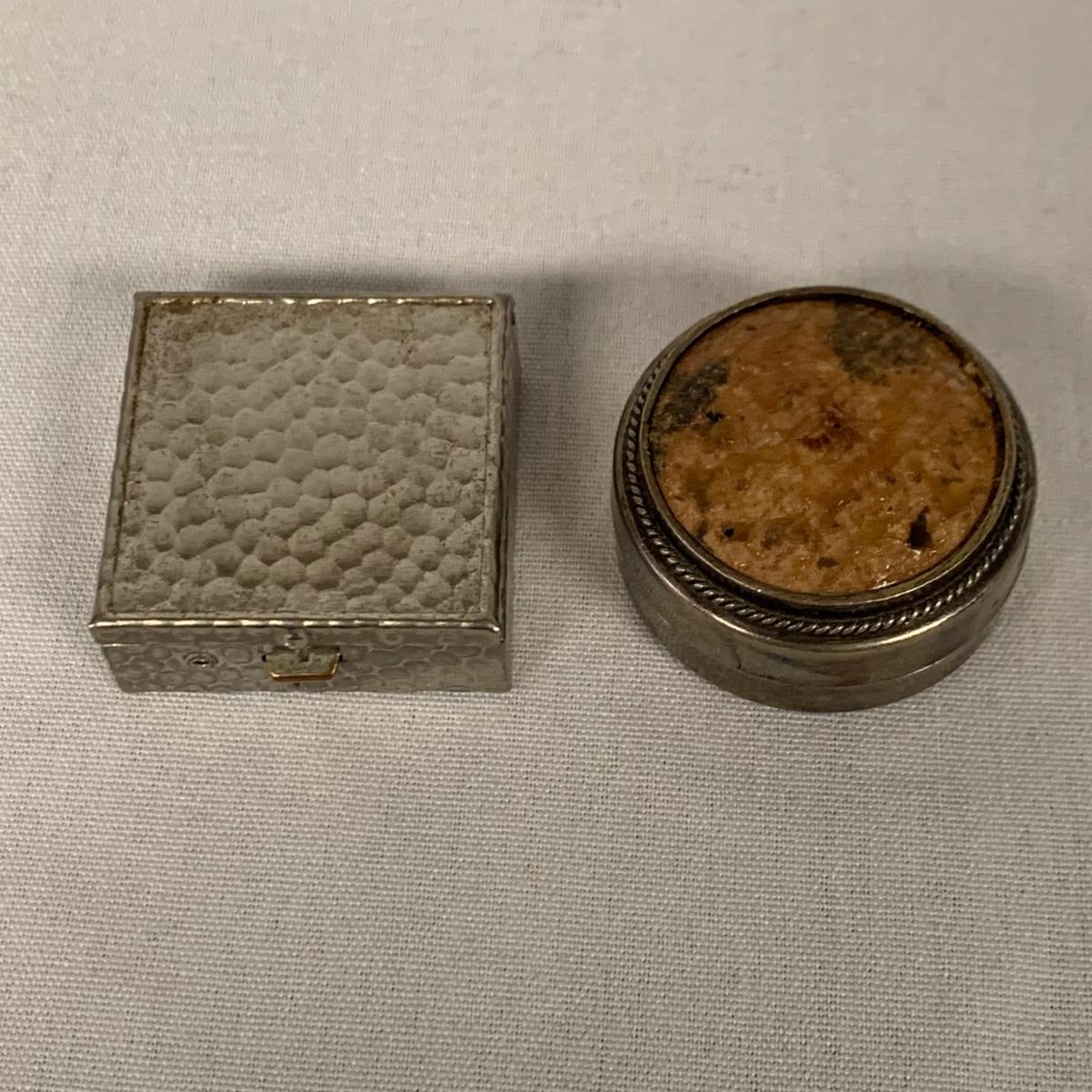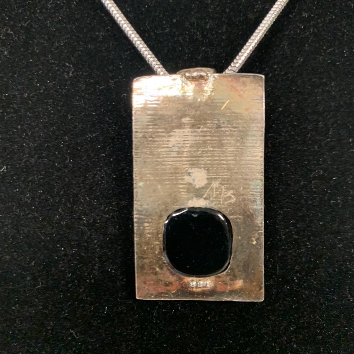 A lovely collection of necklaces, pendants, two cuff bracelets, and two small metal pill boxes. There are 11 necklaces included plus two pendants without chains. The V-point necklace chain is marked 925. It is a bit tarnished and needs to be polished. The longest necklace is the rounded silver chain that currently holds the silver pendant with the glass dragonfly motif. It is 30” long. The pearl-like necklace does not appear to have real pearls. Please see photos for markings.