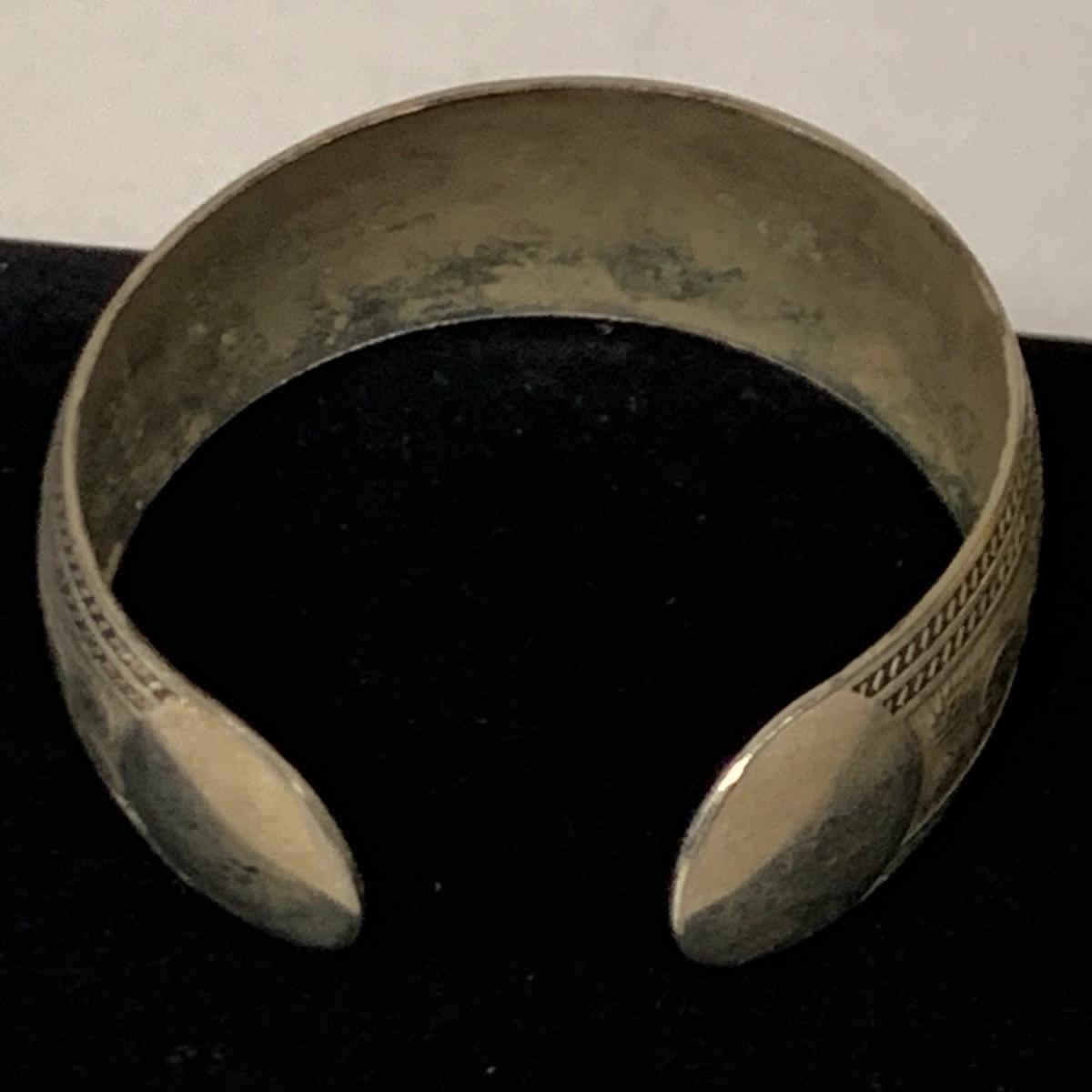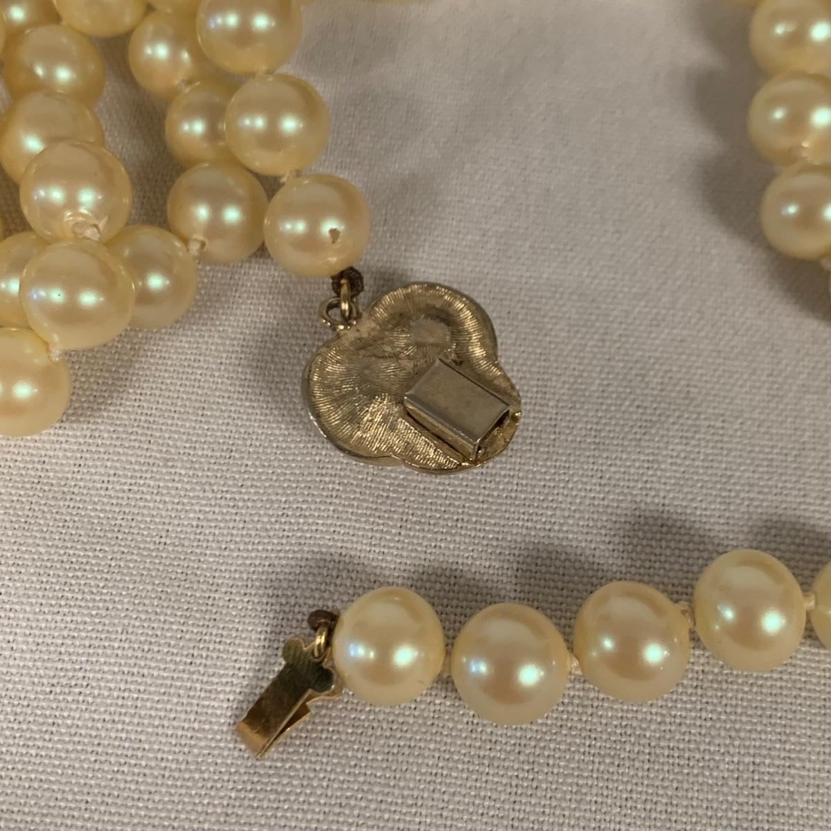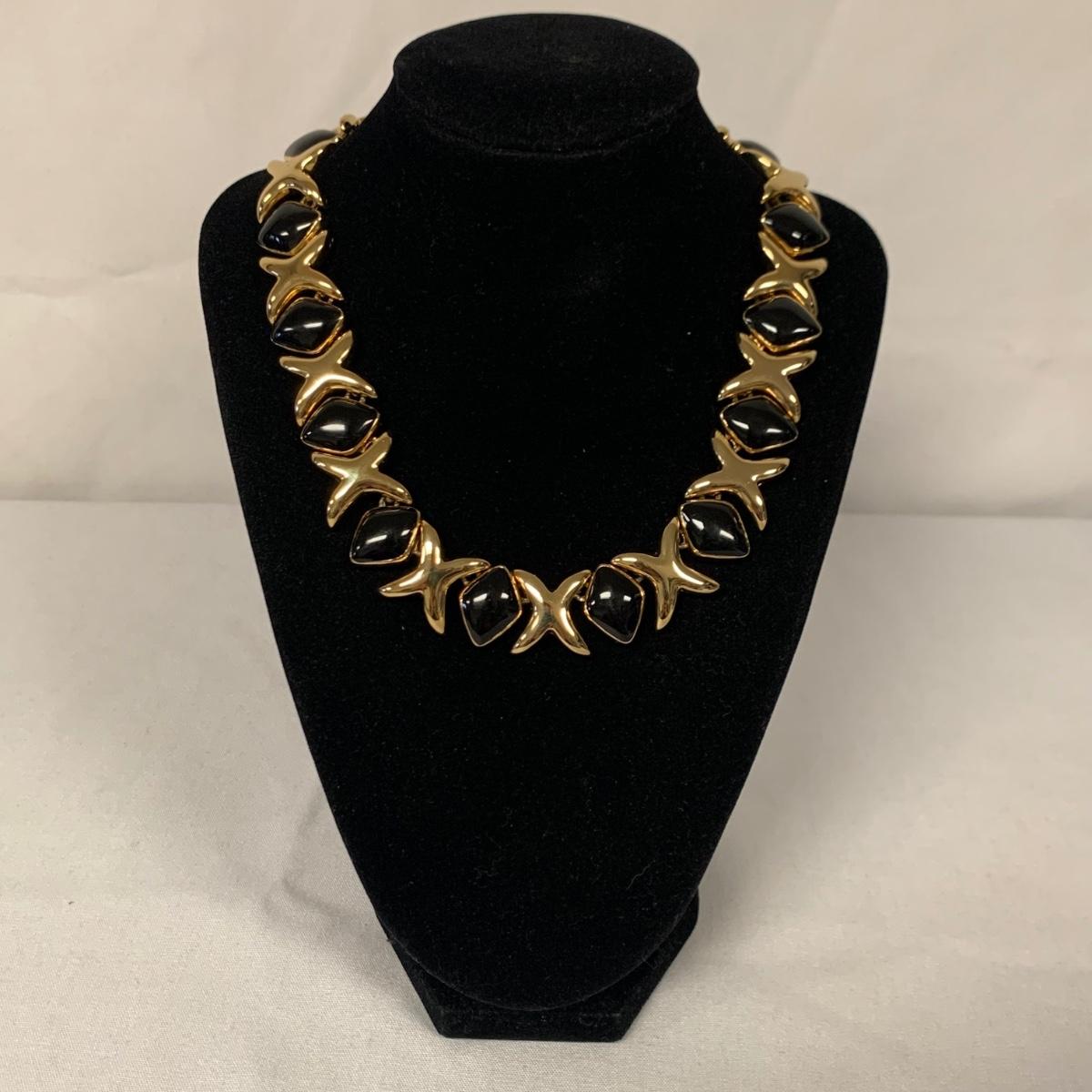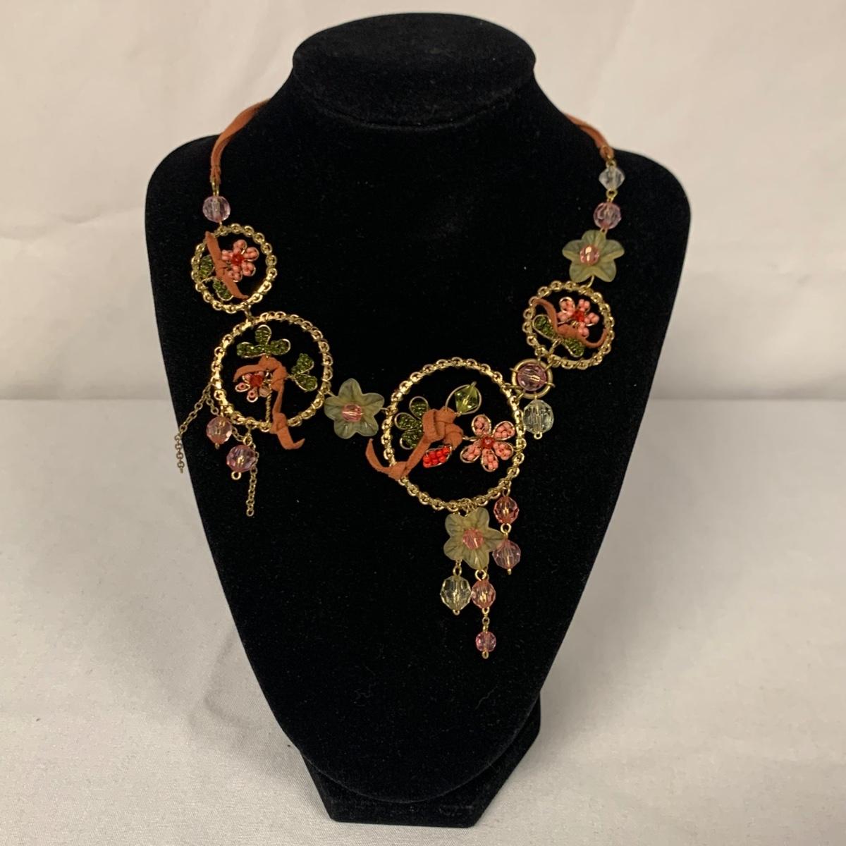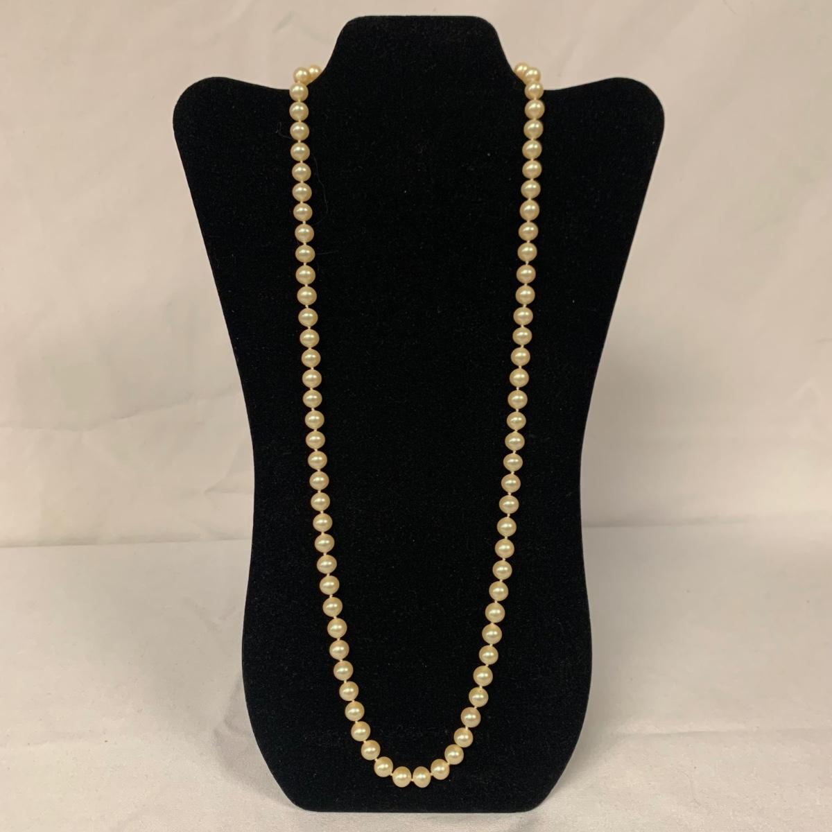 A lovely collection of necklaces, pendants, two cuff bracelets, and two small metal pill boxes. There are 11 necklaces included plus two pendants without chains. The V-point necklace chain is marked 925. It is a bit tarnished and needs to be polished. The longest necklace is the rounded silver chain that currently holds the silver pendant with the glass dragonfly motif. It is 30” long. The pearl-like necklace does not appear to have real pearls. Please see photos for markings.