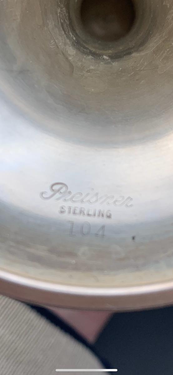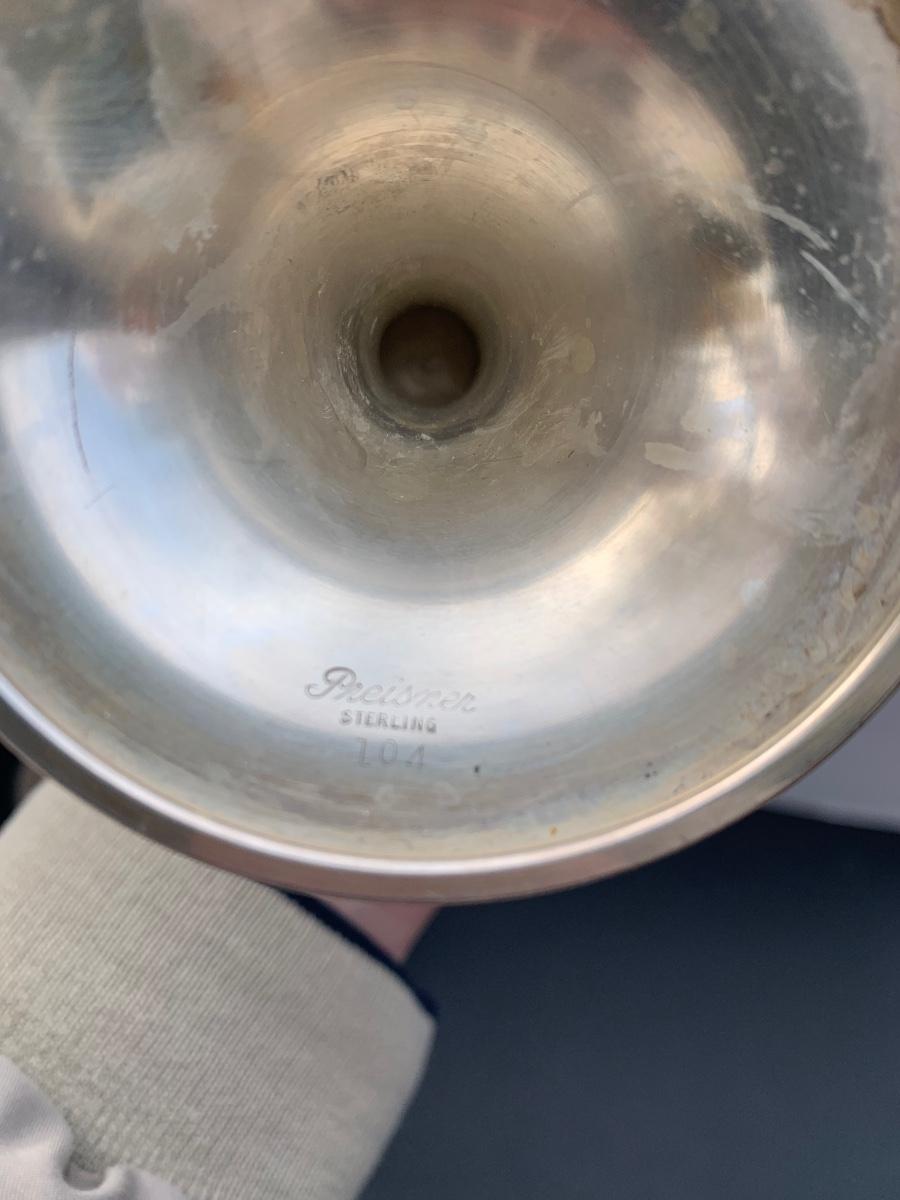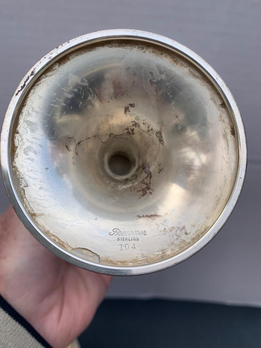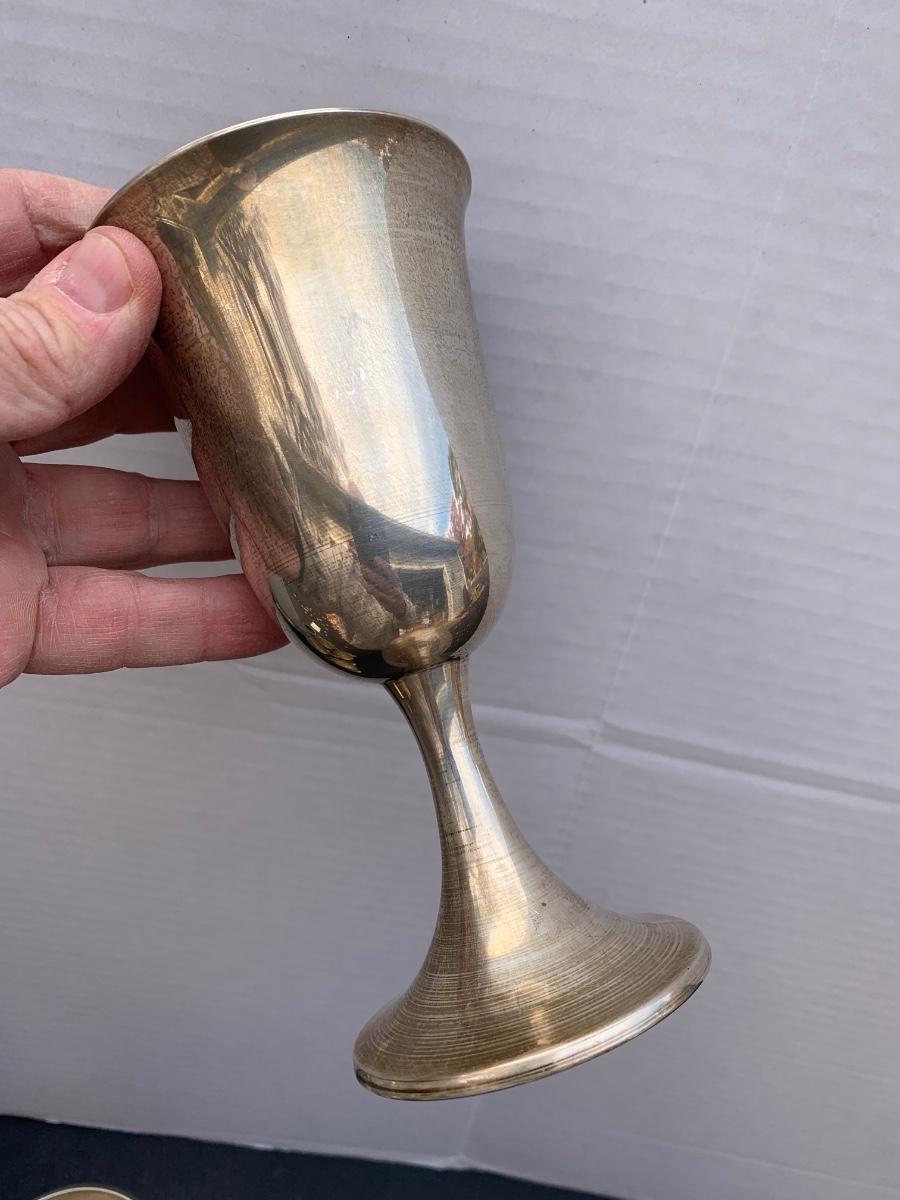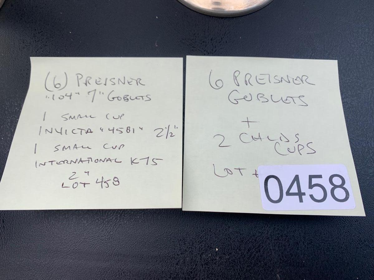 SIX 7” Sterling Silver Water Goblets by Preisner stamped “Sterling 104” plus 2 little cups also stamped sterling.