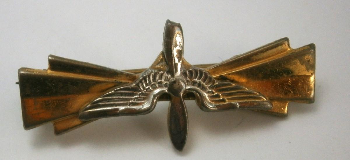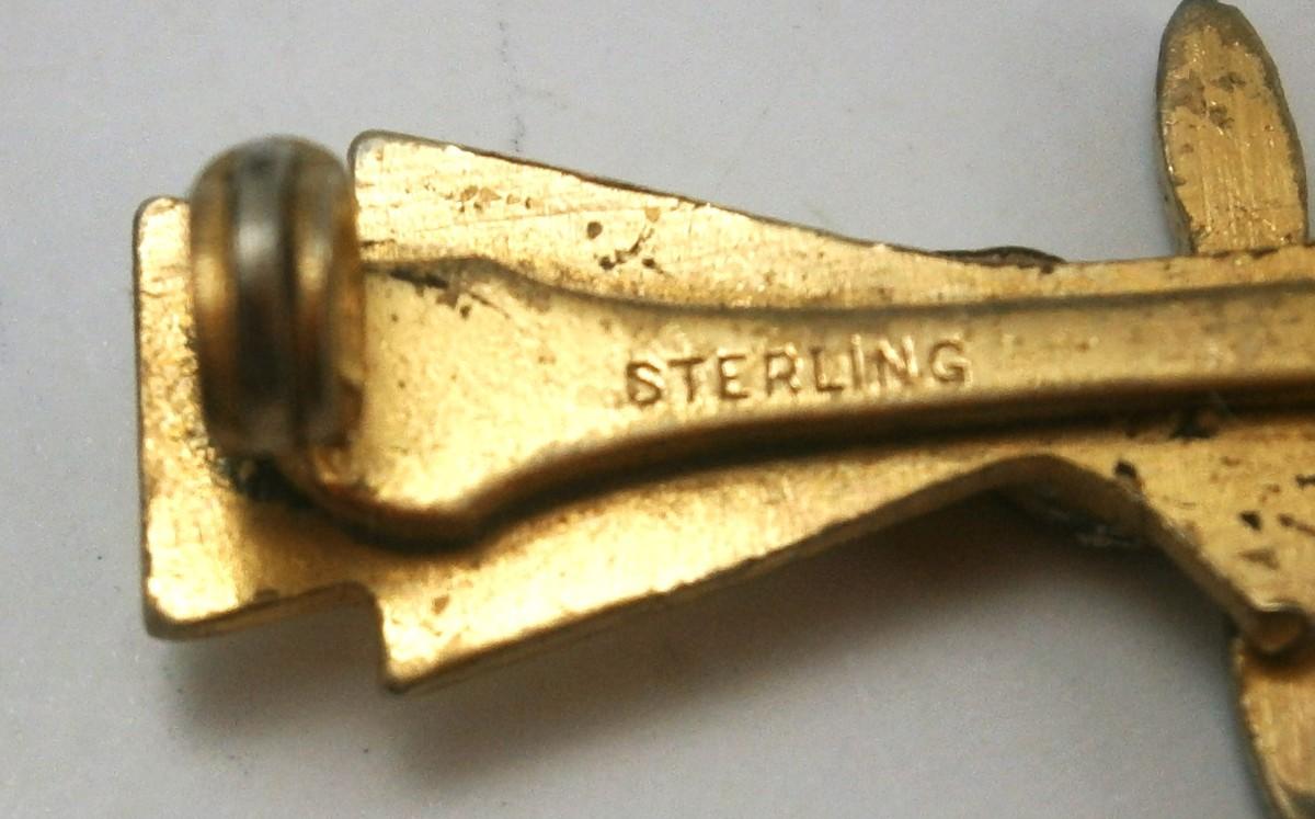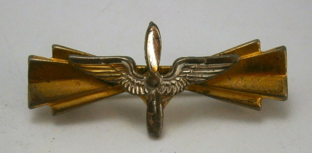 Vintage WWII Era Sterling Silver Air Corps Pin, 1 1/4 in. wide, sterling silver with a gold and silver wash.