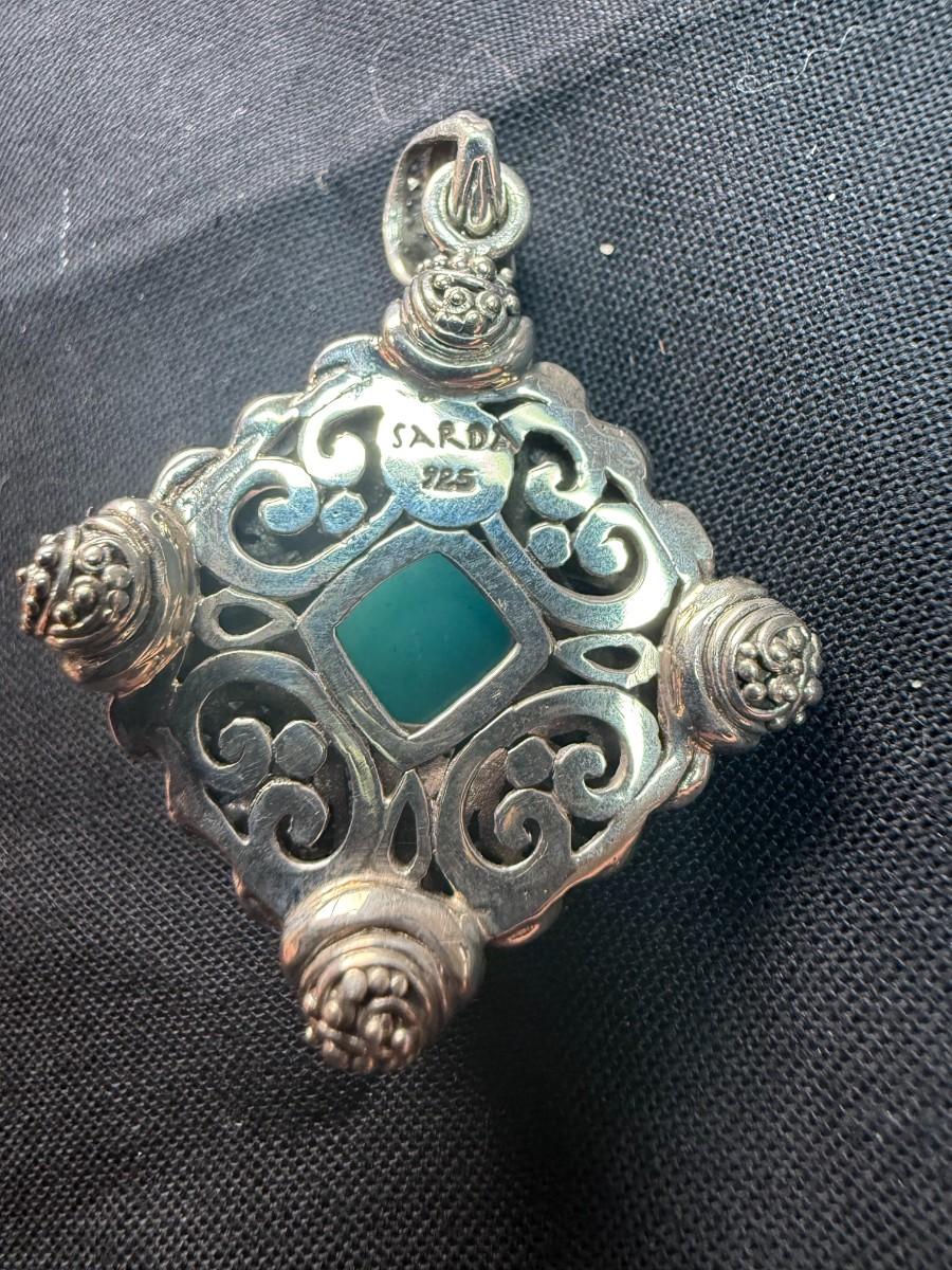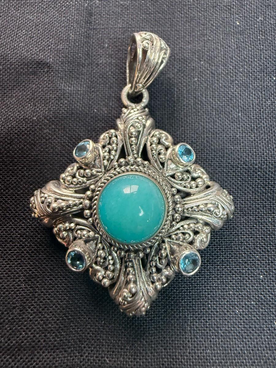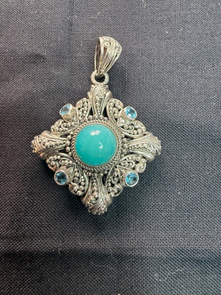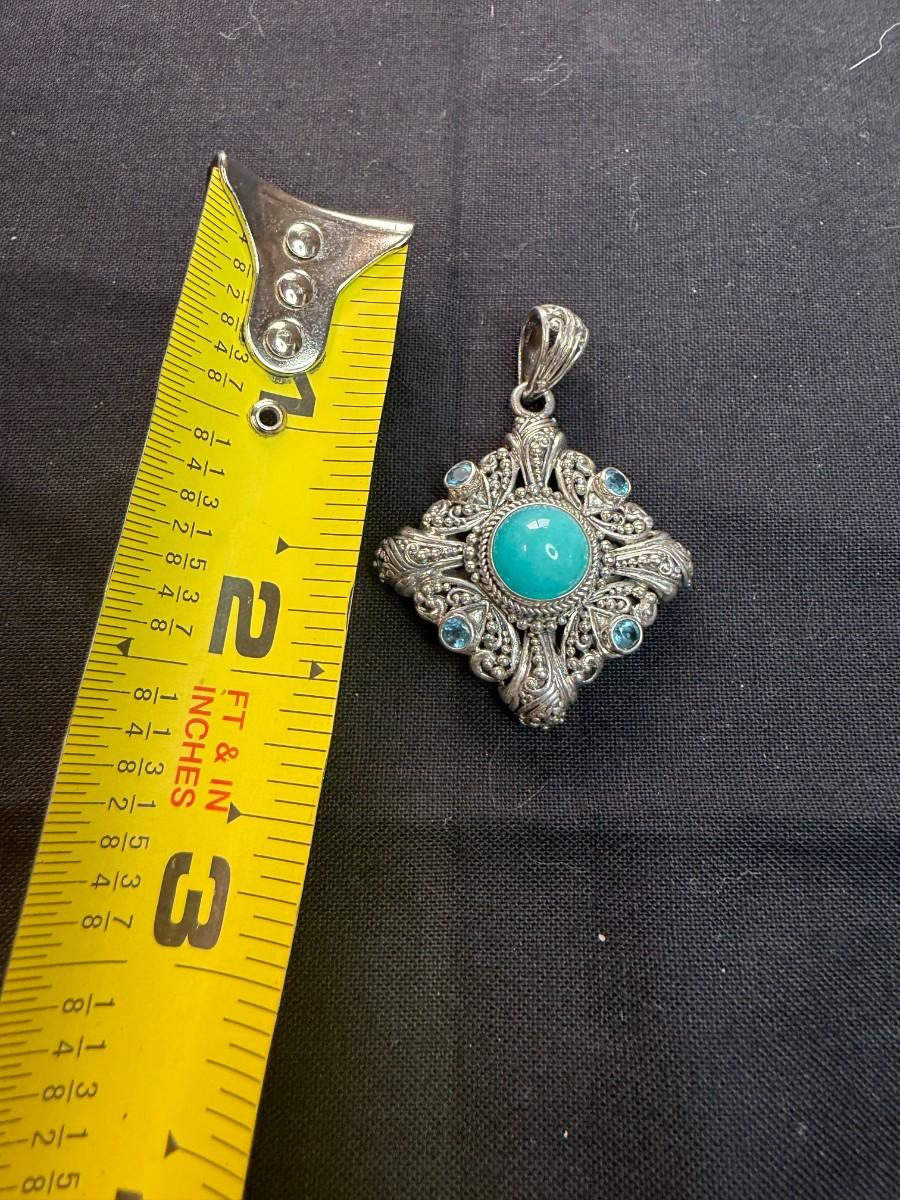 Sterling Silver with Turquoise center and blue topaz