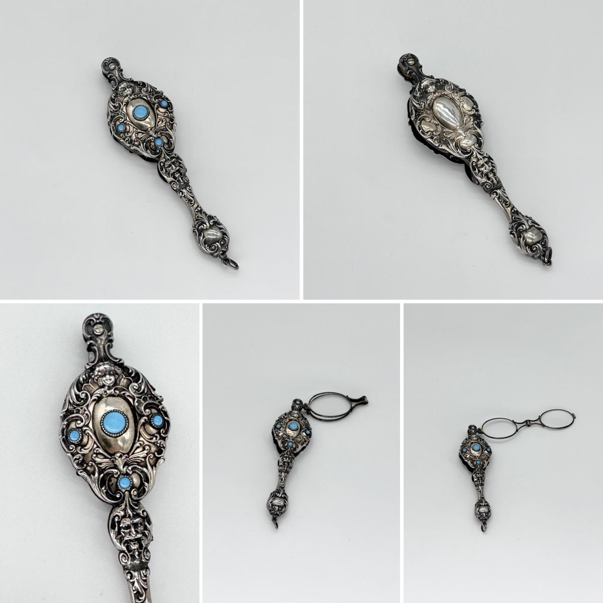 Sterling Silver with Turquoise Vtg Lorgnette Glasses