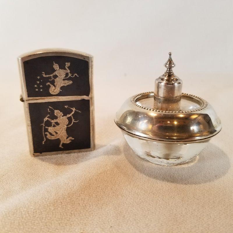 Sterling Silver/Glass Lighter and Siam Lighter Cover