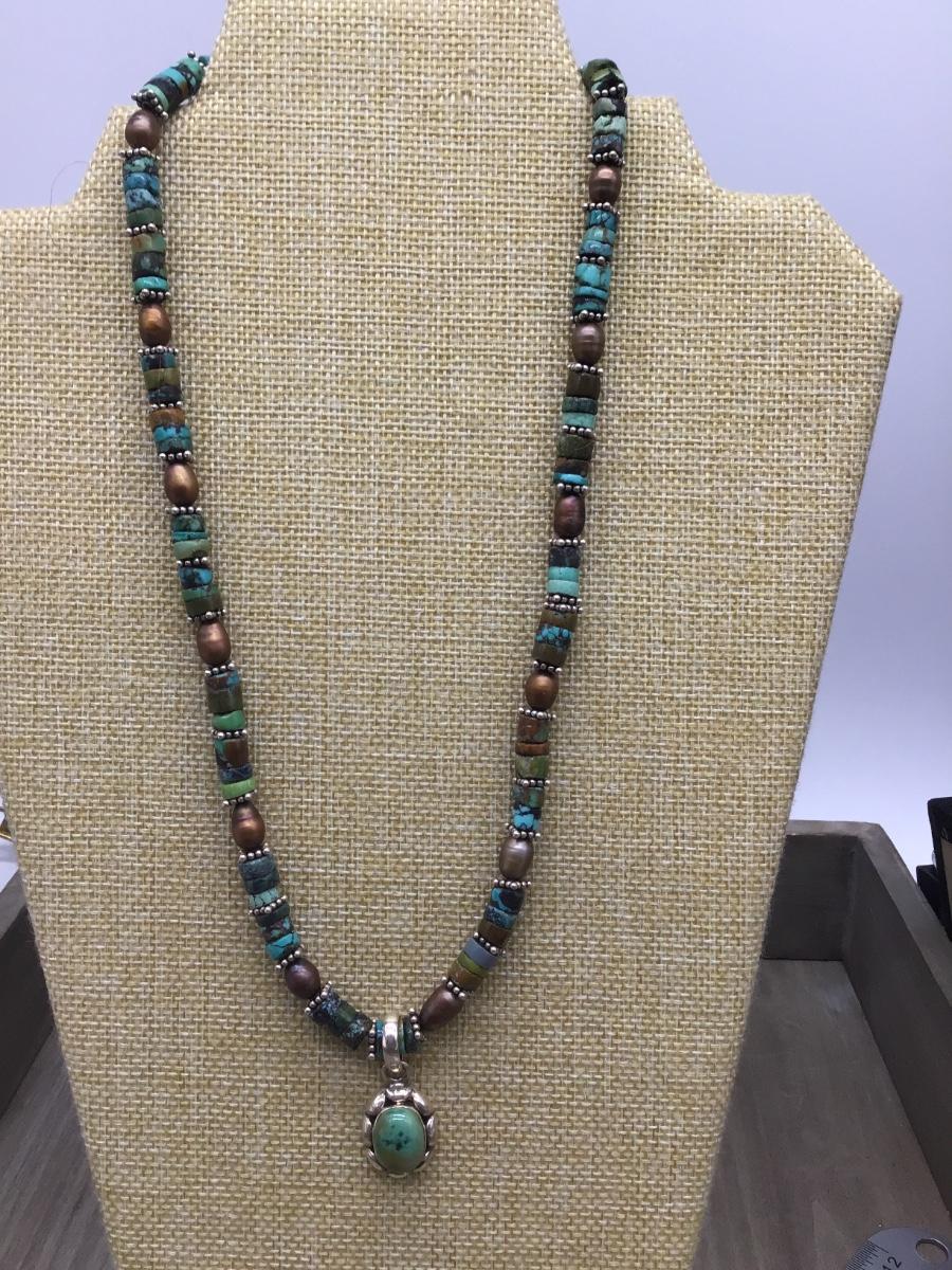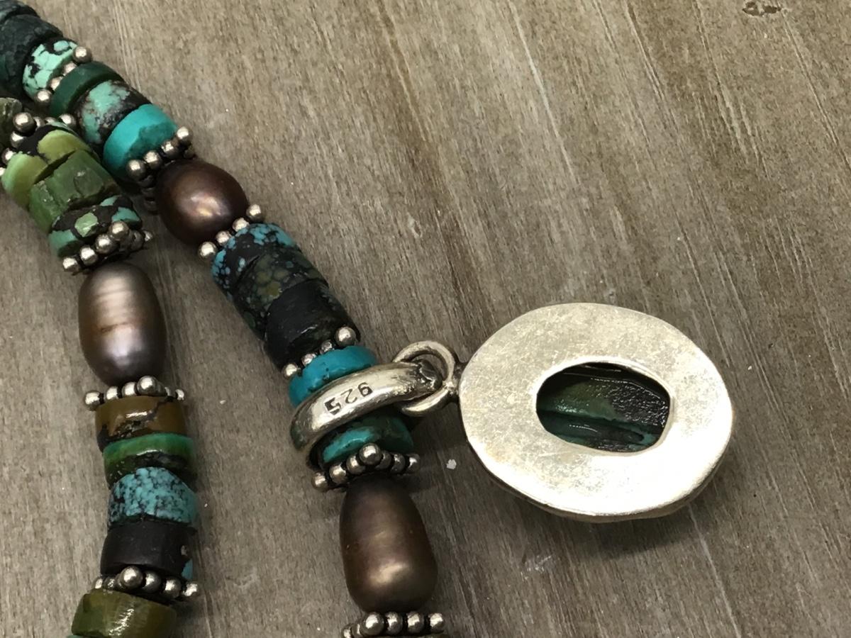 Sterling silver,Pearl,Multi Stone Southwest Style Necklace