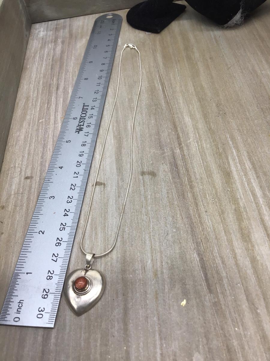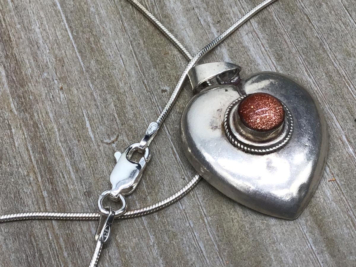 Sterling SilverSunStone Heart Pendant With Silver 925 Chain