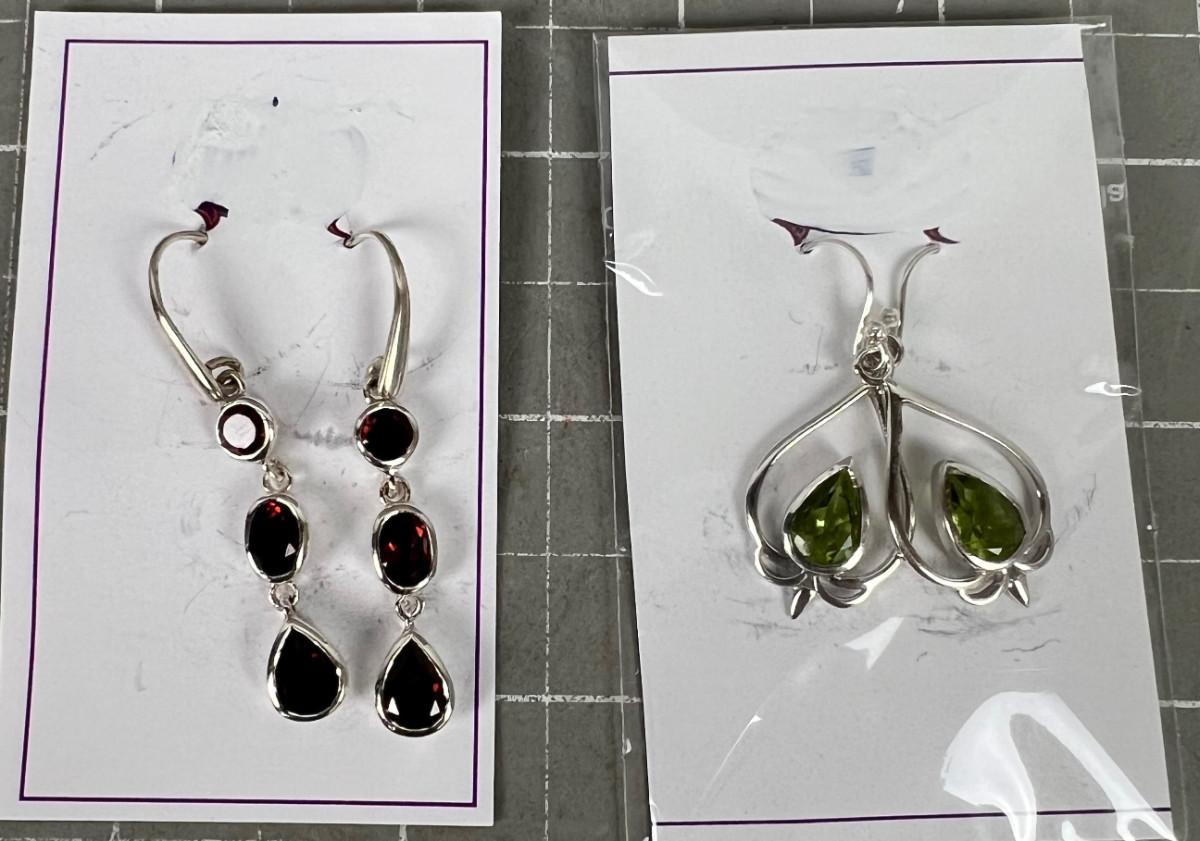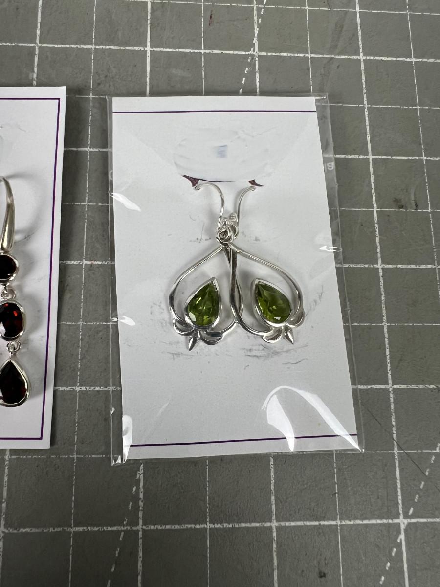 Sterling Siver Earrings Garnet and Peridot