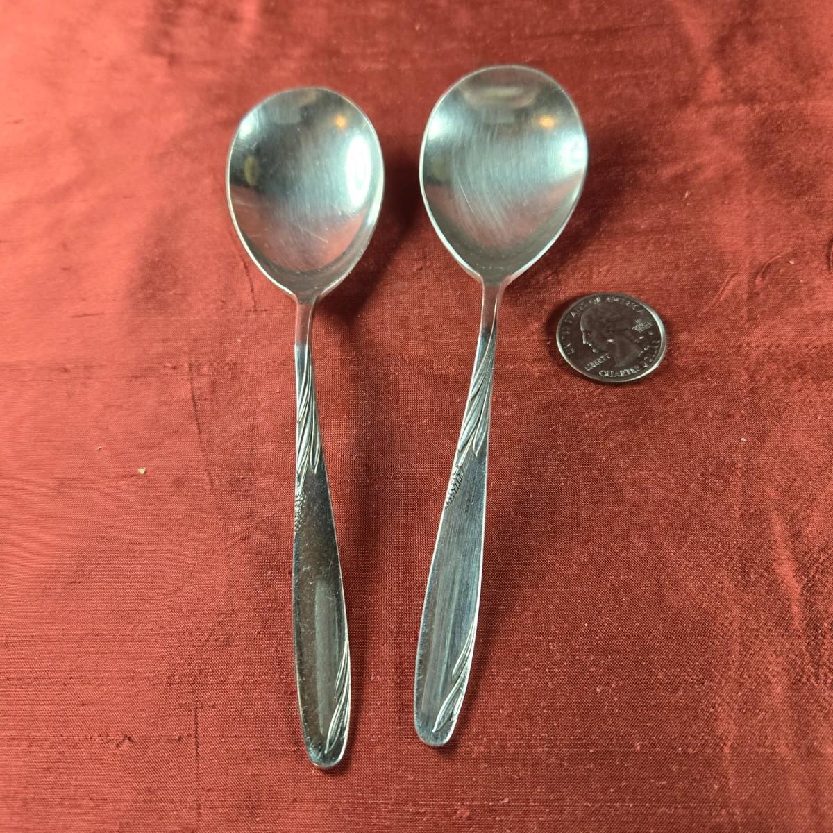 This auction lot is for a pair of Sterling Soup Spoons by Gorham Silver. Used condition. They are made in Gorham's "Willow" pattern. The pair of spoons weighs approximately 68 grams and are each 6.25-inches long.