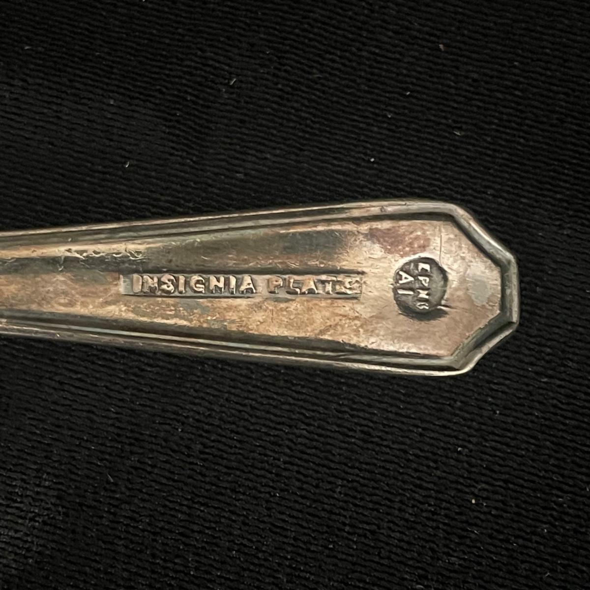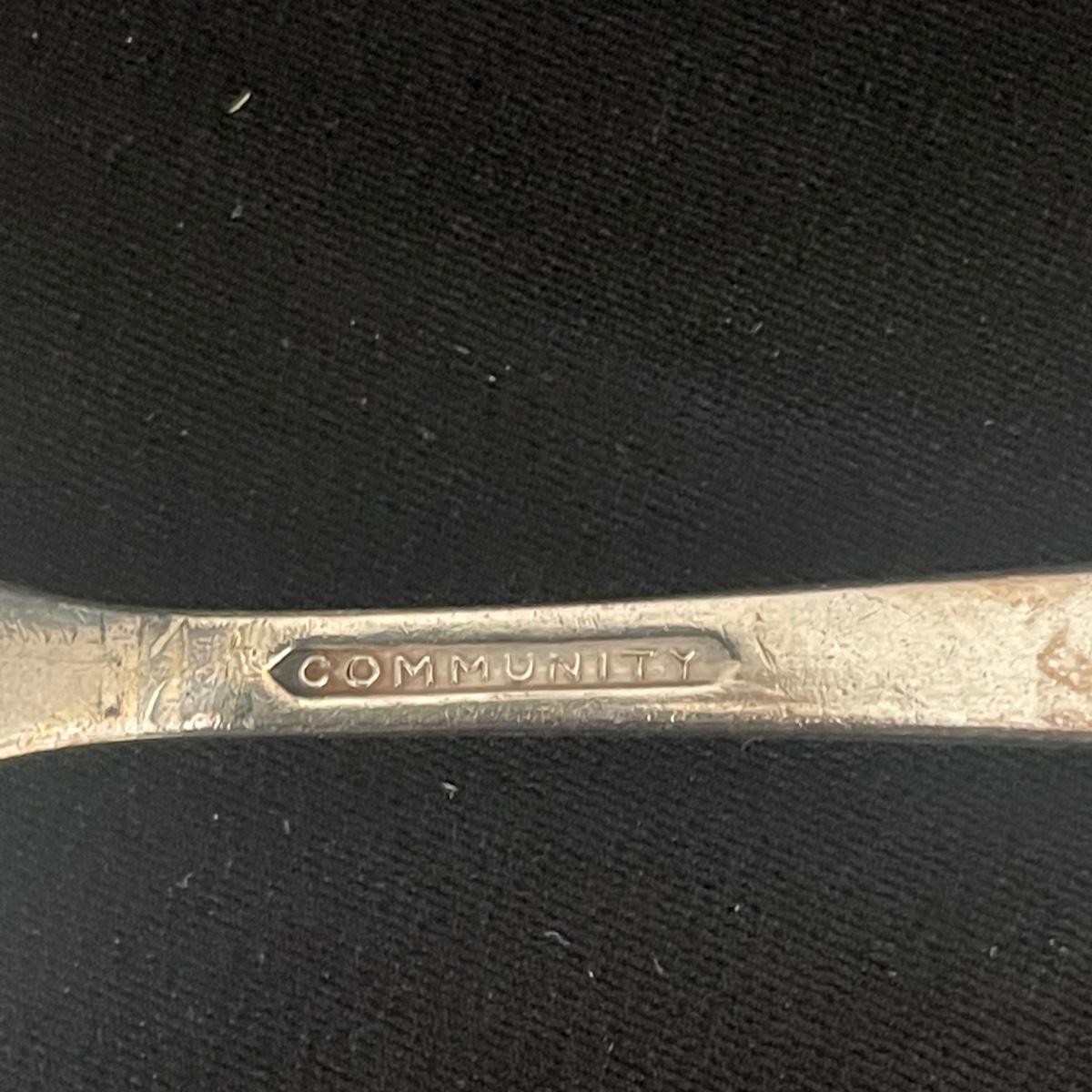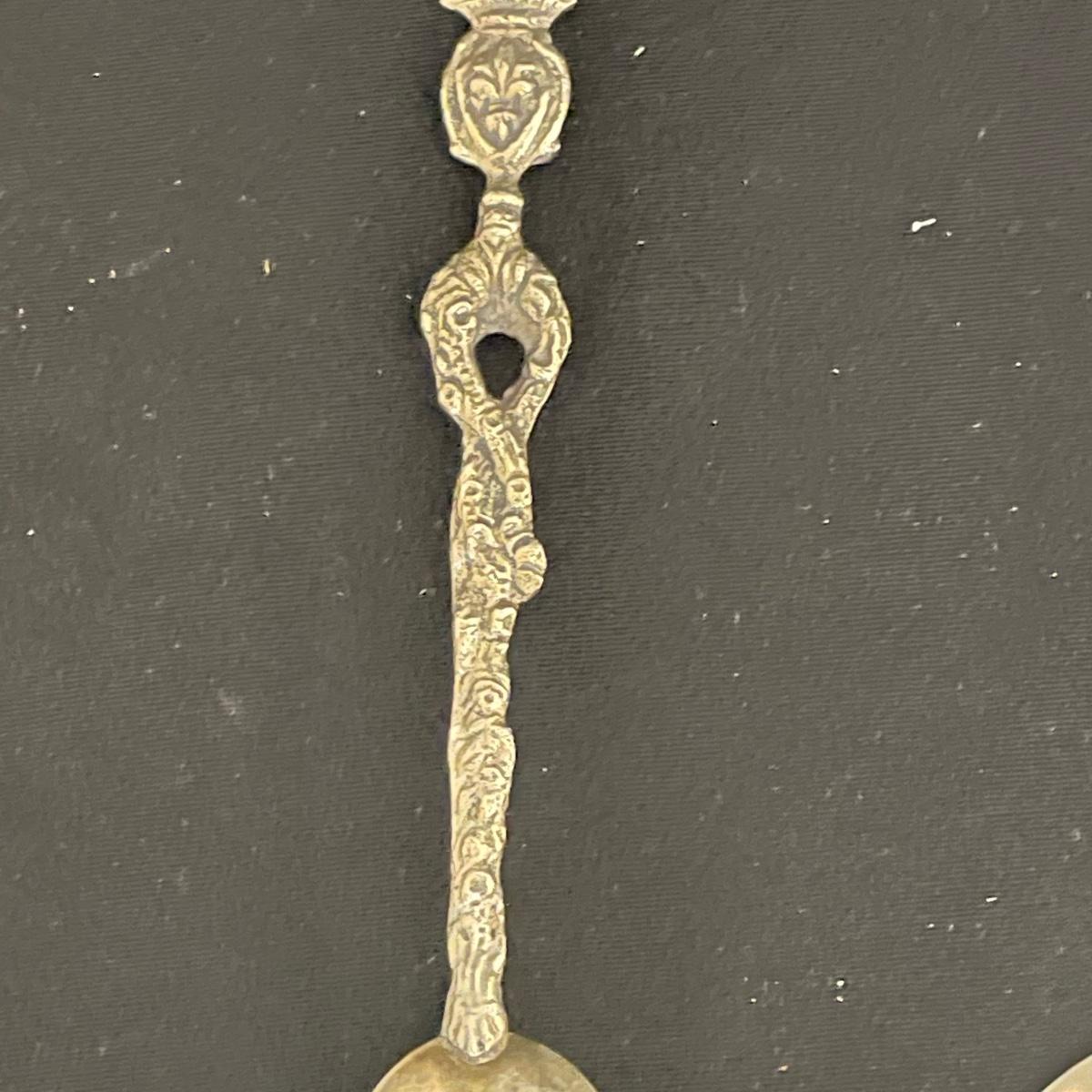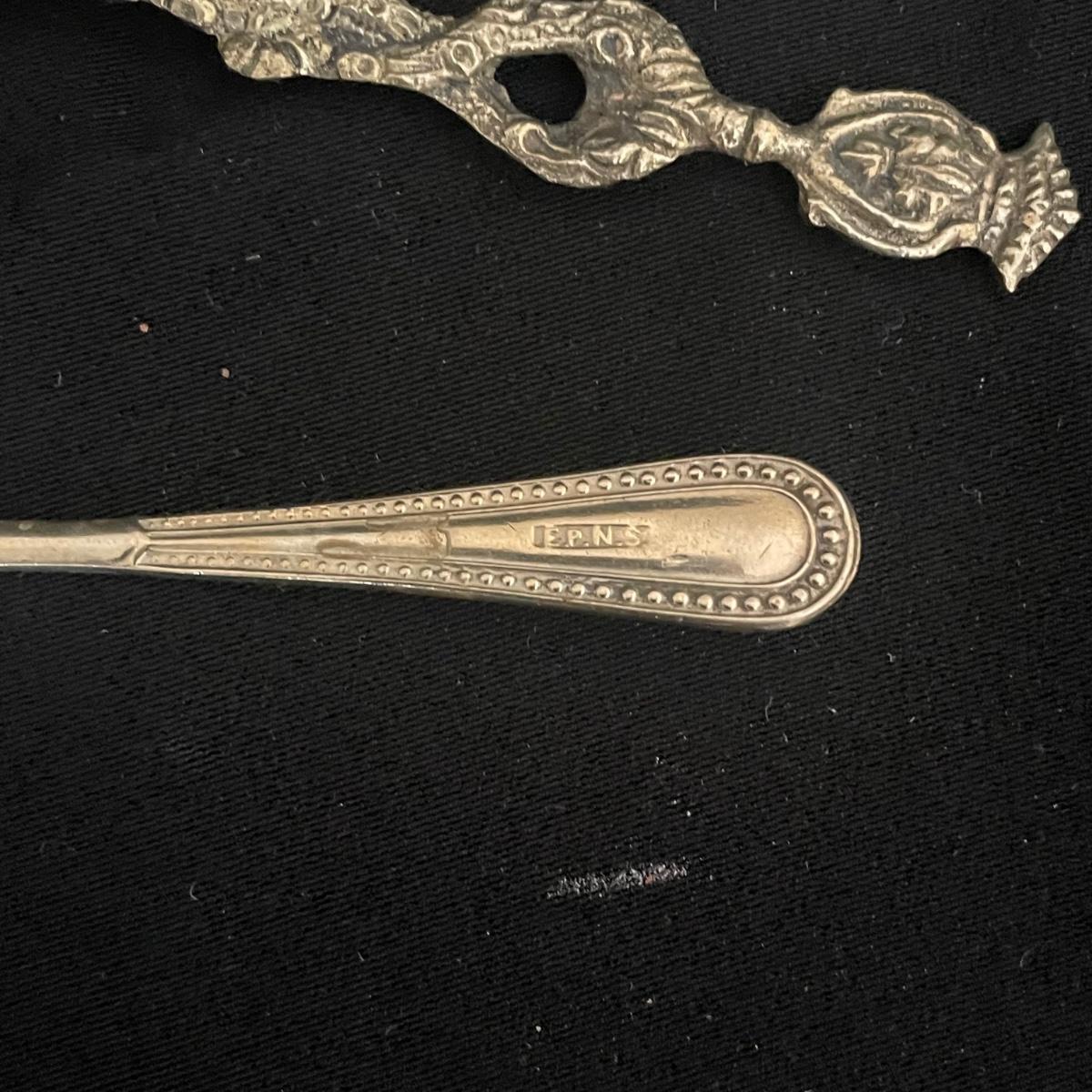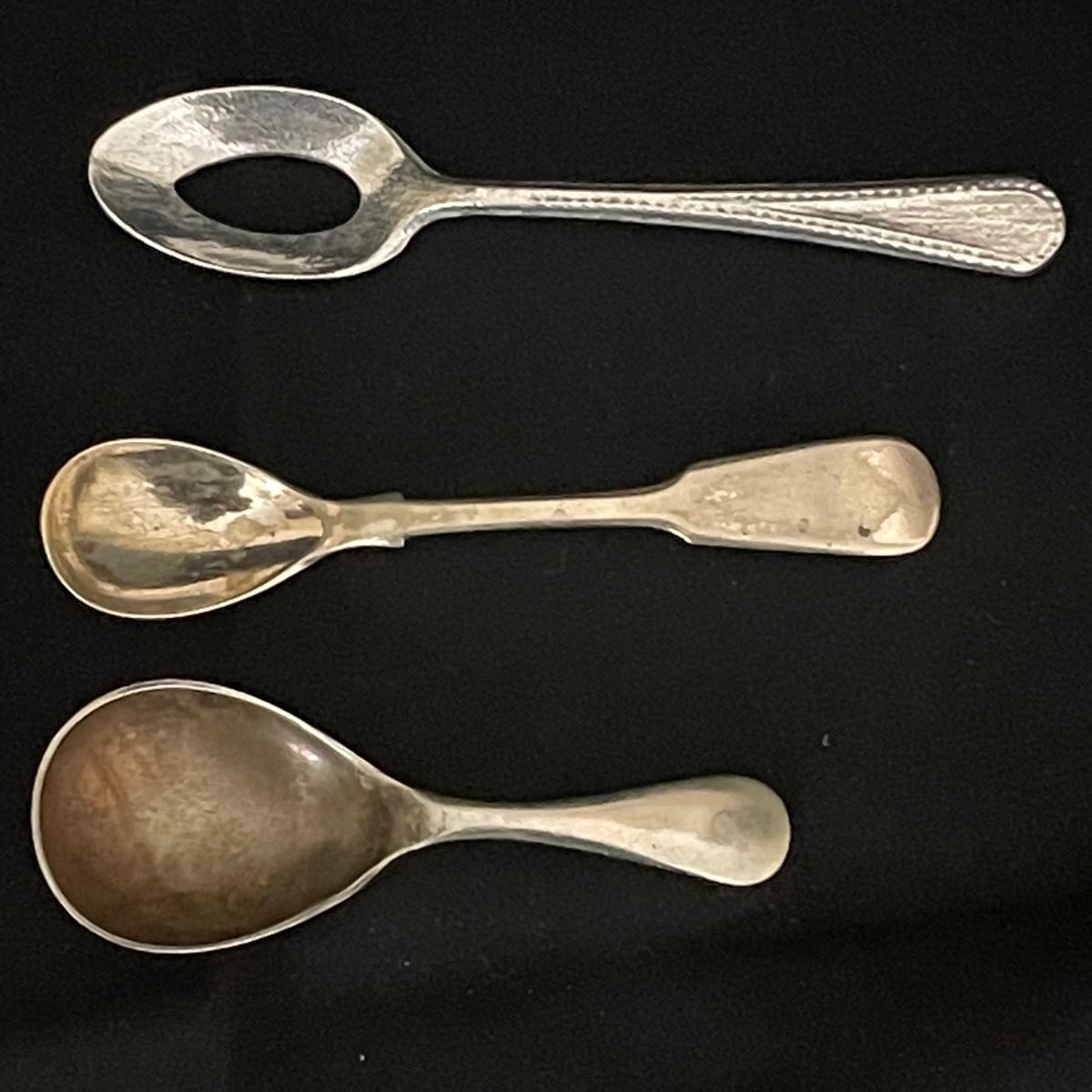 Thirty spoons here that includes tea spoons and larger spoons. One ornate teaspoon is marked sterling, the rest are mostly silver plate, see images for markings.