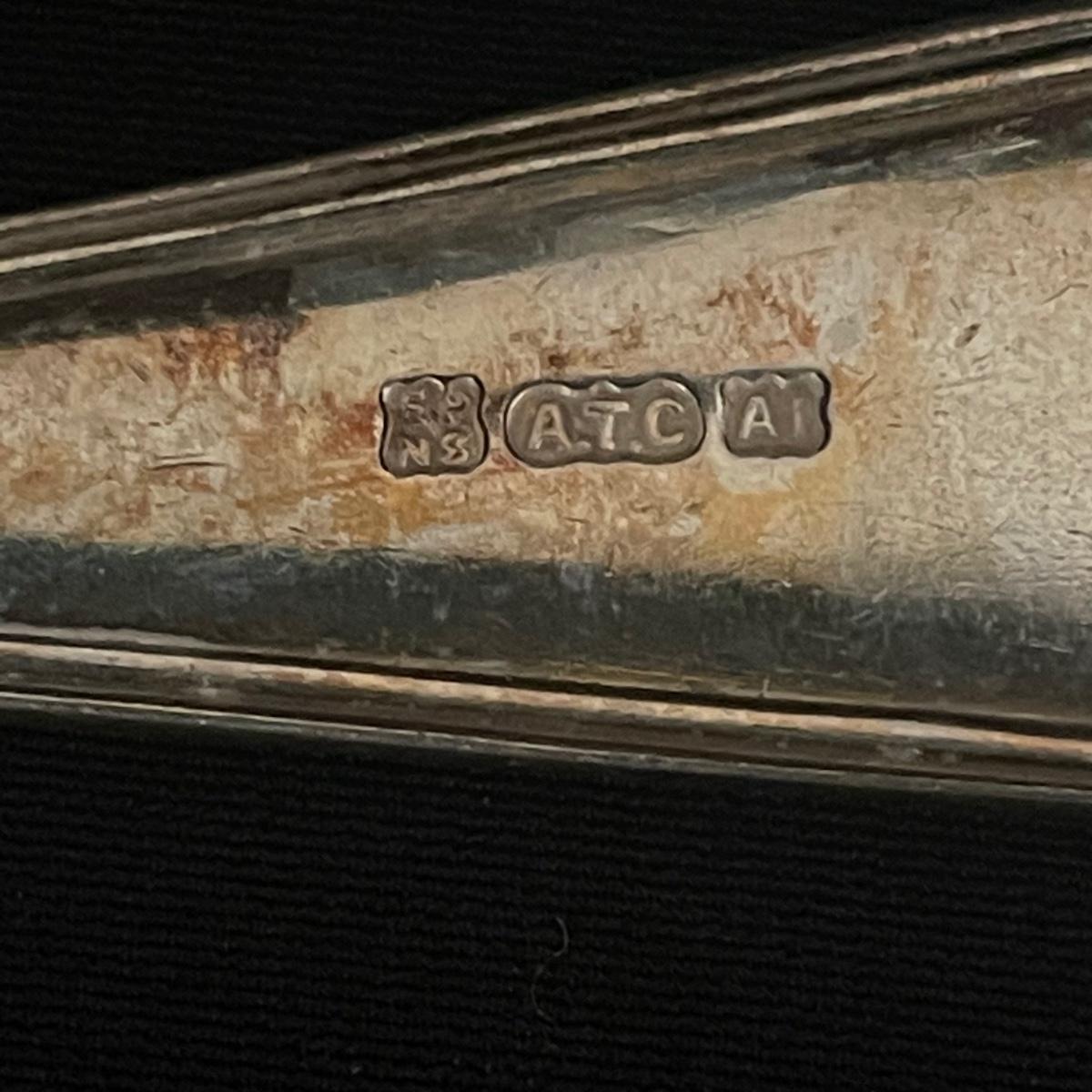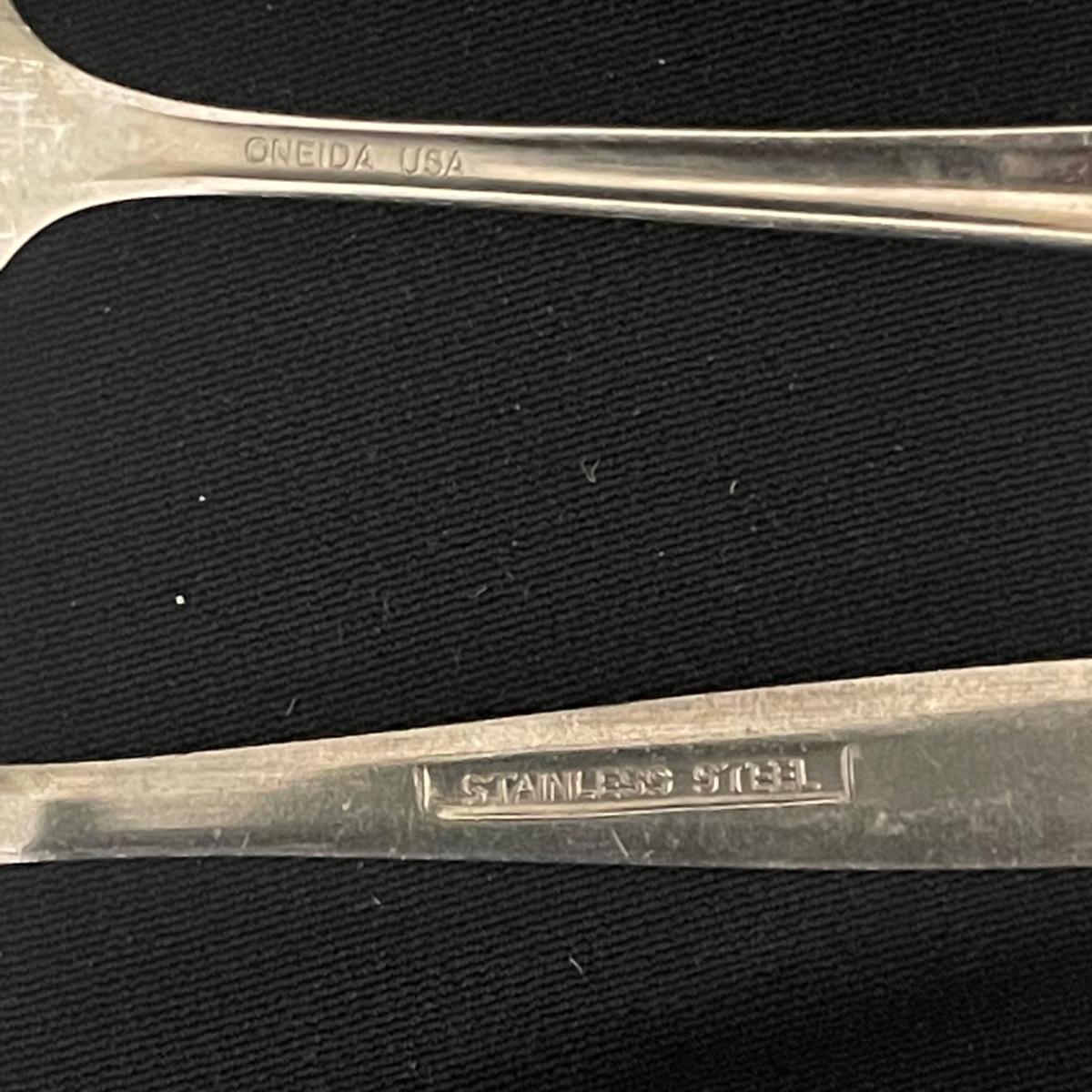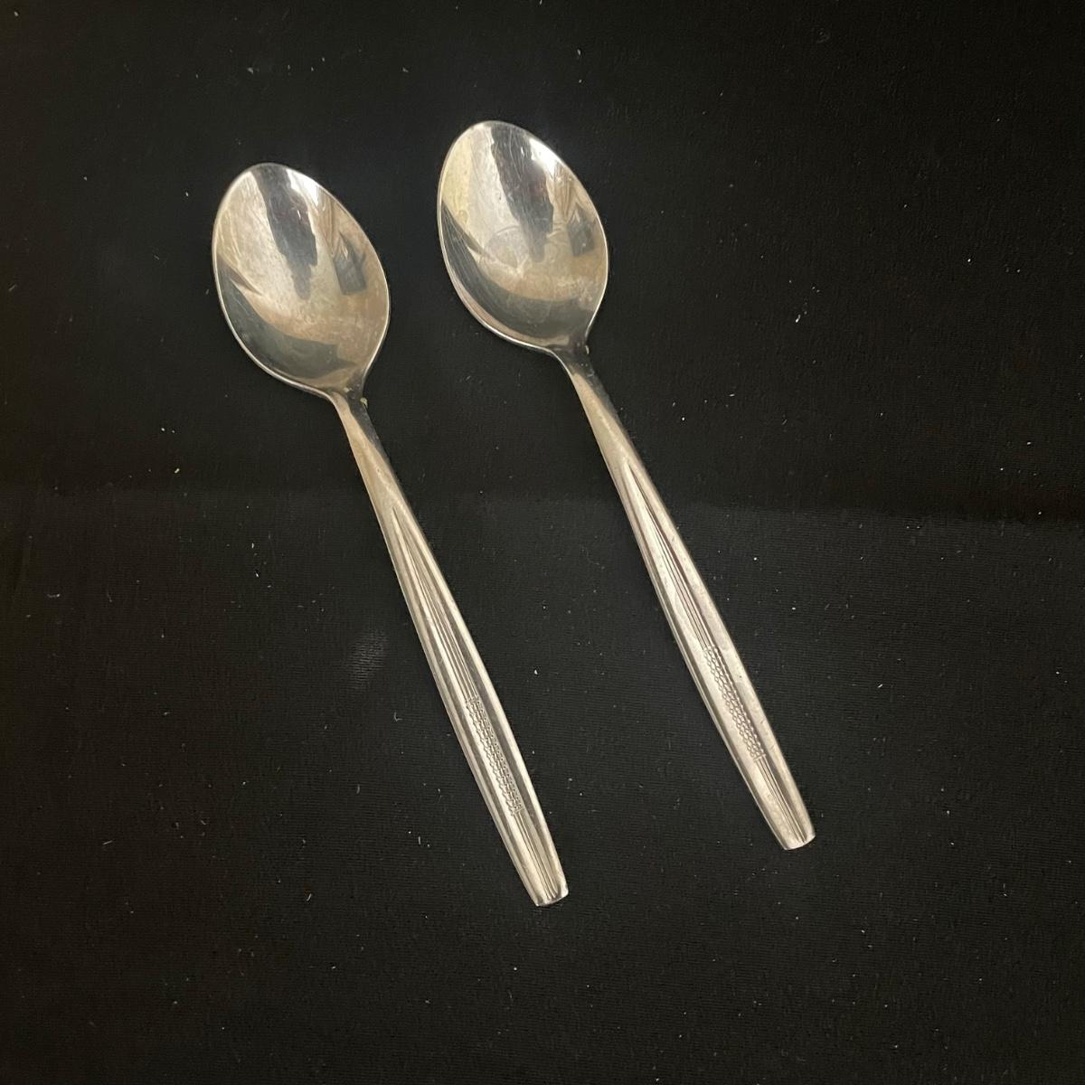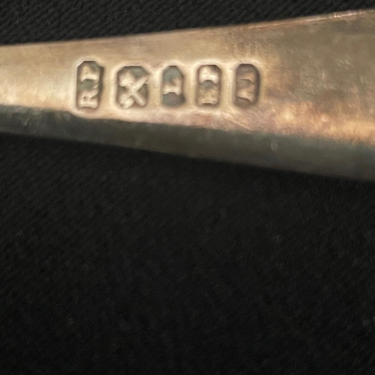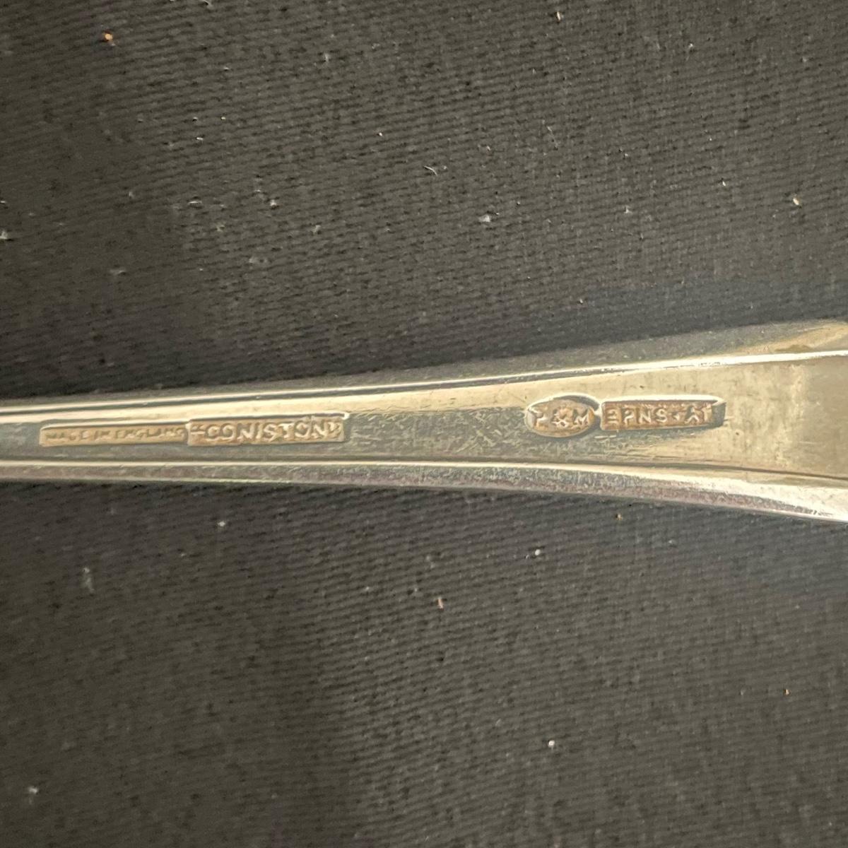 Thirty spoons here that includes tea spoons and larger spoons. One ornate teaspoon is marked sterling, the rest are mostly silver plate, see images for markings.