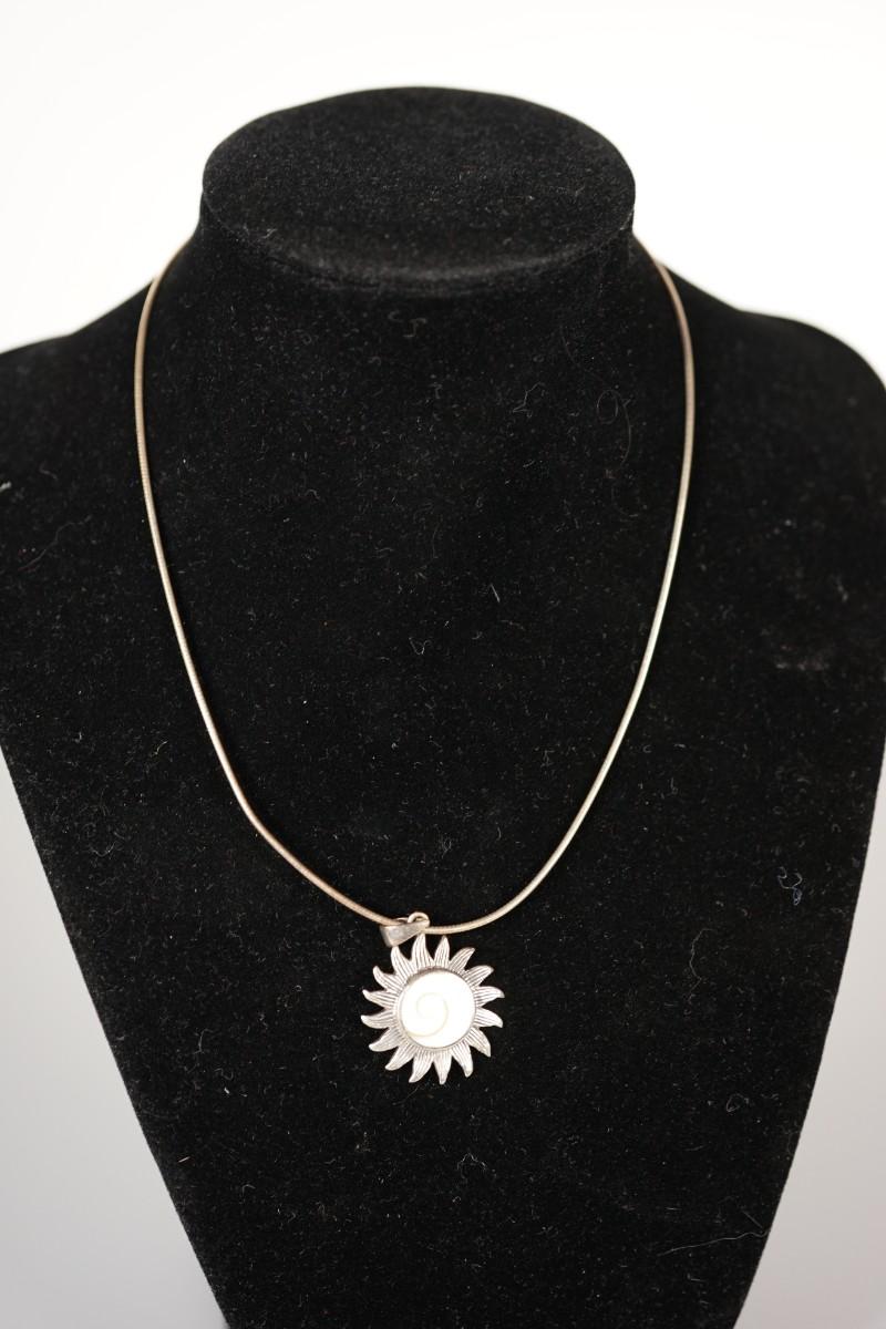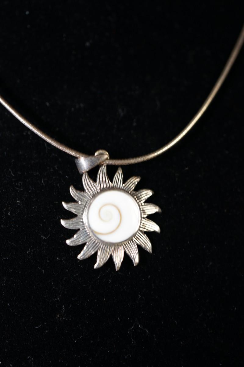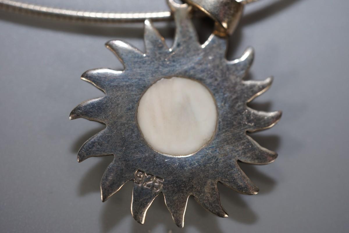 STERLING STARBURST PENDANT W/ ENAMELED CENTER, STERLING CHOKER