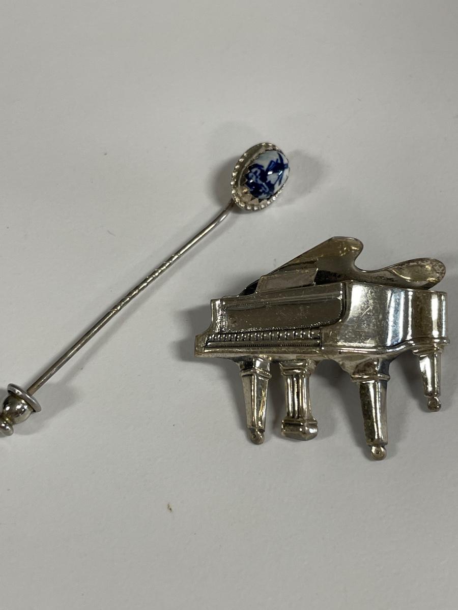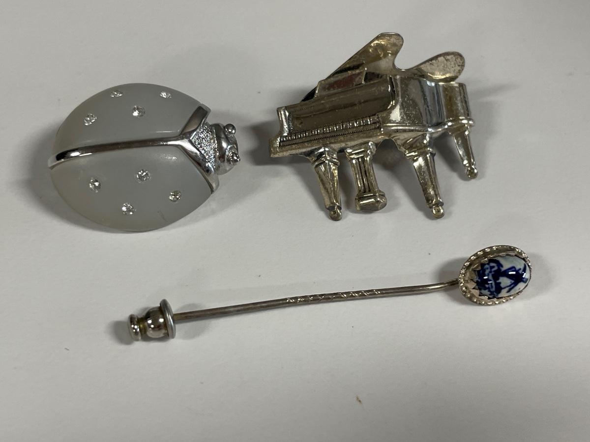 Sterling stick pin and Sterling Beau piano pin with Avon bug
