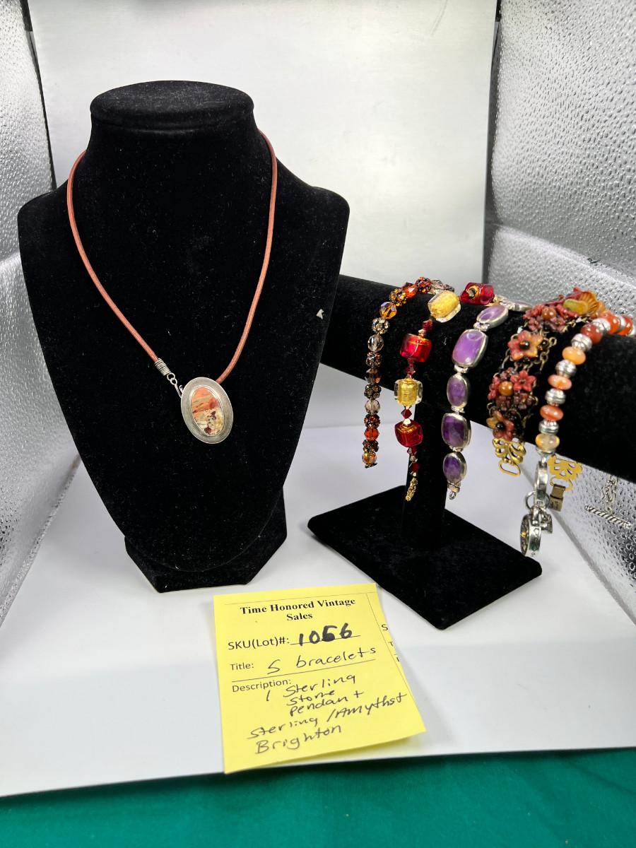 Sterling stone pendant and 5 bracelets