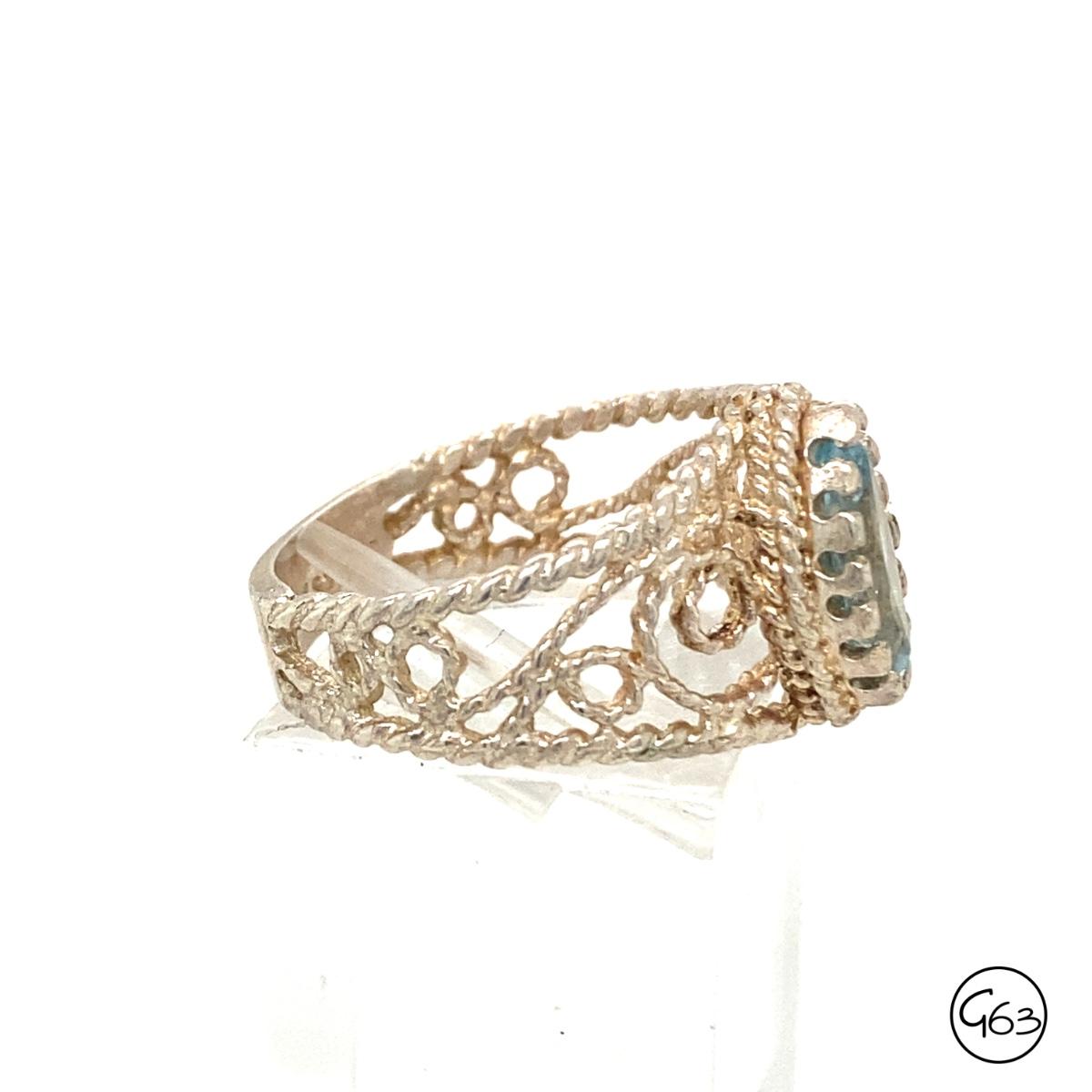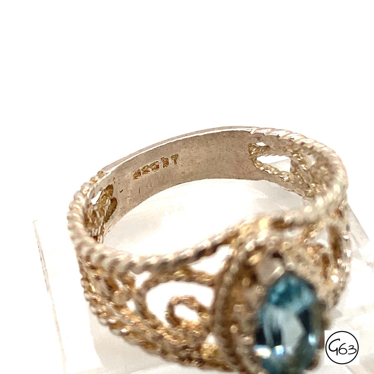 Testing as topaz. stamped 925. Size 8. Weighs approx. 4.3 grams.