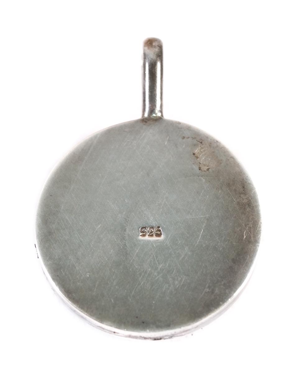Sterling tortoise color resin pendant. Stamped 925. Measures approx. 1.5". Weighs approx. 14 grams.