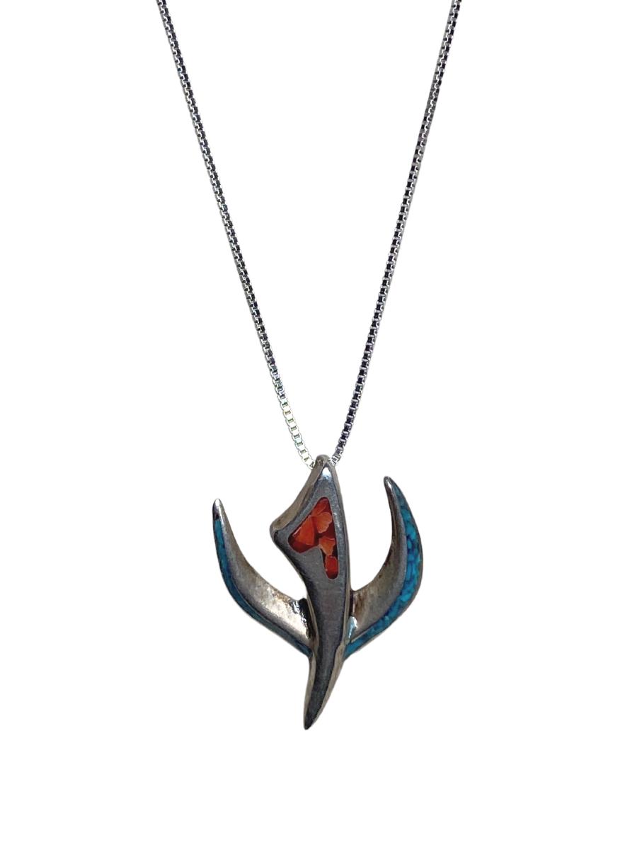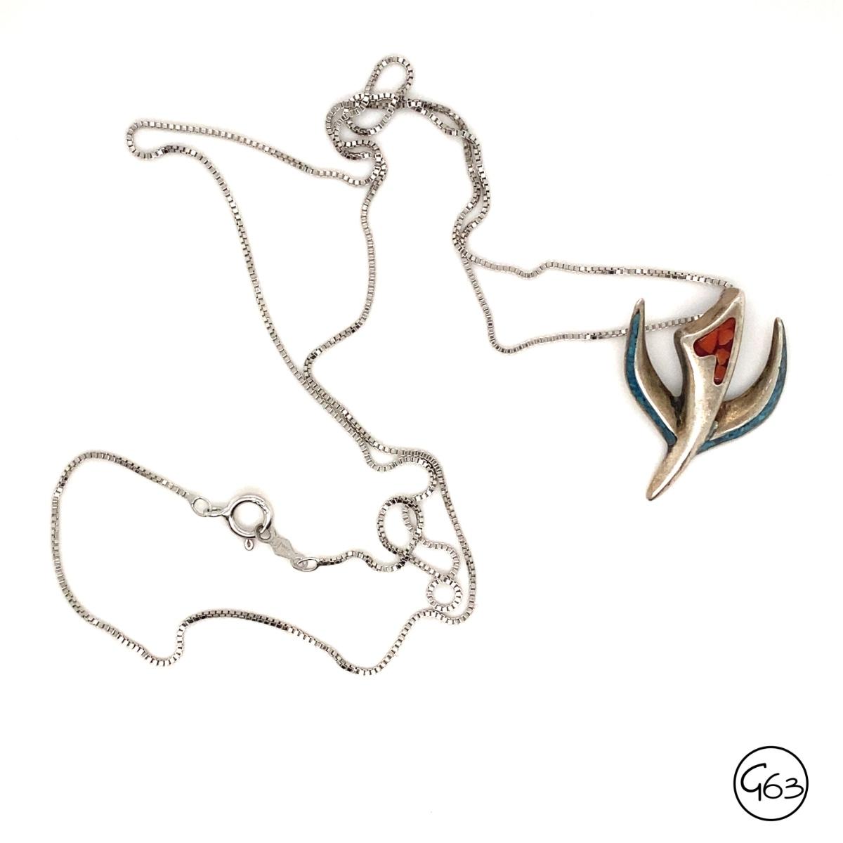Sterling Turquoise & Coral Bird/Eagle Pendant Necklace