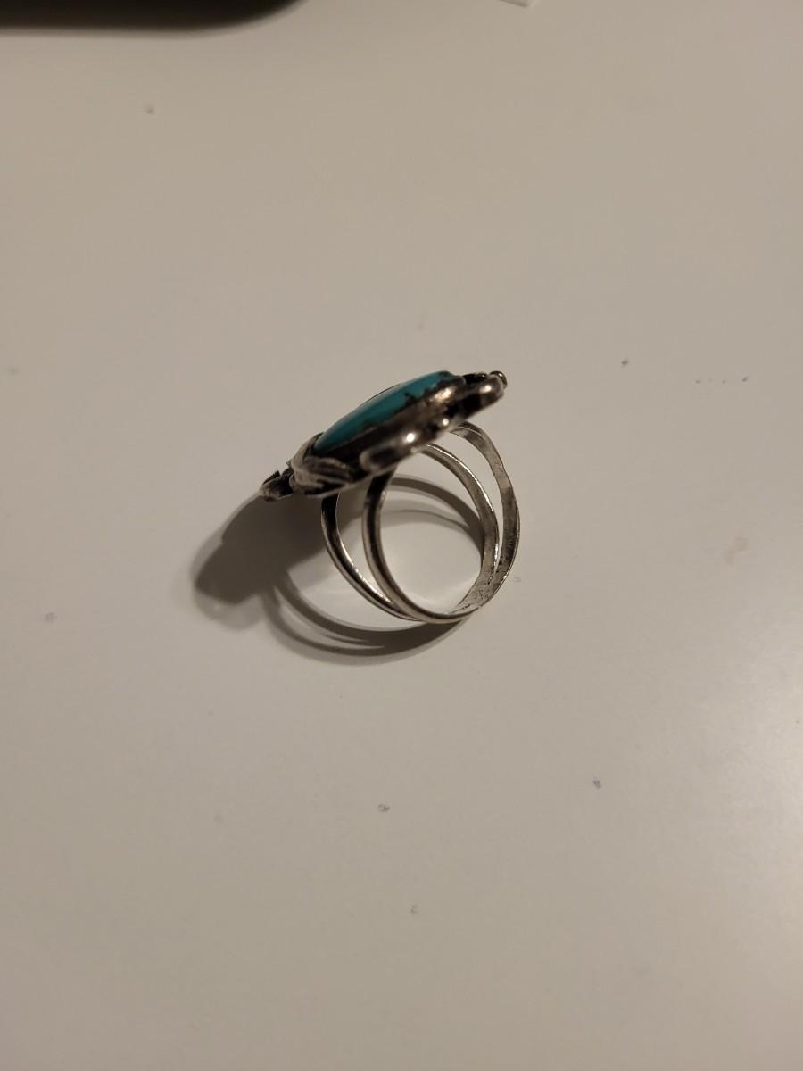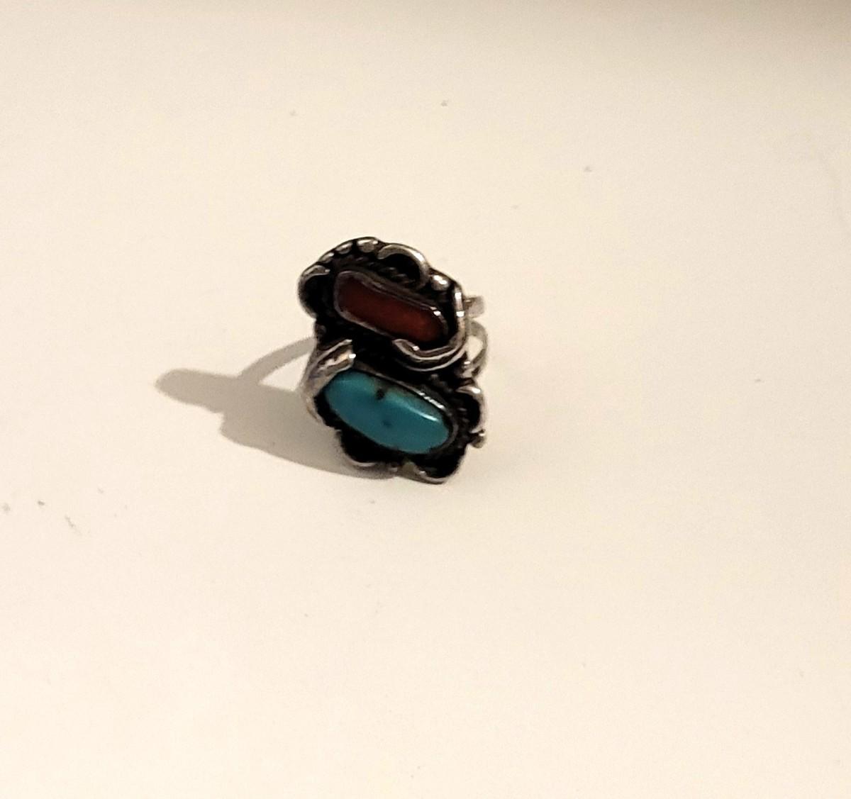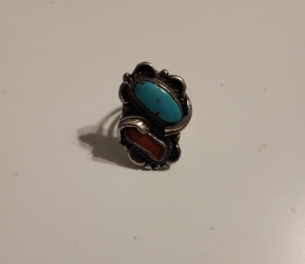 STERLING, TURQUOISE & CORAL RING SIZE 6 1/2