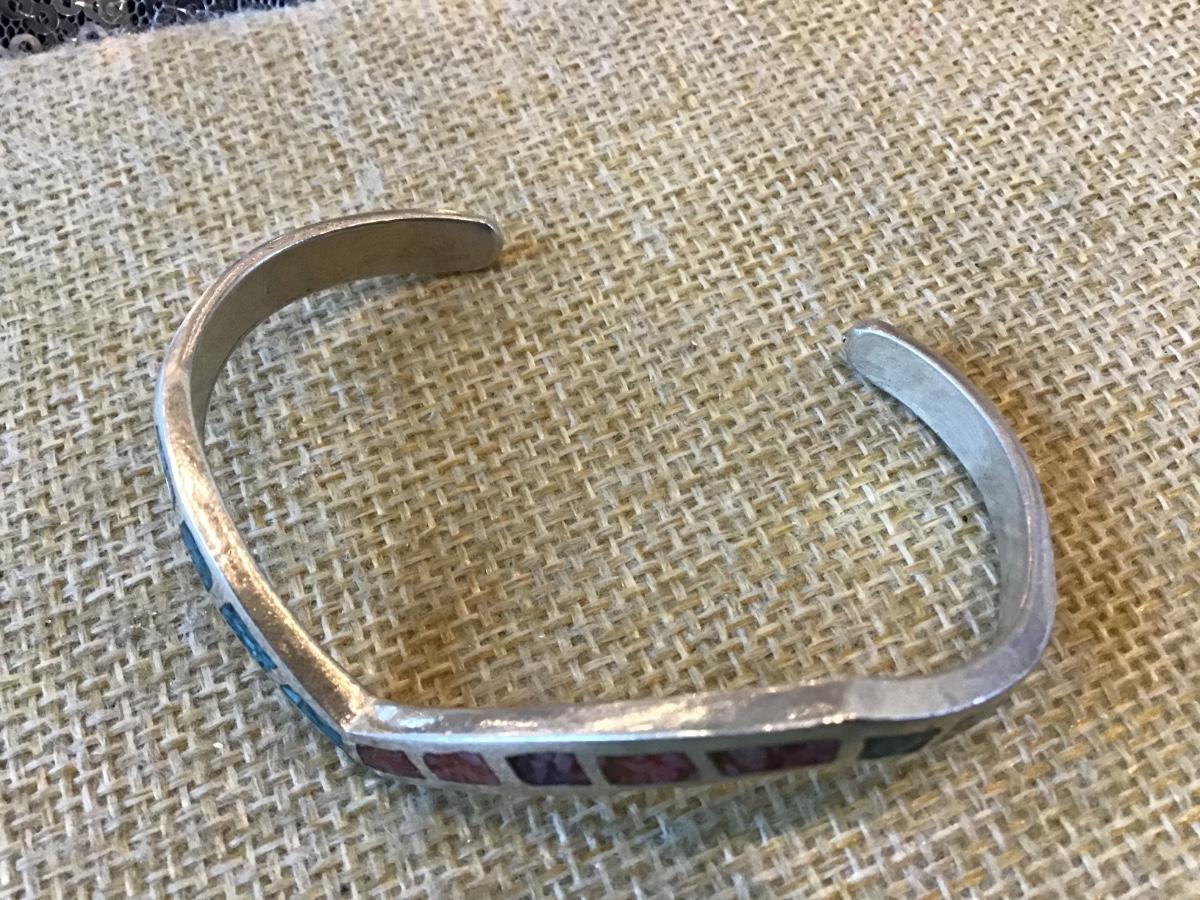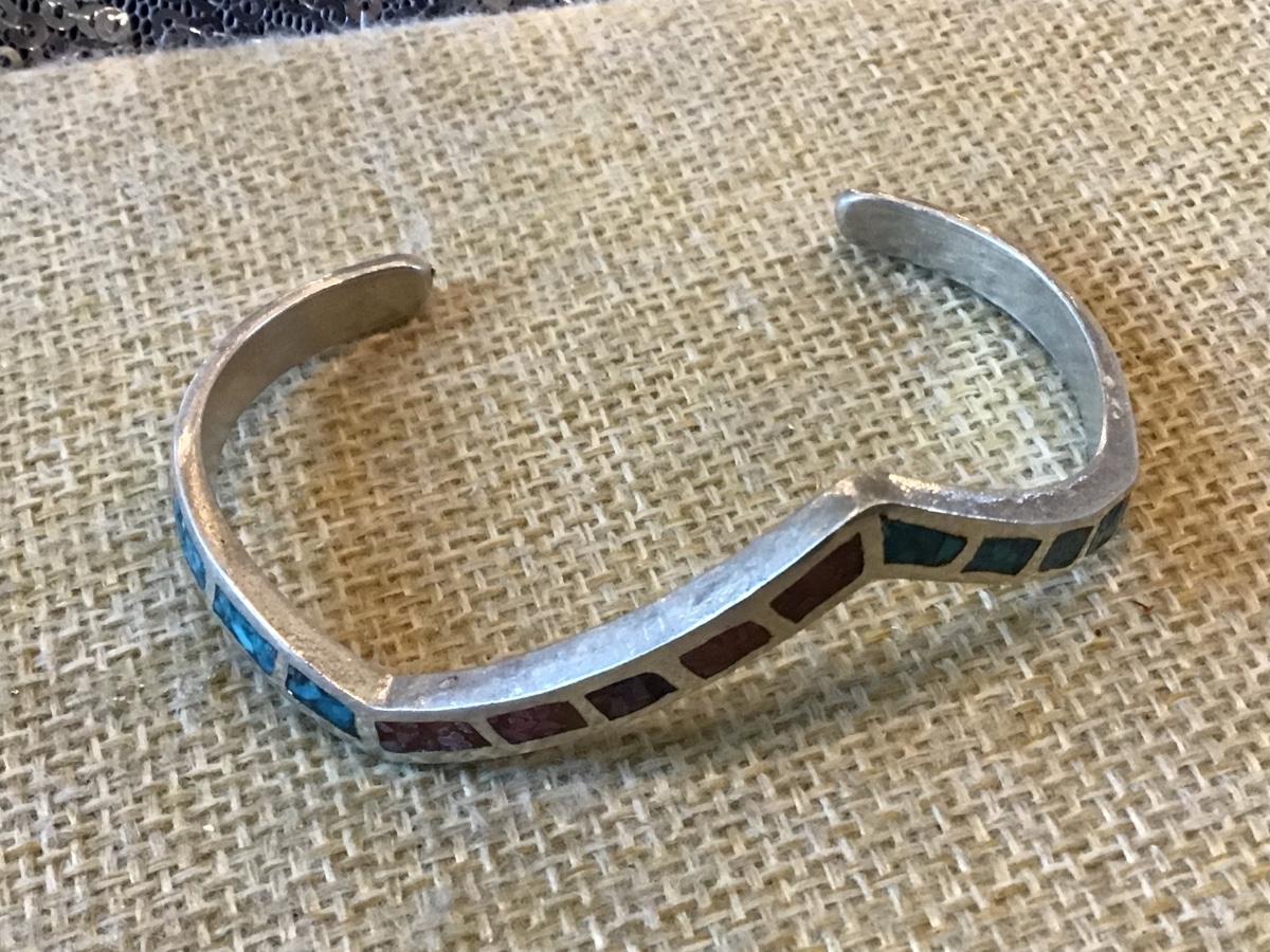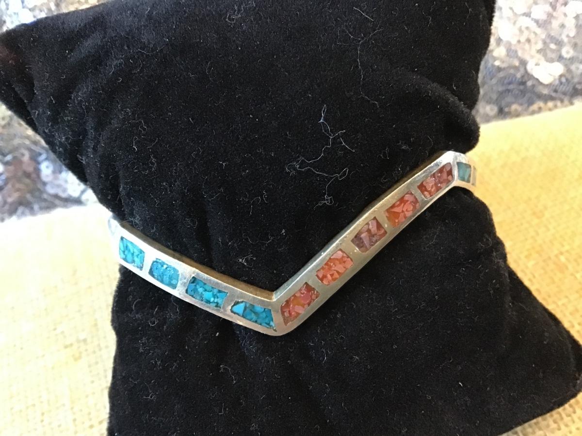 Sterling Turquoise coral vintage Cuff