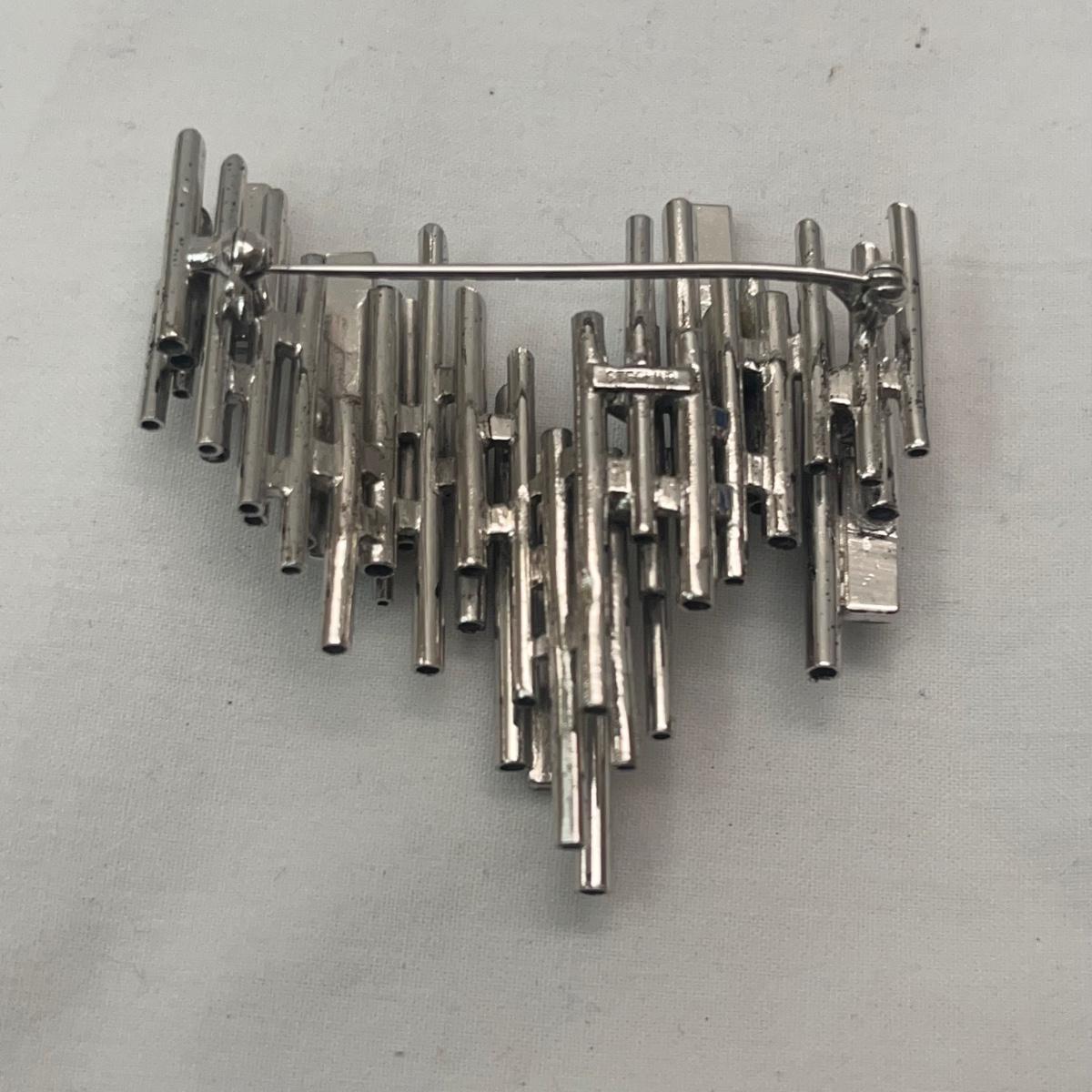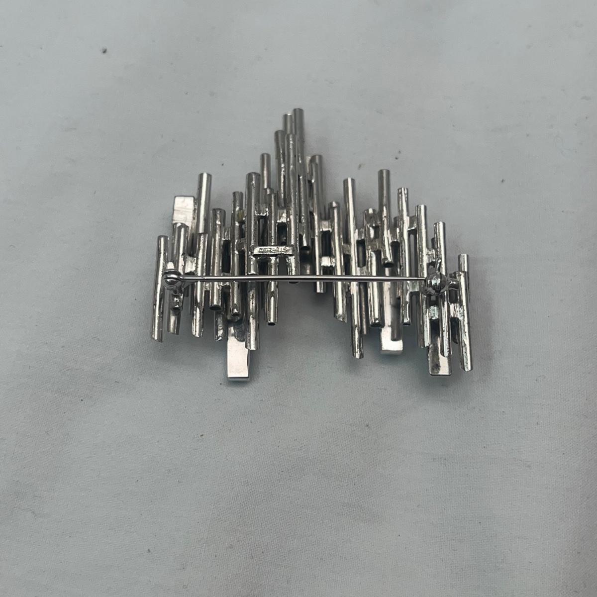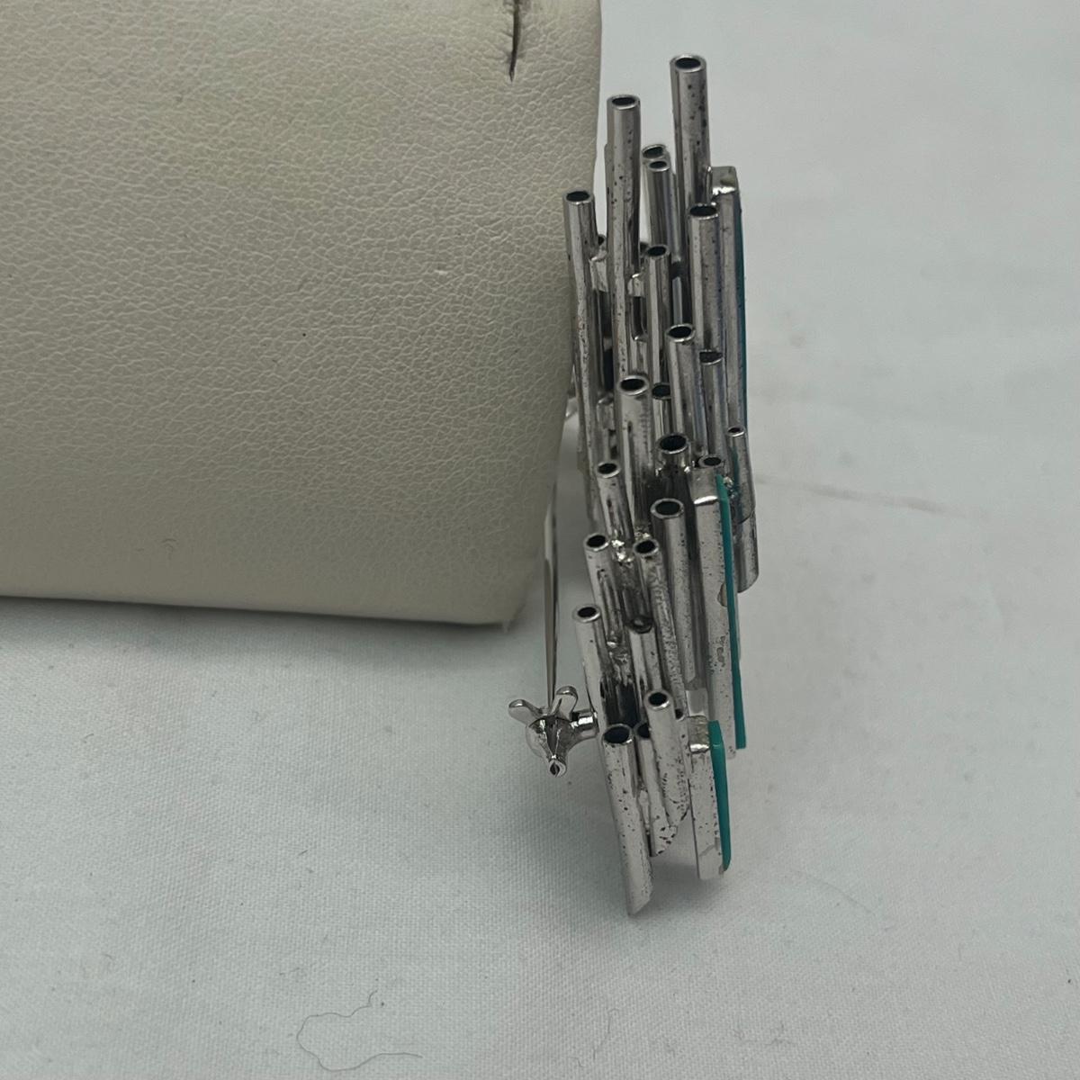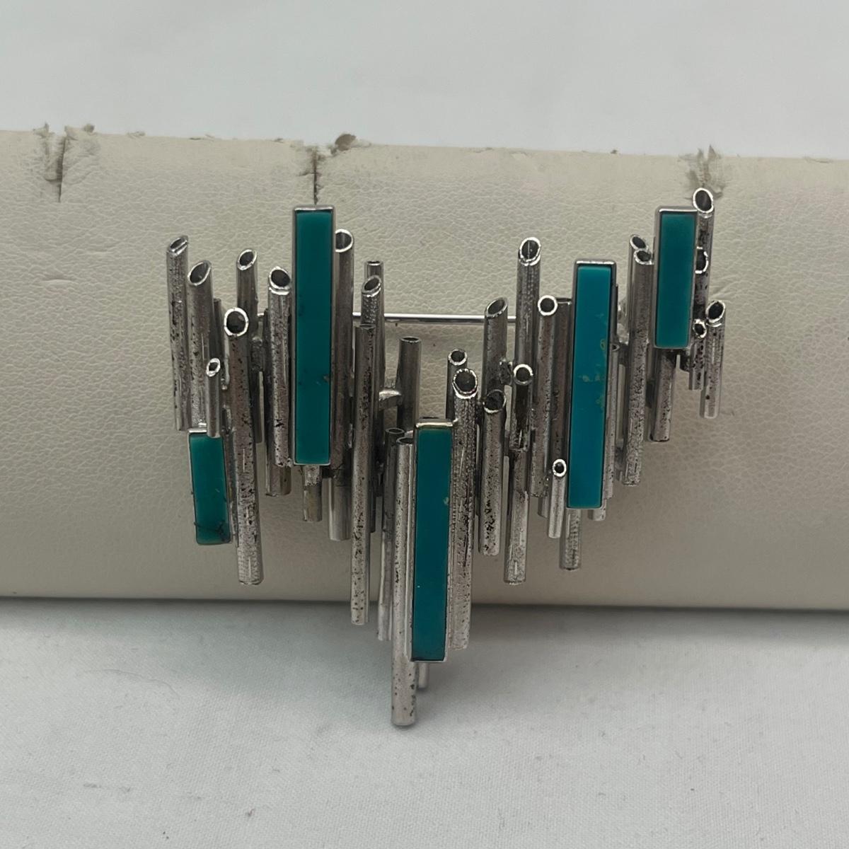 Lot includes a pin marked sterling with what appears to be turquoise stones. Pin measures 2” x .5” x 2”H.