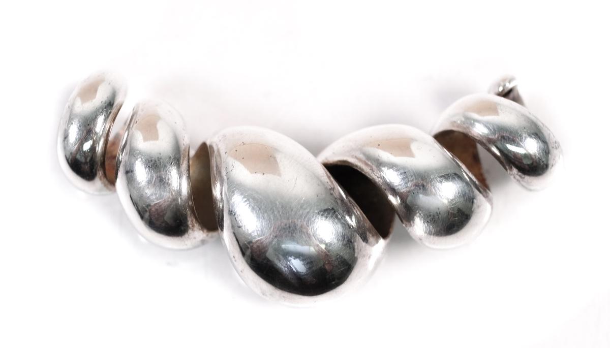 Sterling twisted pendant. Apparently unmarked. Measures approx. 2". Weighs approx. 7.8grams,