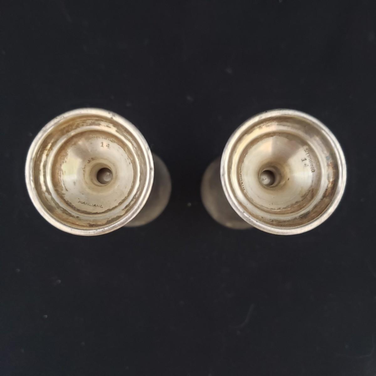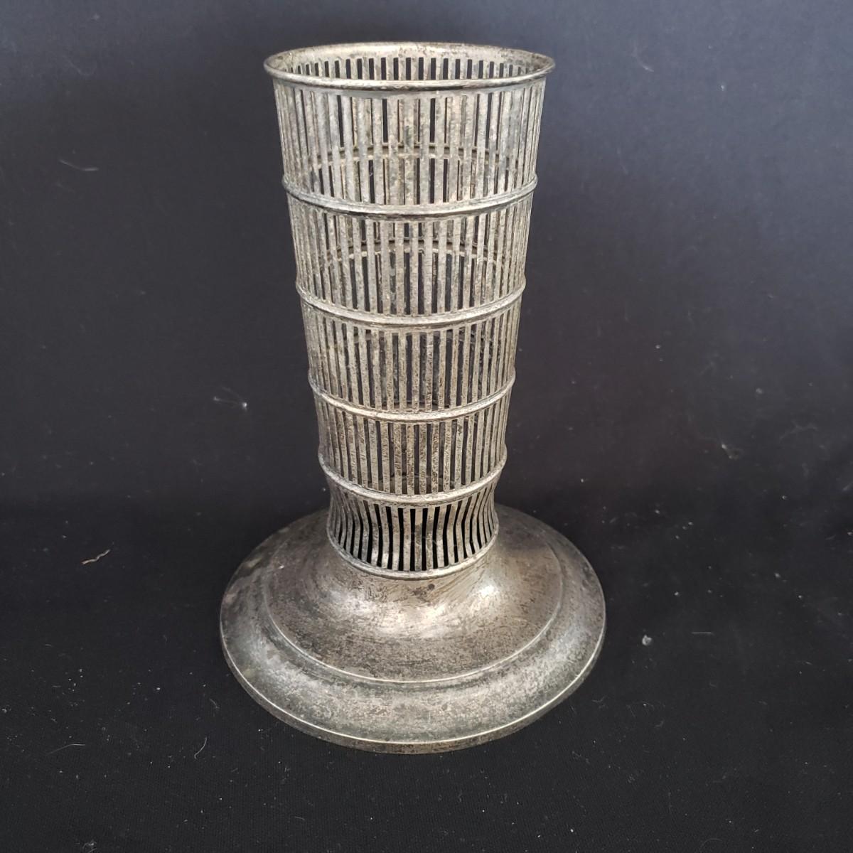 This Sterling lot contains two vase holders or tong holders. The largest one measures 5" x 7"H. The three rabbits have the initials "B.B" on the back. The very small cups measure 1" x 3"H.