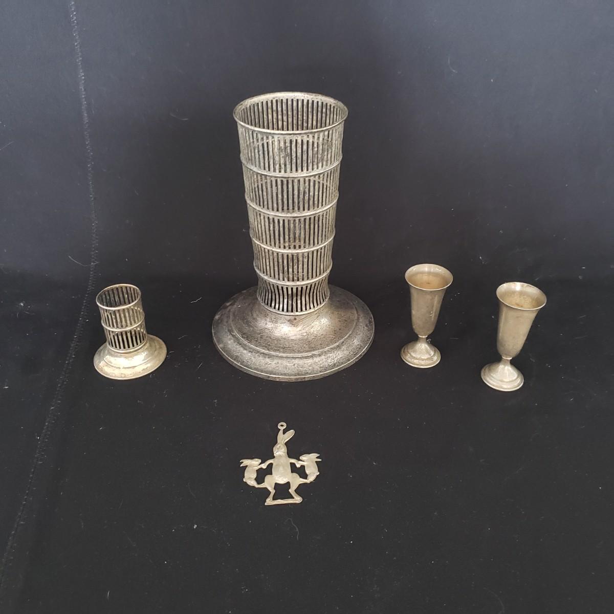 Sterling Vase Bottoms, Rabbit Ornament and Small Cups (LR-KD)