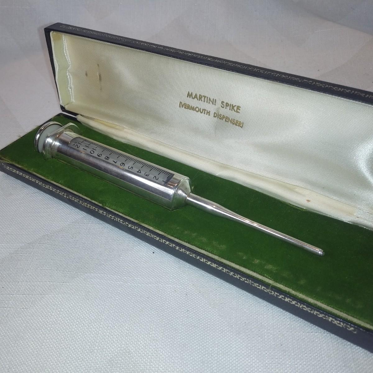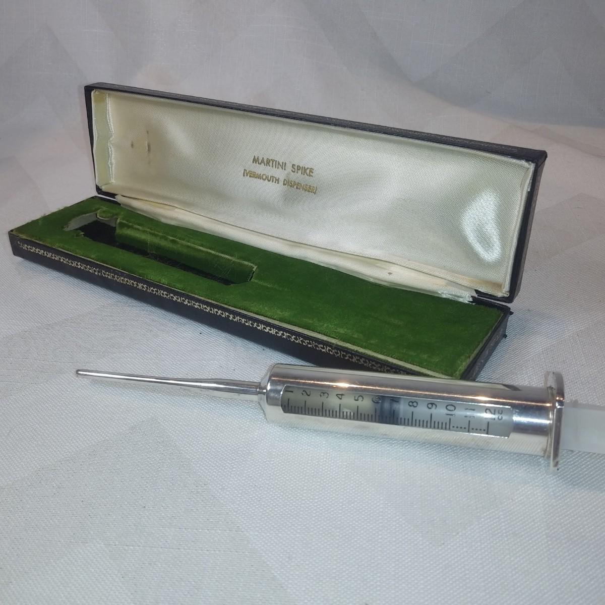This auction lot is for a Sterling Silver Vermouth Dispenser - Martini Spiker. Presented in the original 8-inch long box. It is in very good condition, not sure if it was ever used. The perfect gift for that person that has just about everything else. Quite unique.