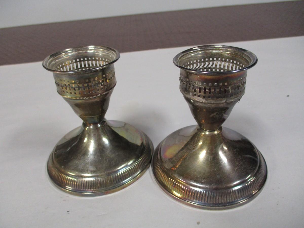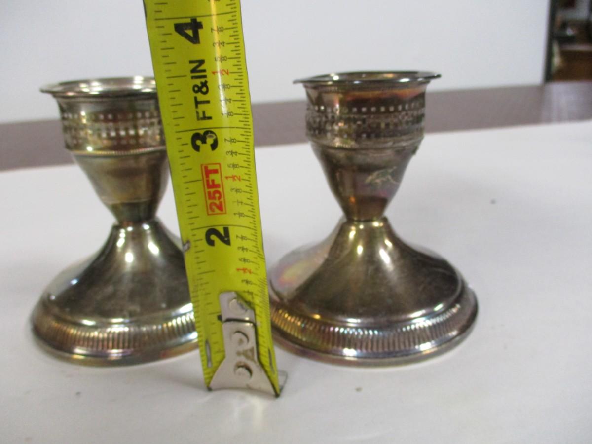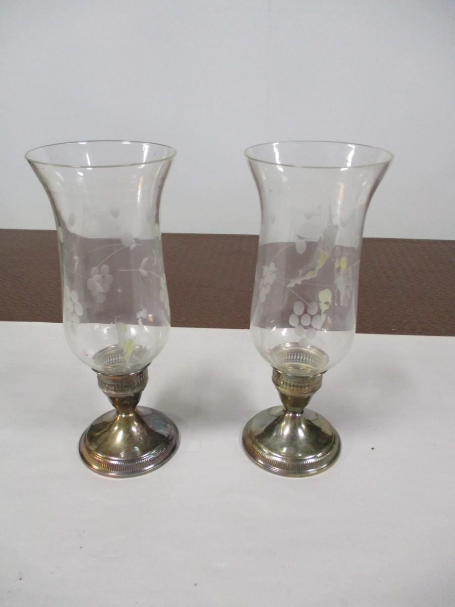 Sterling Weighted Candle Holder With Etched Grape Glass
