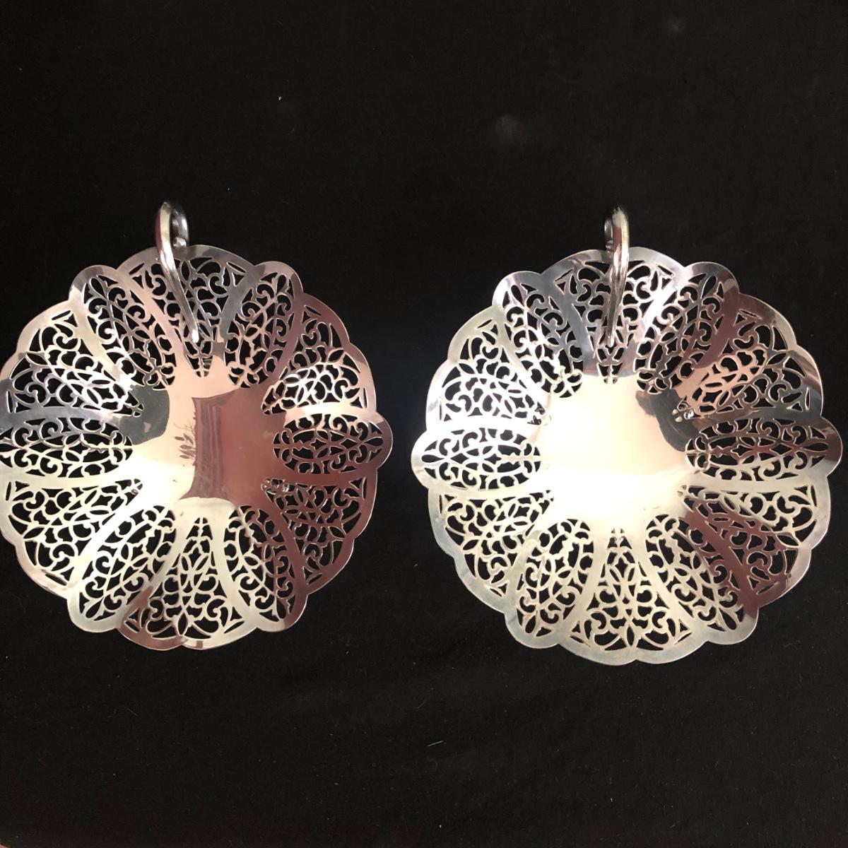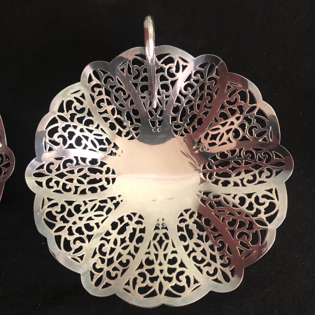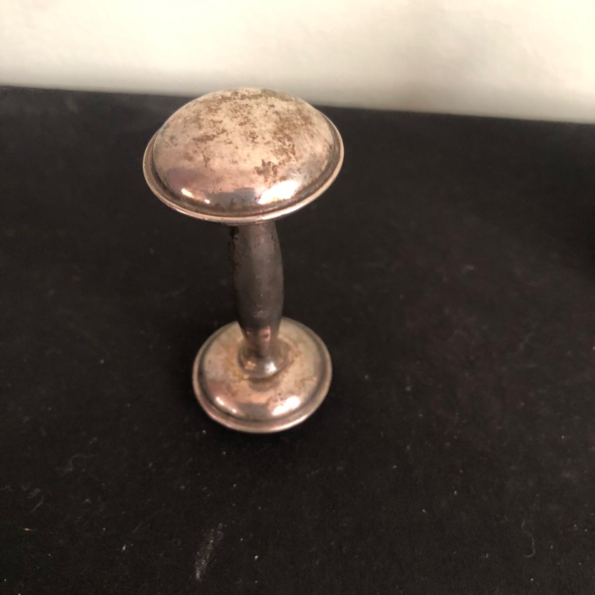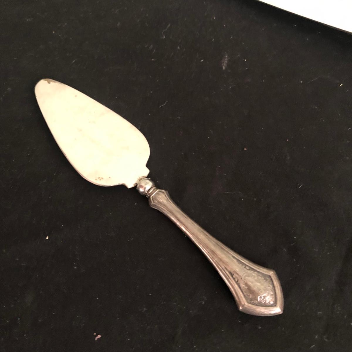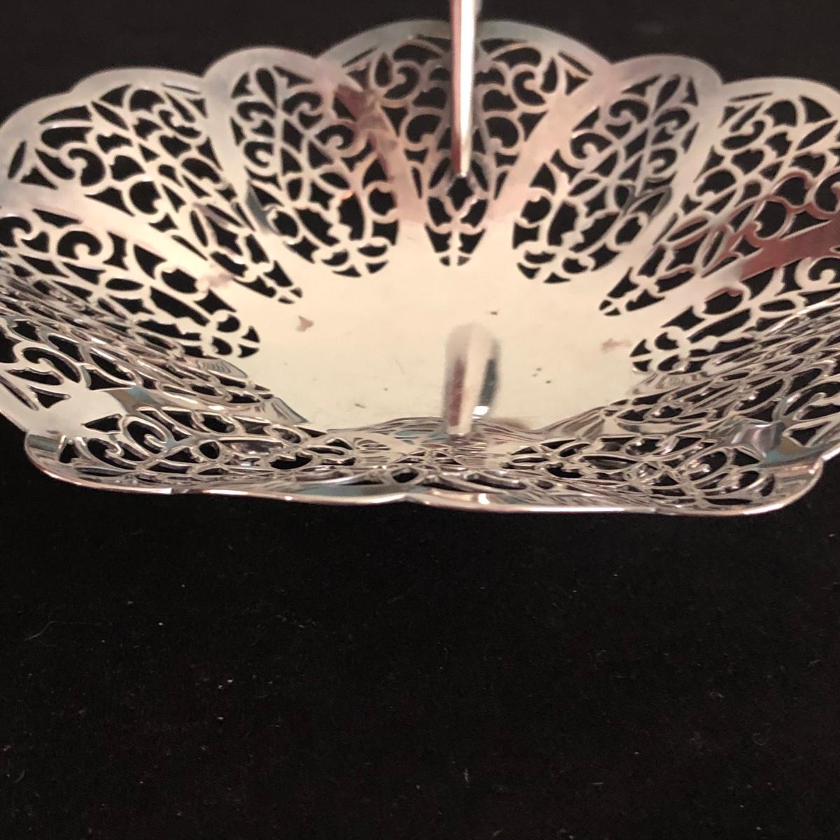 This lot contains 29 pieces. The two Lovelace dishes (with three legs and a handle) measures 6” in diameter. The Gorham fleury dish measures 12” x 12” and has Gorham YC623 on the back. The cup is Newport Sterling 1626 and the rattle is Lunt Sterling 1180. The salt and pepper shakers are TWR Sterling and stand over 4.5” tall. The serving knife and fork are marked “Sterling Handles.” The gravy boat and tray are Aniston SP. The four salt & pepper shakers in a box are by Empire Silver Co. And lastly, the eight candle stick holders are sterling weighted. There are also five sterling spoons. Shipping Available.