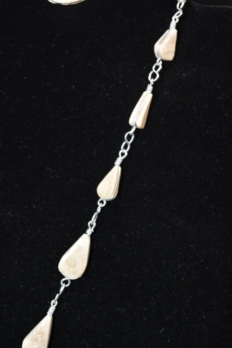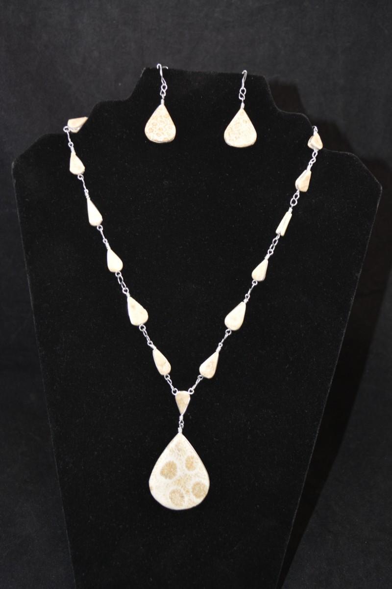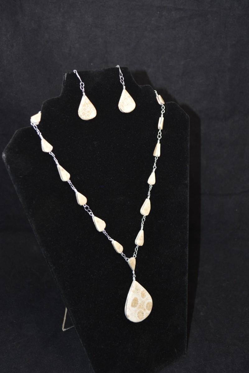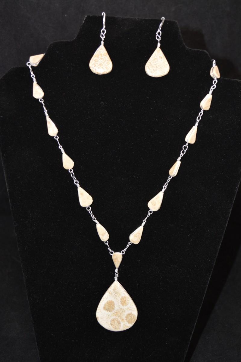 Sterling Wire Chrysanthemum Coral Necklace & Earrings 20” 31.8g
