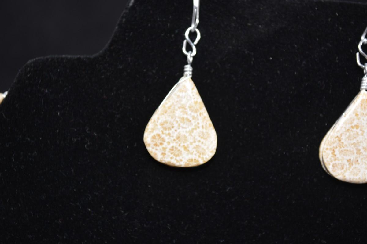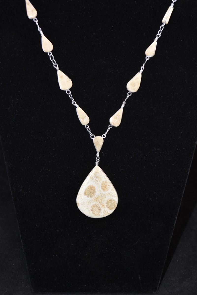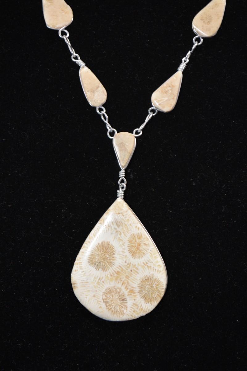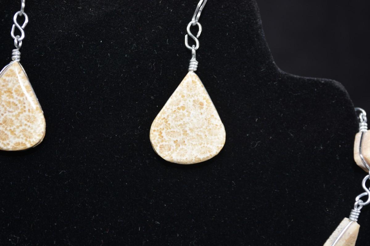 Sterling Wire Chrysanthemum Coral Necklace & Earrings 20” 31.8g