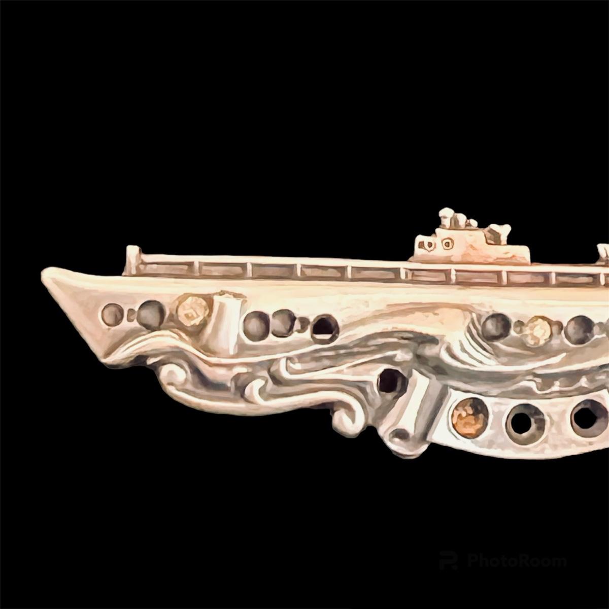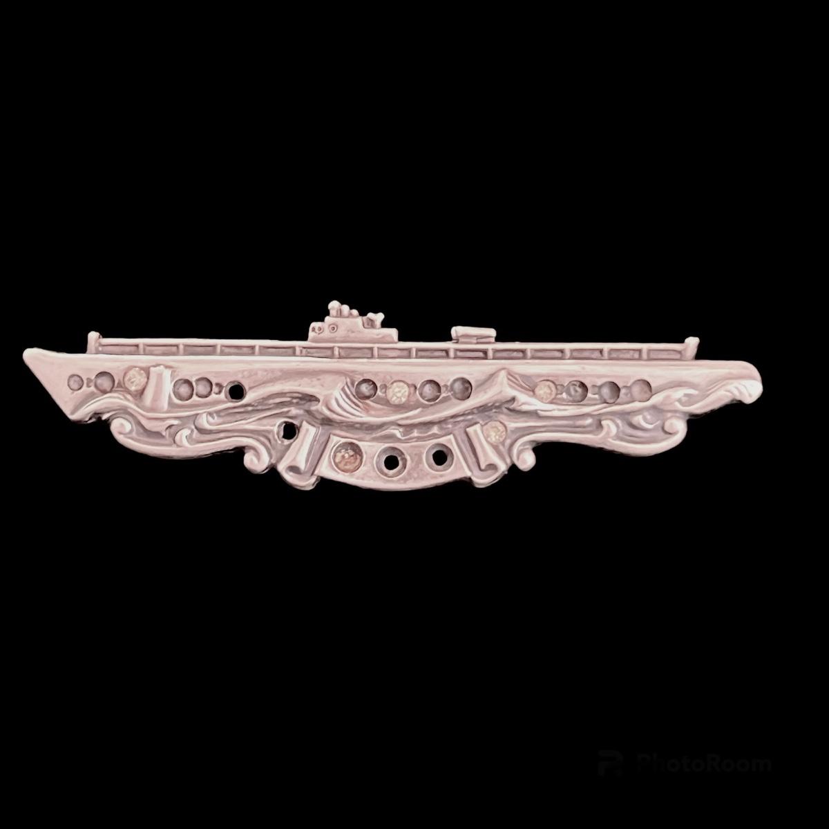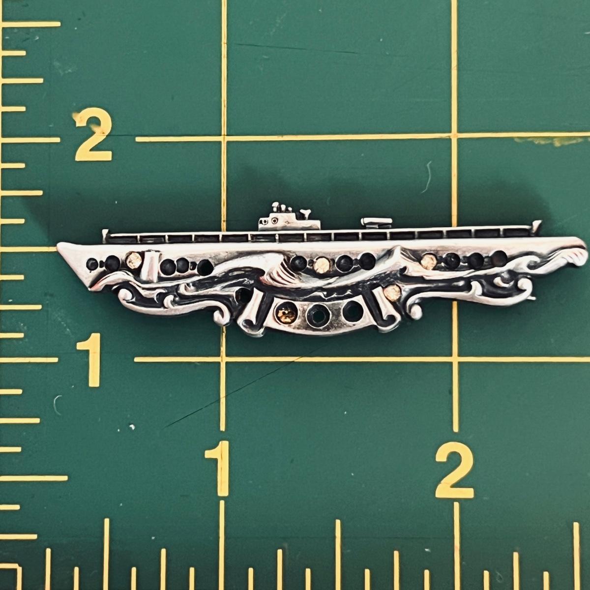 This is a submariner patrol pin believed to be from WWII stamped Sterling by designer Hilborn & Hamburge (their hallmark is the HH in a star at top). Each small hole towards the bottom is where a star would sit to show how many deployments were completed. See up close pics for condition and details.