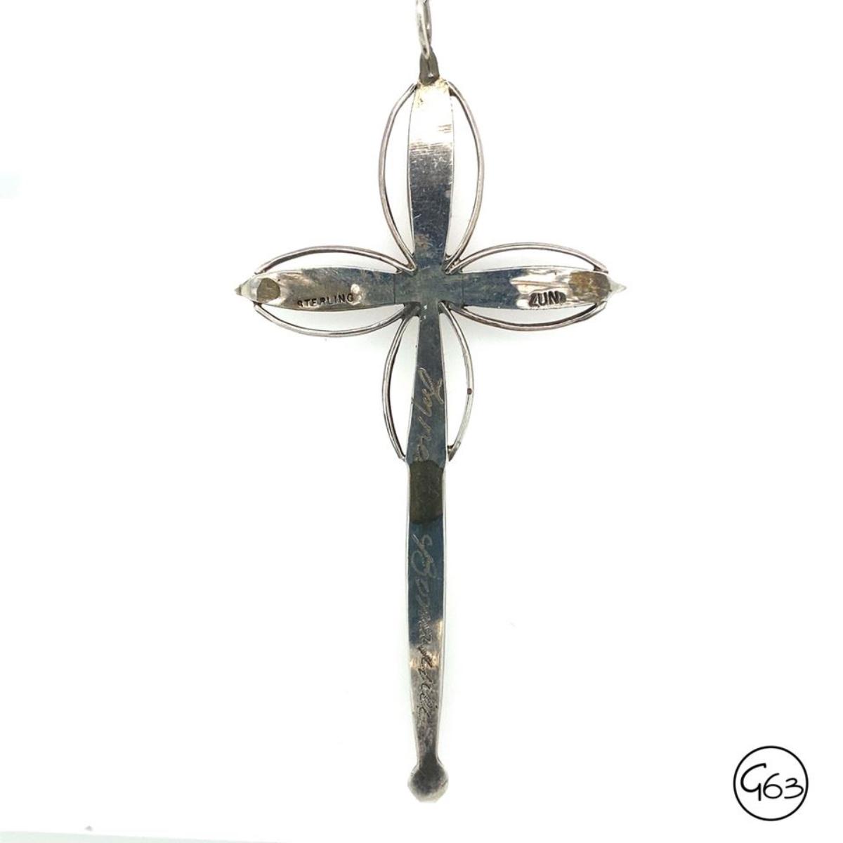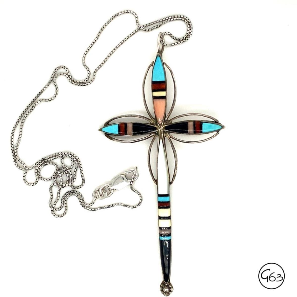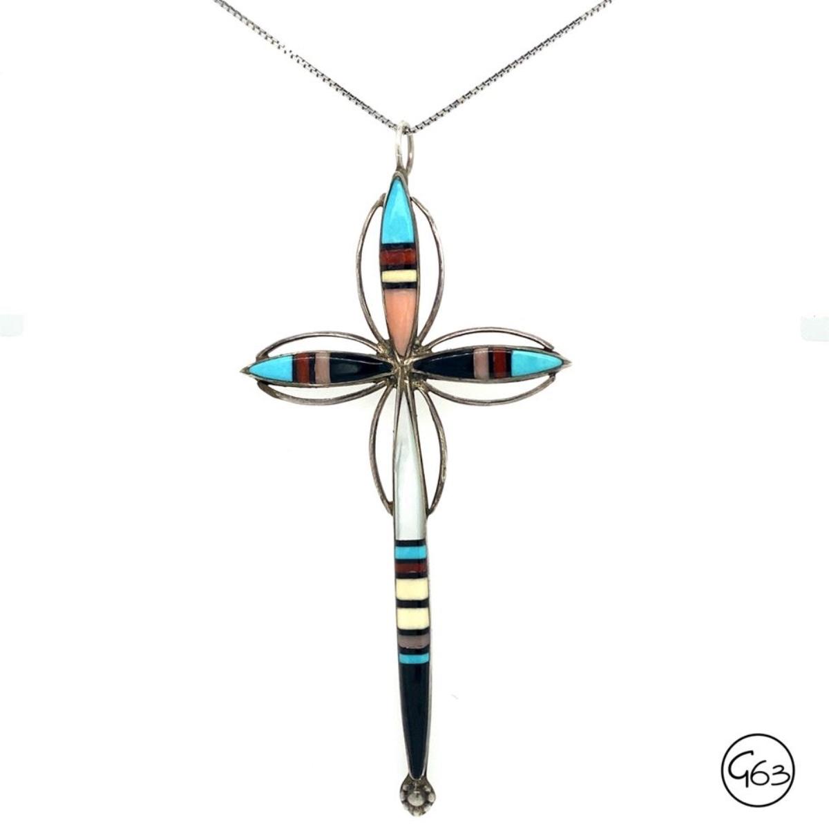 Sterling Zuni Lynette Laiwakete Inlay Cross Pendant Necklace