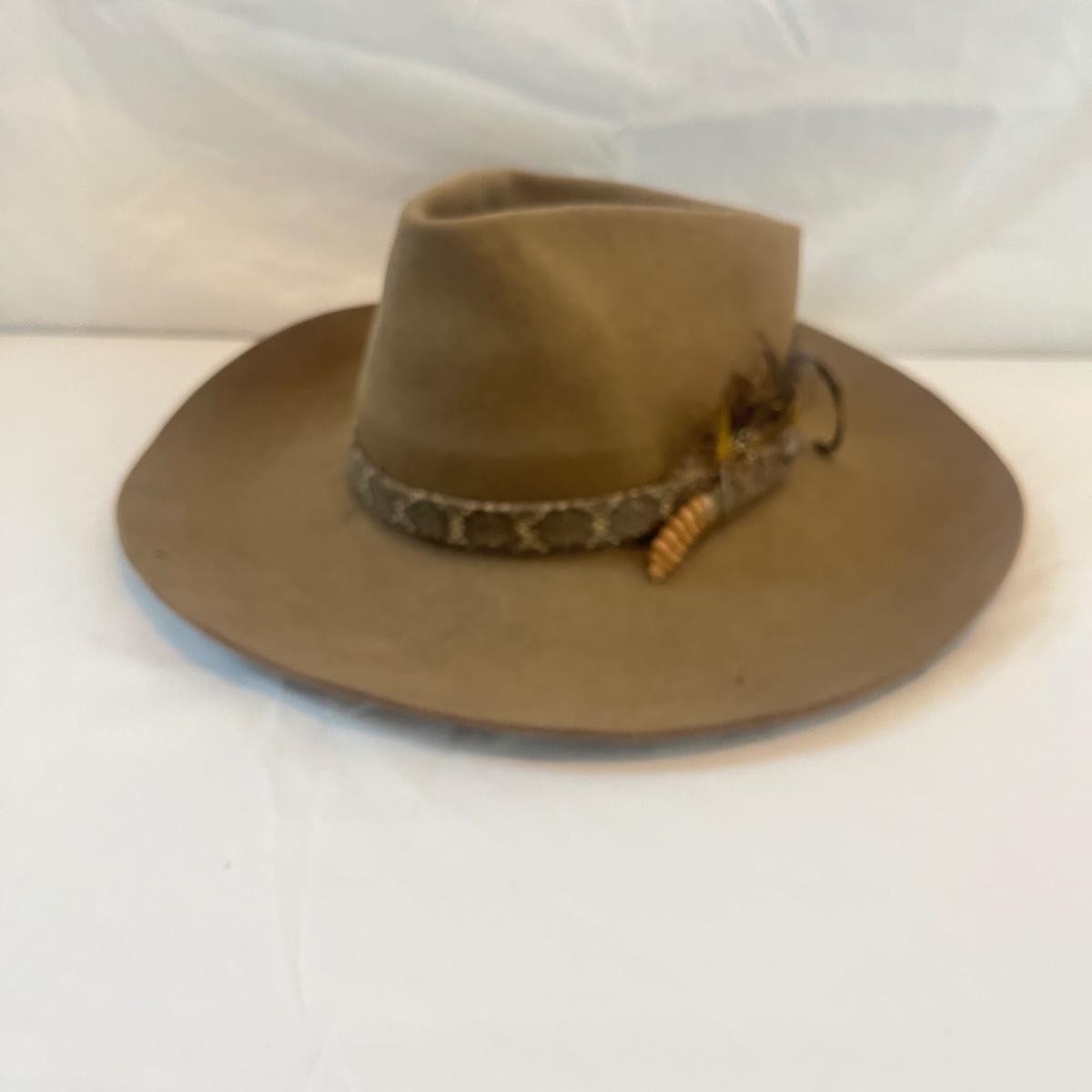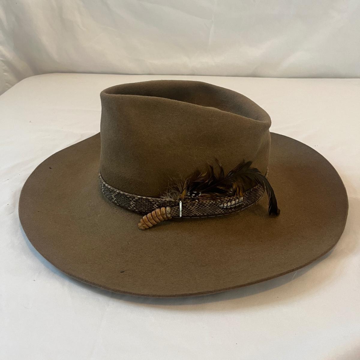 Stetson Felt Hat w/ Rattlesnake Hat Band & Leather Gloves (L-MG)